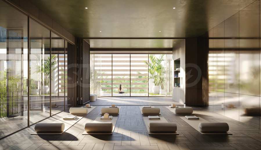 Für diejenigen, die lieber von zu Hause aus arbeiten, bietet der Komplex gemeinsam genutzte Büroräume, einen Raum zum Aufzeichnen von Podcasts oder Videoinhalten sowie einen Multifunktionsraum für verschiedene Veranstaltungen. Wenn Sie bei entspannenden Behandlungen entspannen möchten, steht Ihnen ein voll ausgestattetes Spa-Center zur Verfügung, einschließlich halboffener Räume im Garten, die sich für Massagen eignen. Für Sportbegeisterte gibt es ein Fitnessstudio, einen Squashcourt sowie Cardio- und Yogaräume. ​