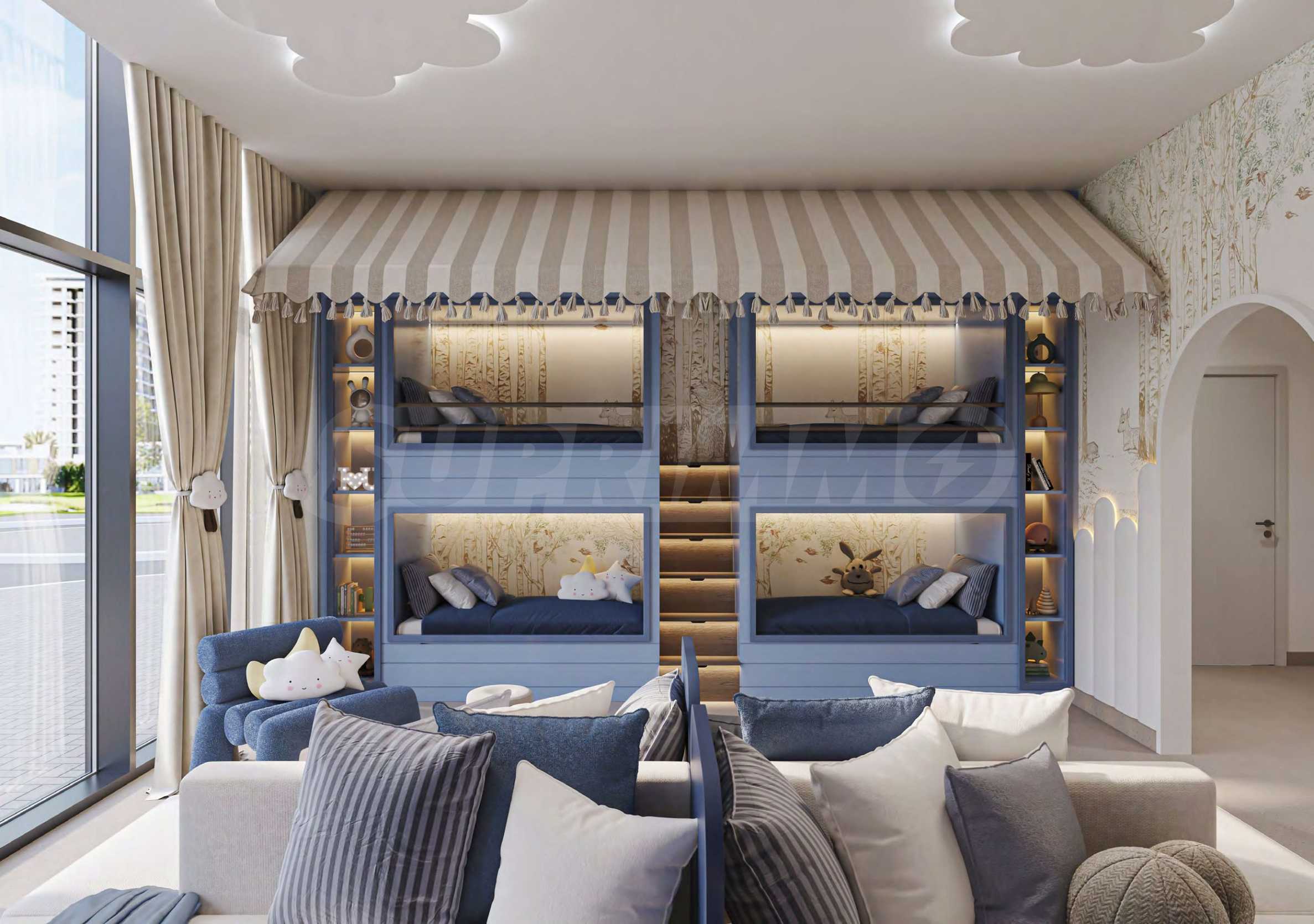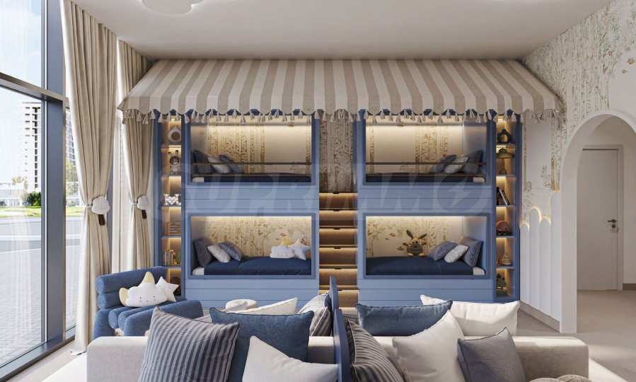 Auch die jüngsten Bewohner kommen nicht zu kurz – für sie wurden spezielle Bereiche zum Spielen und Entspannen eingerichtet, darunter ein Kinderspielzimmer und ein gemütliches Zimmer, das sich sogar für die Organisation von Pyjamapartys eignet – eine sichere und aufregende Umgebung, die freies Spiel und Fantasie fördert.