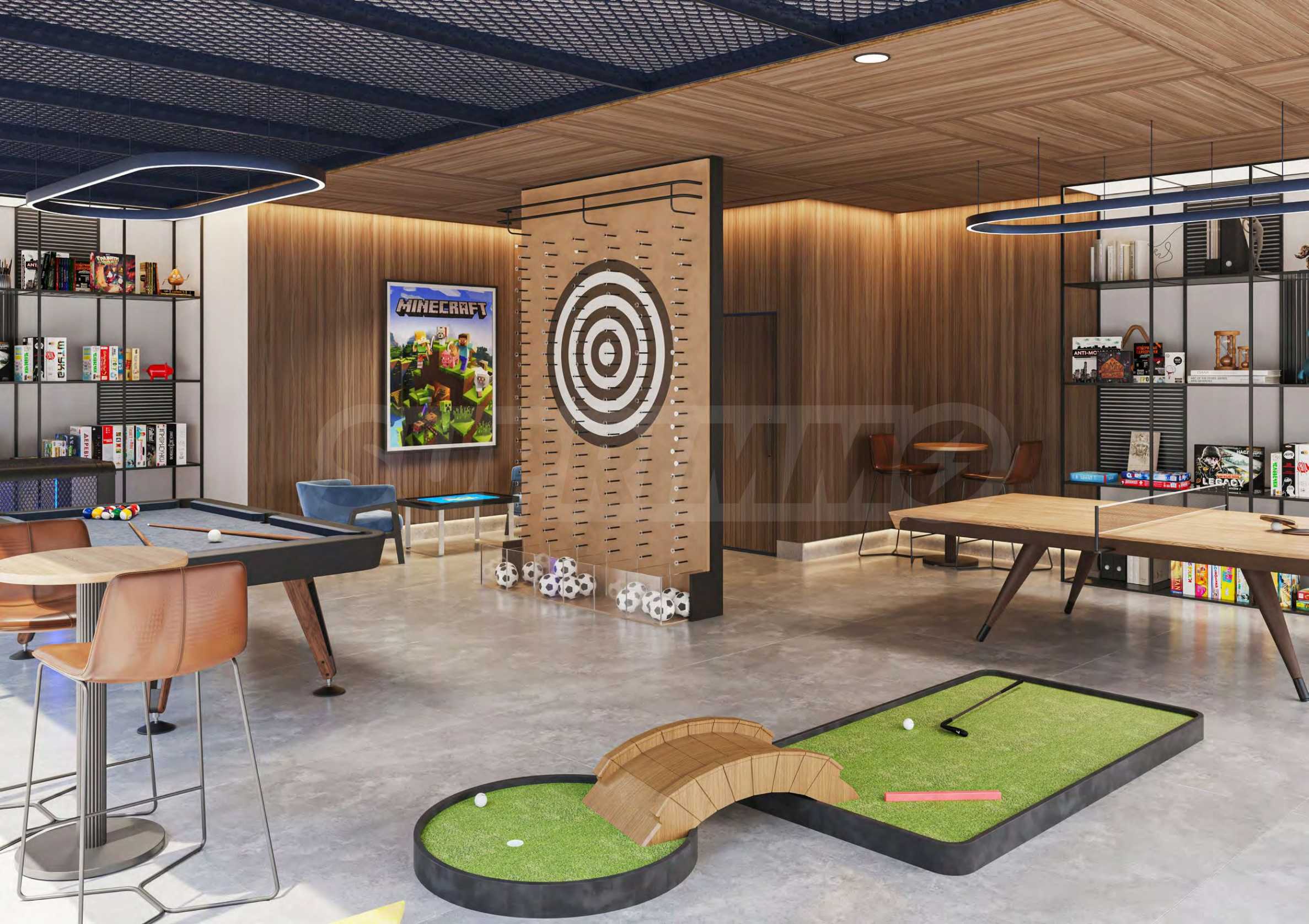 Der Höhepunkt des Erlebnisses ist ein völlig separates Gebäude, das dem exklusiven Privatclub des Komplexes gewidmet ist. Hier finden Sie einen stilvollen Loungebereich, einen Saal für anspruchsvolle Abendessen und Veranstaltungen, gemeinsame Arbeitsbereiche, ein hochmodernes Fitnessstudio, ein Yogastudio, eine Sauna, ein Spielzimmer und ein gemütliches Privatkino. Alles ist sorgfältig gestaltet, um nicht nur Komfort zu bieten, sondern auch das Gefühl der Zugehörigkeit zu einer Gemeinschaft, die die Ästhetik, den Komfort und die Gemütlichkeit eines durchdachten modernen Alltags schätzt.
