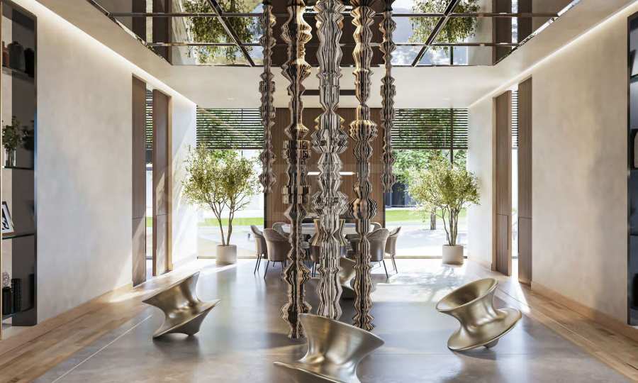 Das Konzept dieses außergewöhnlichen Komplexes ist inspiriert von dem Wunsch, ein ganzheitliches Wohnumfeld zu schaffen – einen Ort, an dem Alltag, Freizeit und Arbeit harmonisch ineinander übergehen, ohne dass man die Bequemlichkeit des eigenen Zuhauses verlassen muss.