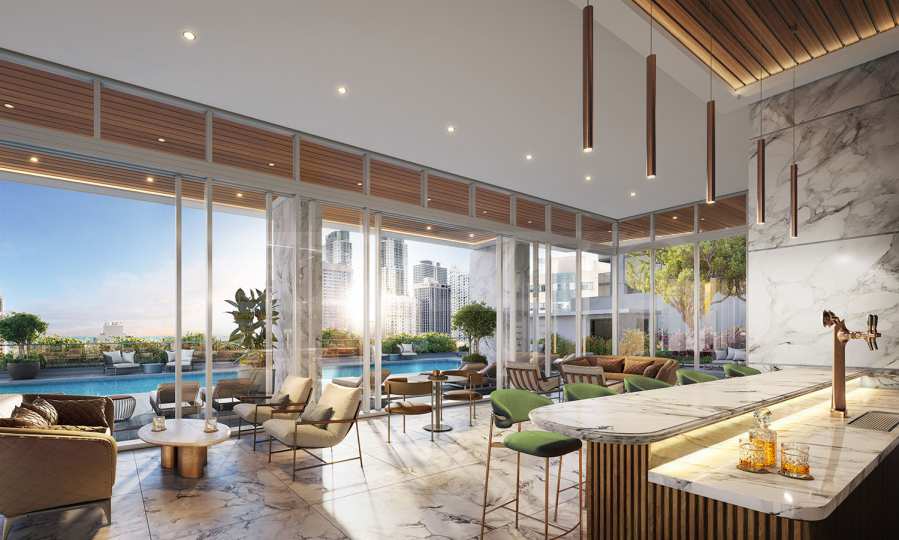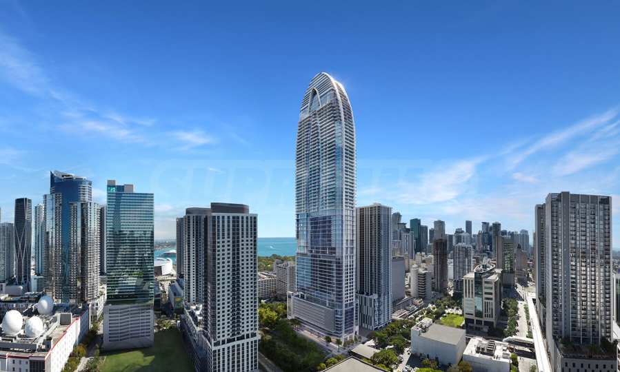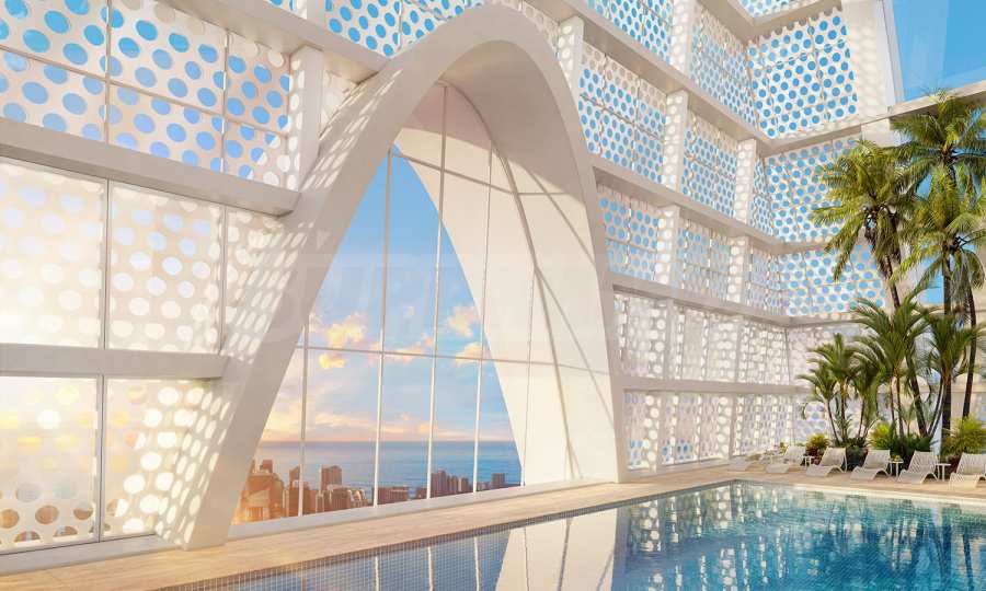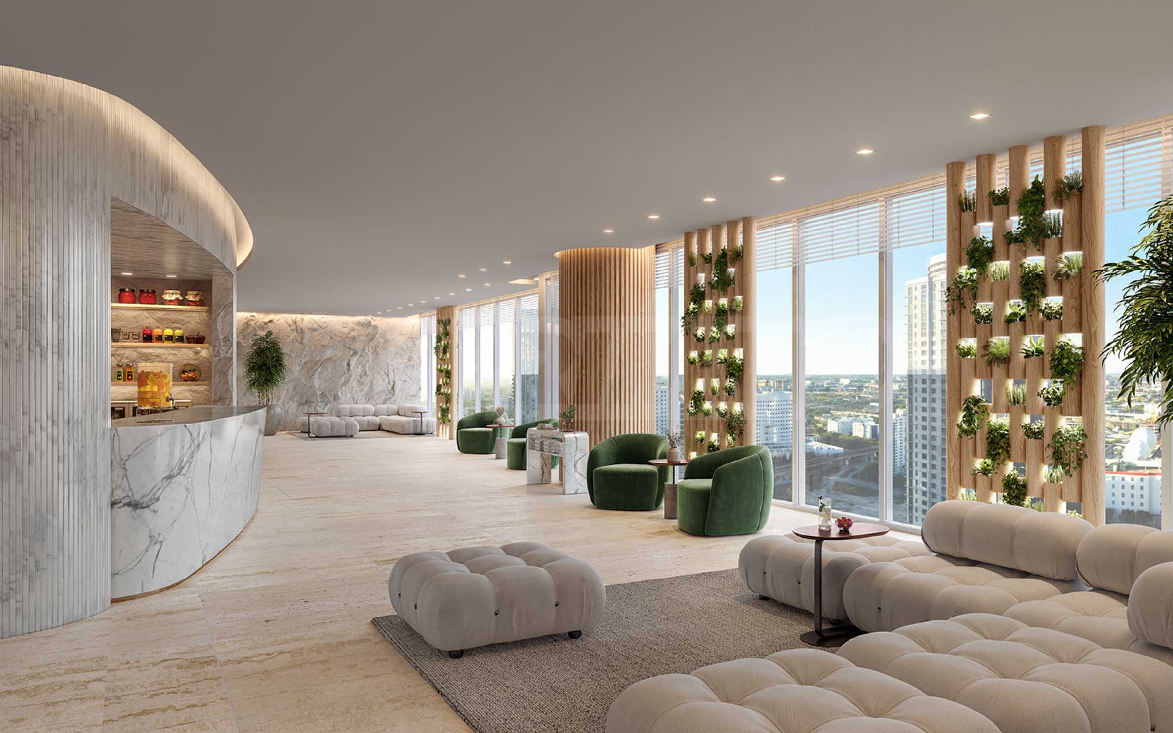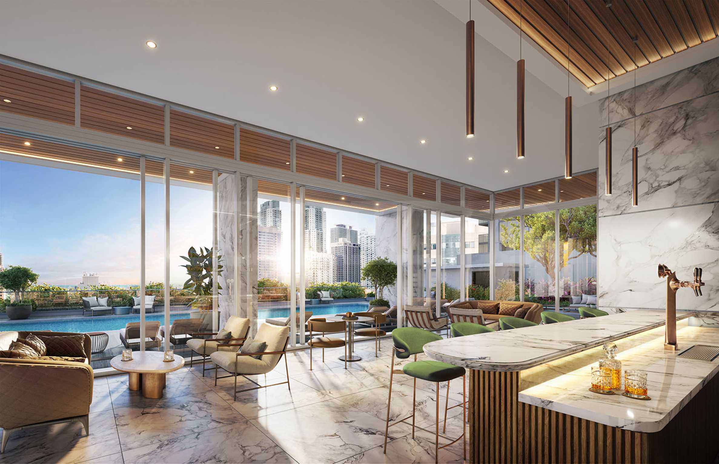 - Ein einzigartiger privater Pool am höchsten Punkt des Gebäudes – der 70. Etage, von wo aus sich ein 360-Grad-Blick auf Miami bietet;