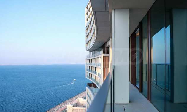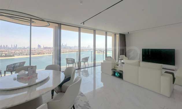Das Apartment bietet einen atemberaubenden Blick auf das Meer und die Palm Jumeirah und bildet so eine beeindruckende Kulisse für Ihren Alltag. Der großzügige Grundriss vermittelt ein Gefühl von Offenheit, das durch raumhohe Fenster, die den Raum mit viel natürlichem Licht durchfluten, noch verstärkt wird.