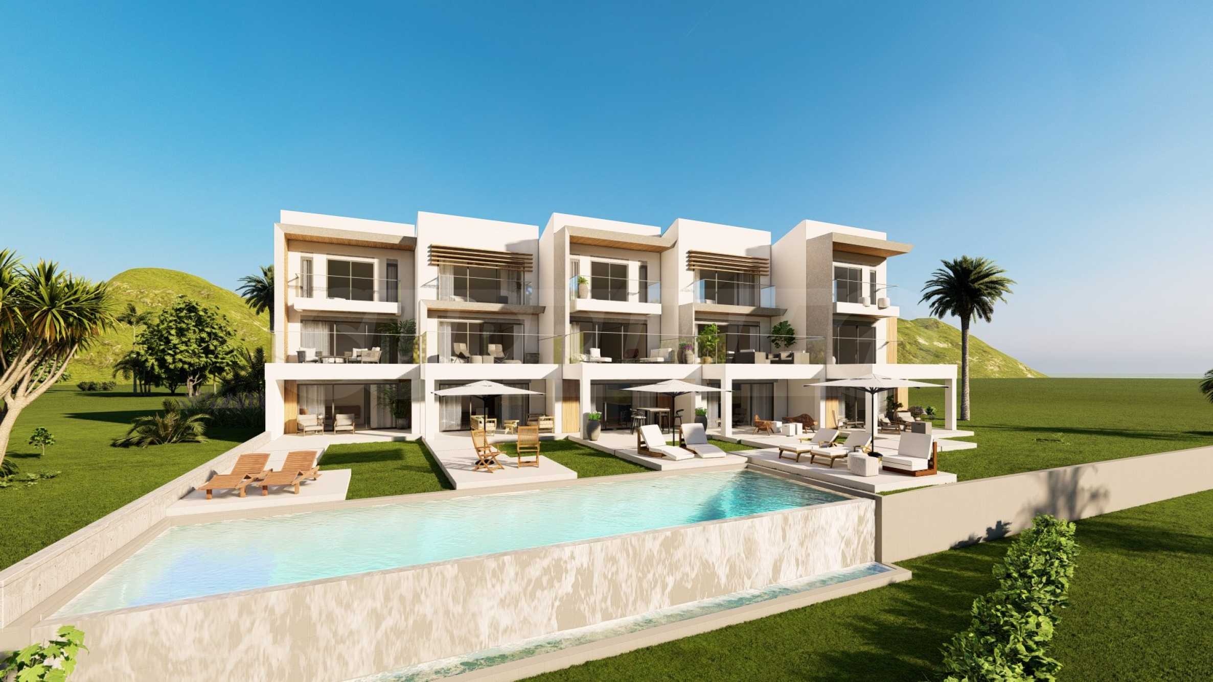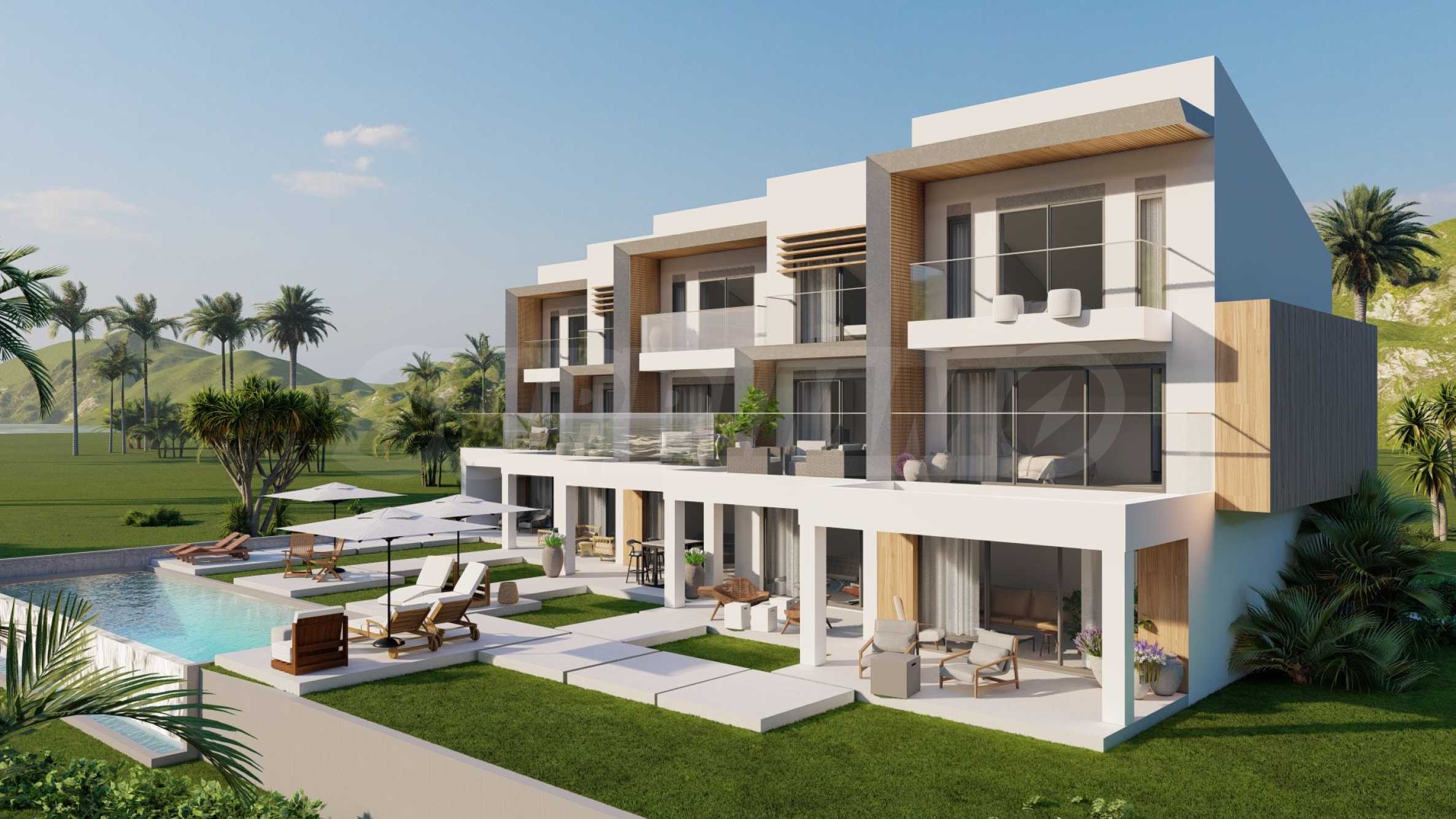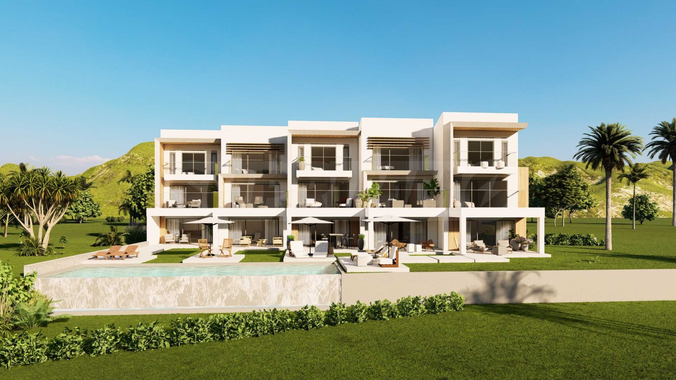 Auf der ersten Ebene befindet sich ein geräumiges Wohnzimmer mit Küche und Essbereich, das auf eine sonnige Veranda führt – ideal für den Morgenkaffee oder ruhige Abendmomente. Hier befinden sich auch eines der Schlafzimmer sowie ein Badezimmer. Auf der zweiten und dritten Ebene finden Sie weitere Schlafzimmer, jeweils mit eigenem Bad und einer Terrasse mit Panoramablick auf das Meer.