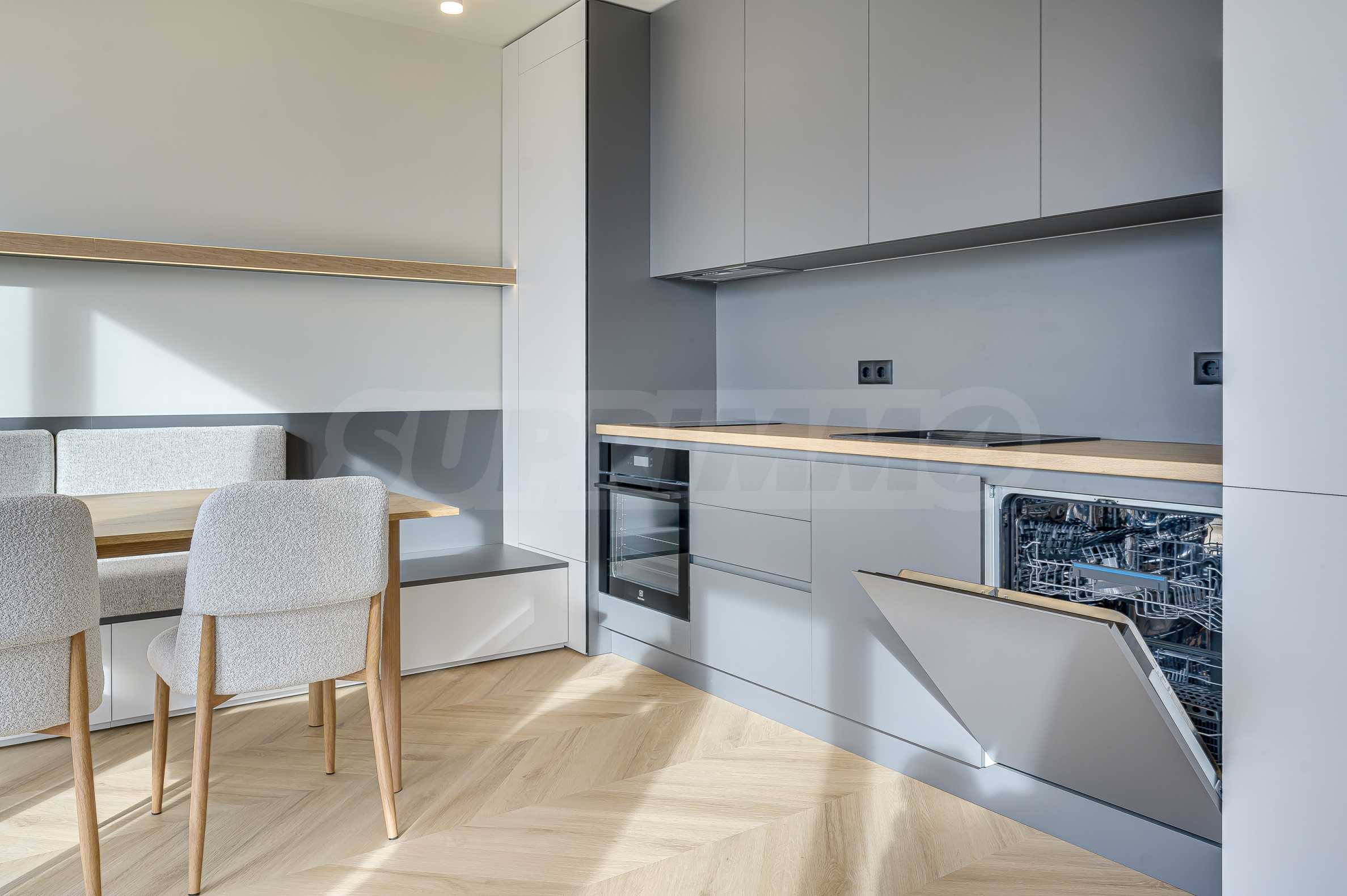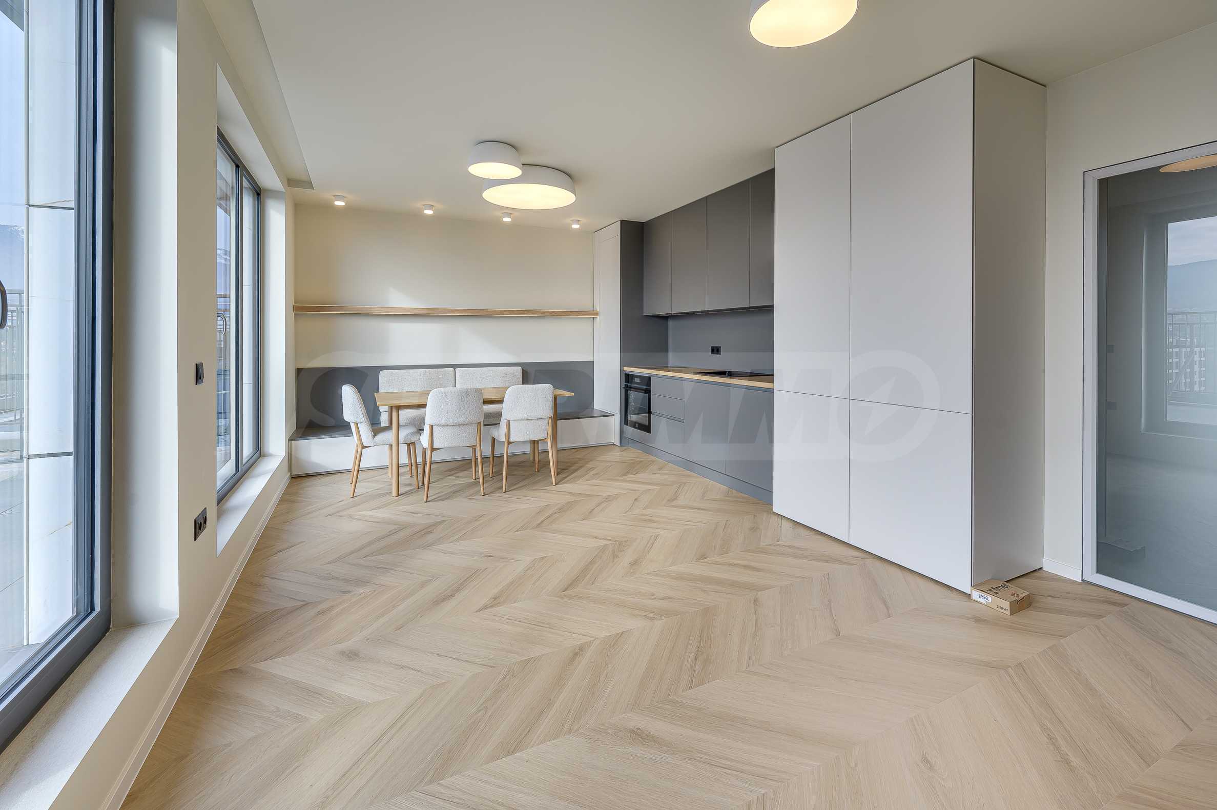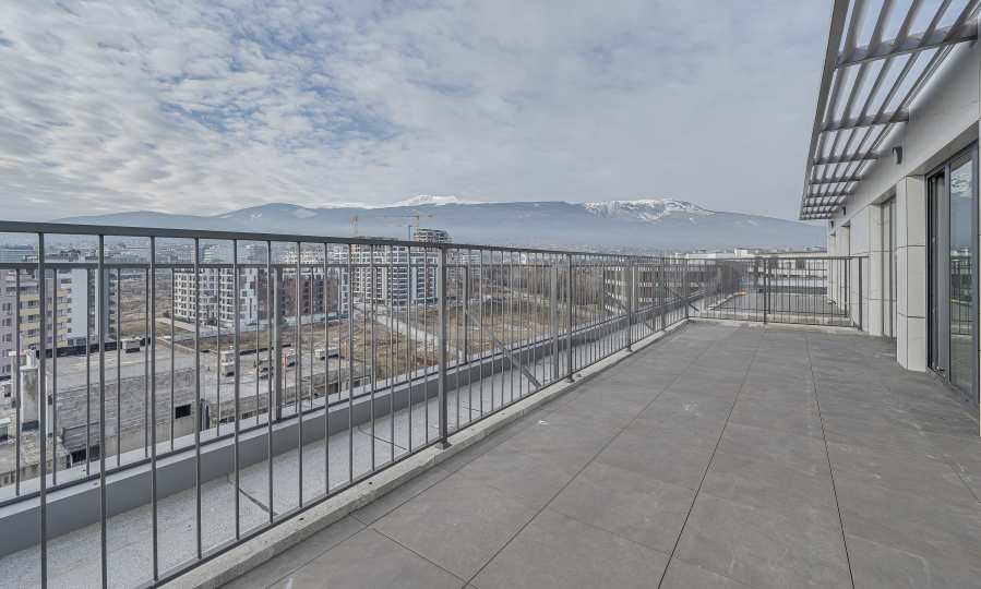 Die Wohnung befindet sich im 10. Stock und bietet einen beeindruckenden Panoramablick auf das Witoscha-Gebirge und die Umgebung – fernab vom Verkehrslärm und mit viel Tageslicht. Die großzügige Panoramaterrasse verfügt über eine elegante Pergola und bietet die Möglichkeit, einen Essbereich im Freien und eine Begrünung zu gestalten – eine natürliche Erweiterung des Wohnraums und ein Gefühl von Leben im Freien.