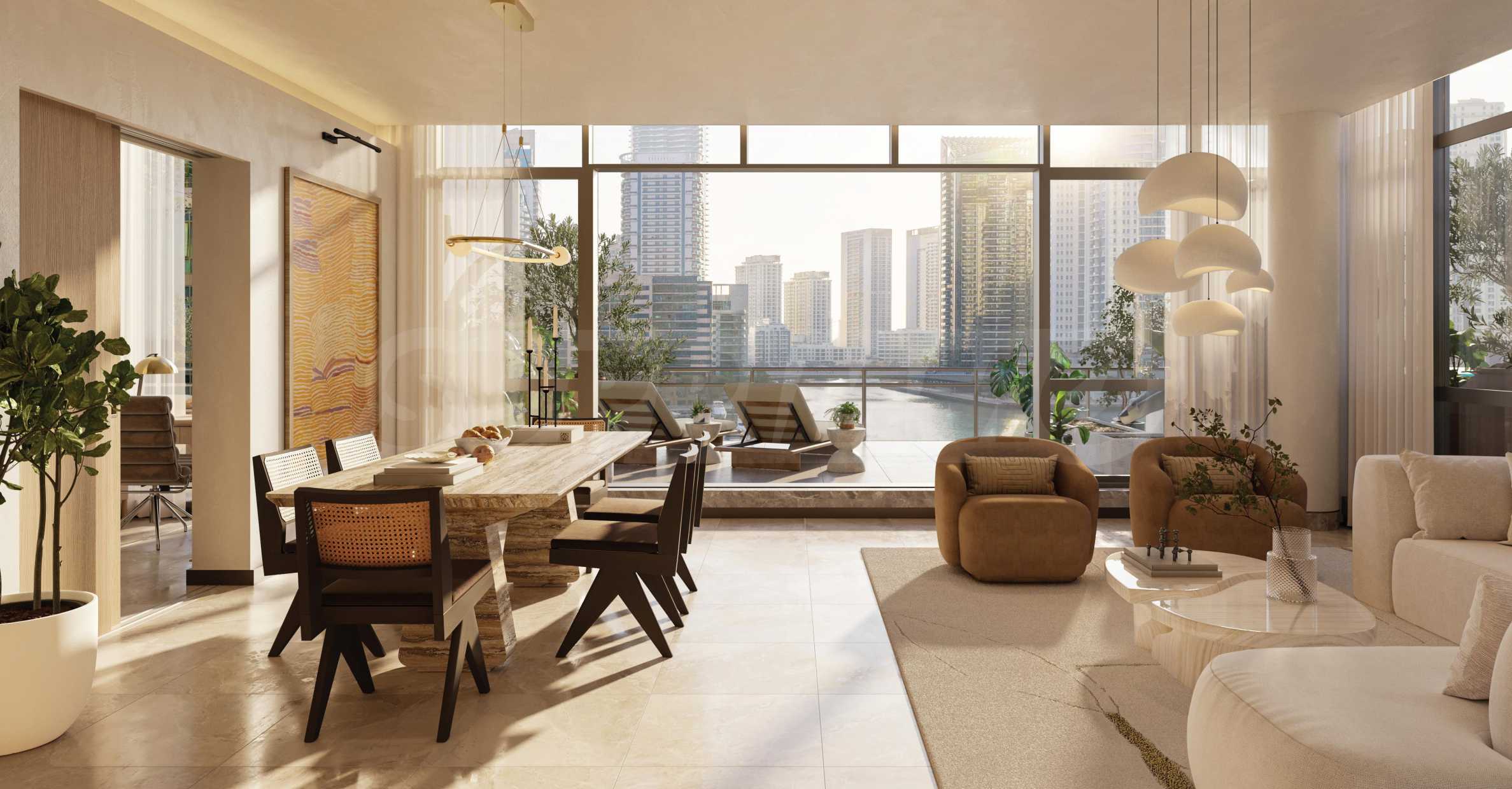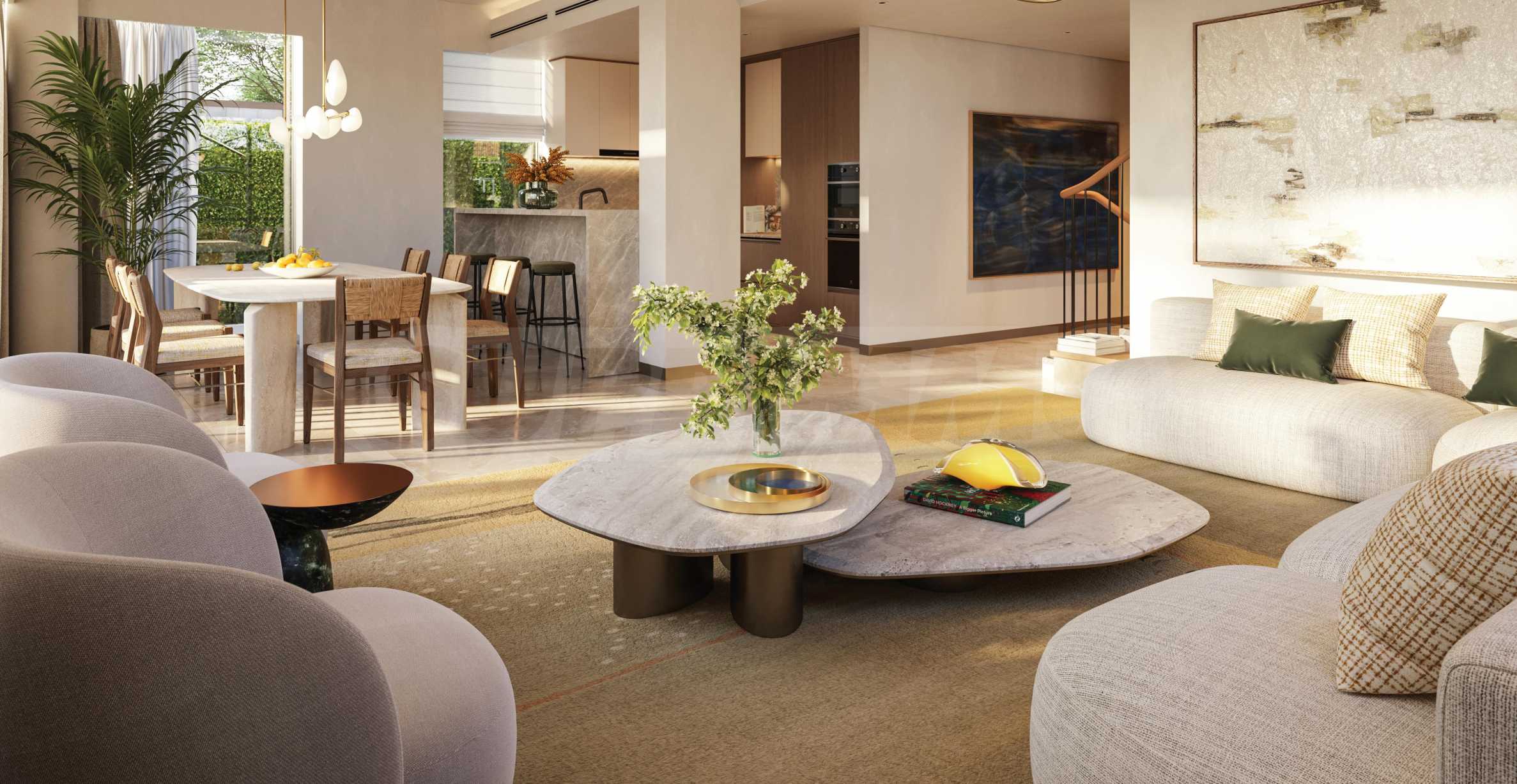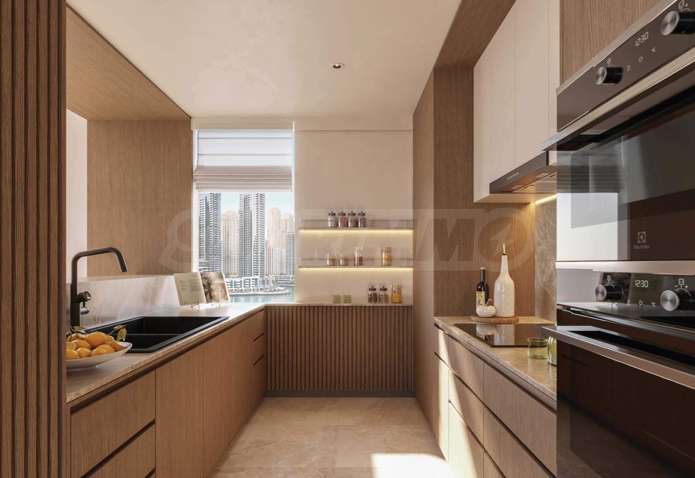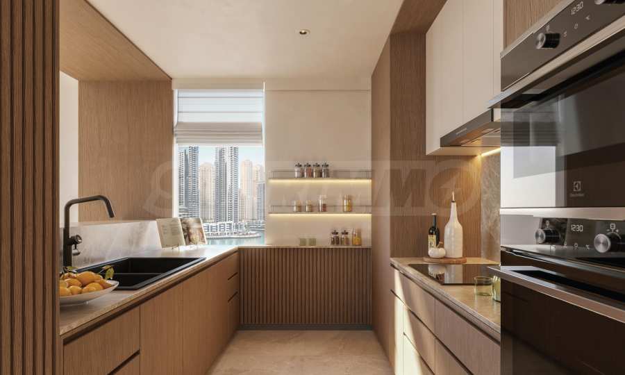 Fischgrät-Holzböden, maßgefertigte Oberflächen und exquisites Mauerwerk spiegeln die Eleganz klassischen Yachtdesigns wider und fügen sich nahtlos in den kosmopolitischen Rhythmus Dubais ein. Die Küchen sind mit hochwertigen Smeg-Geräten ausgestattet, die Badezimmer mit Armaturen von Gessi. Der nahtlose Übergang zwischen Innen- und Außenbereich schafft eine offene und luftige Atmosphäre – ideal für einen modernen Lebensstil.