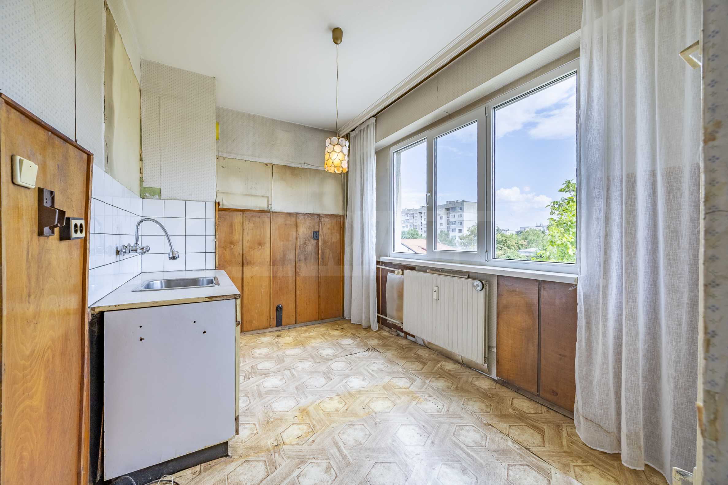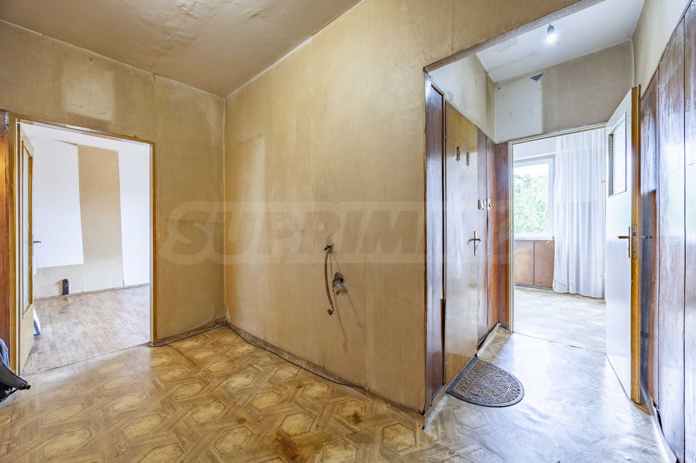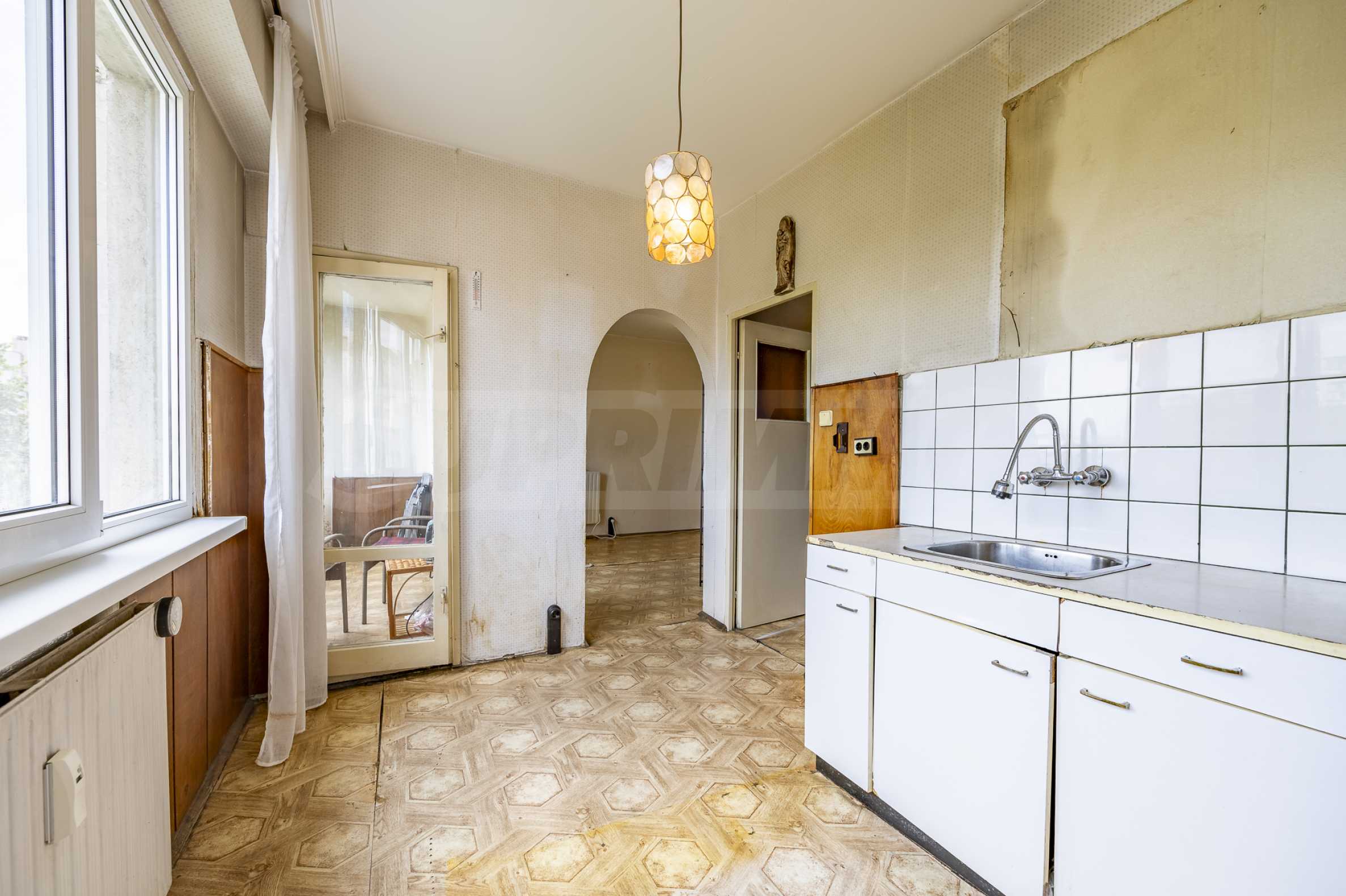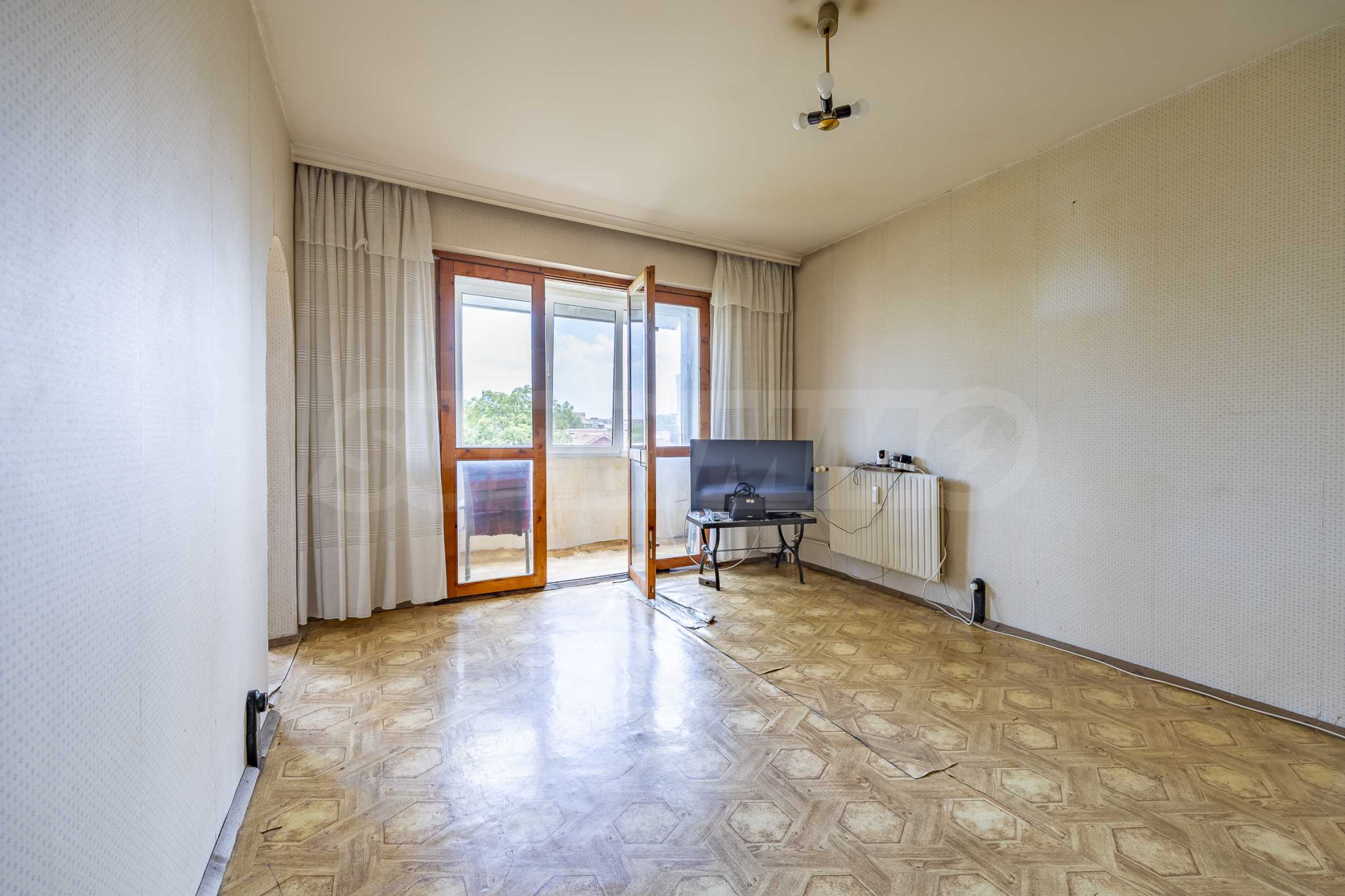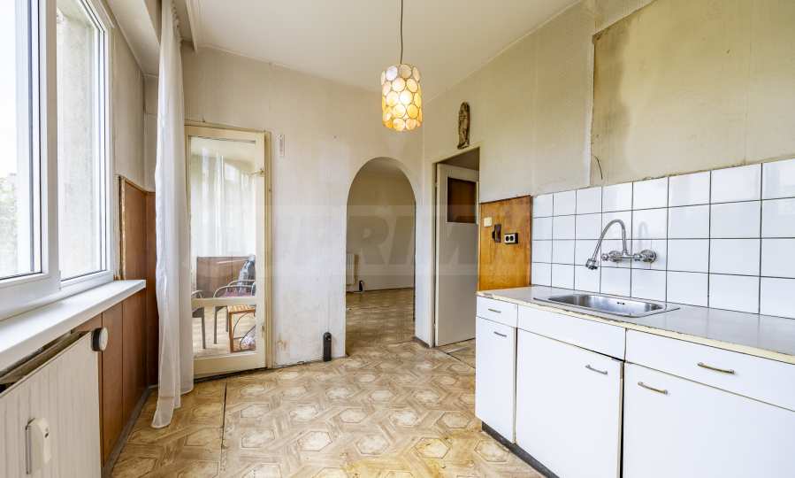 Die Südlage, das Fehlen hoher Gebäude, die das Licht blockieren, und die Aussicht machen die Wohnung warm und hell. Das Grundstück ist mittelgroß, es gibt auf allen Seiten Nachbarn. Im Winter wird die Wohnung mit Heizkörpern beheizt. Ein funktionierender Heizkessel ist vorhanden.