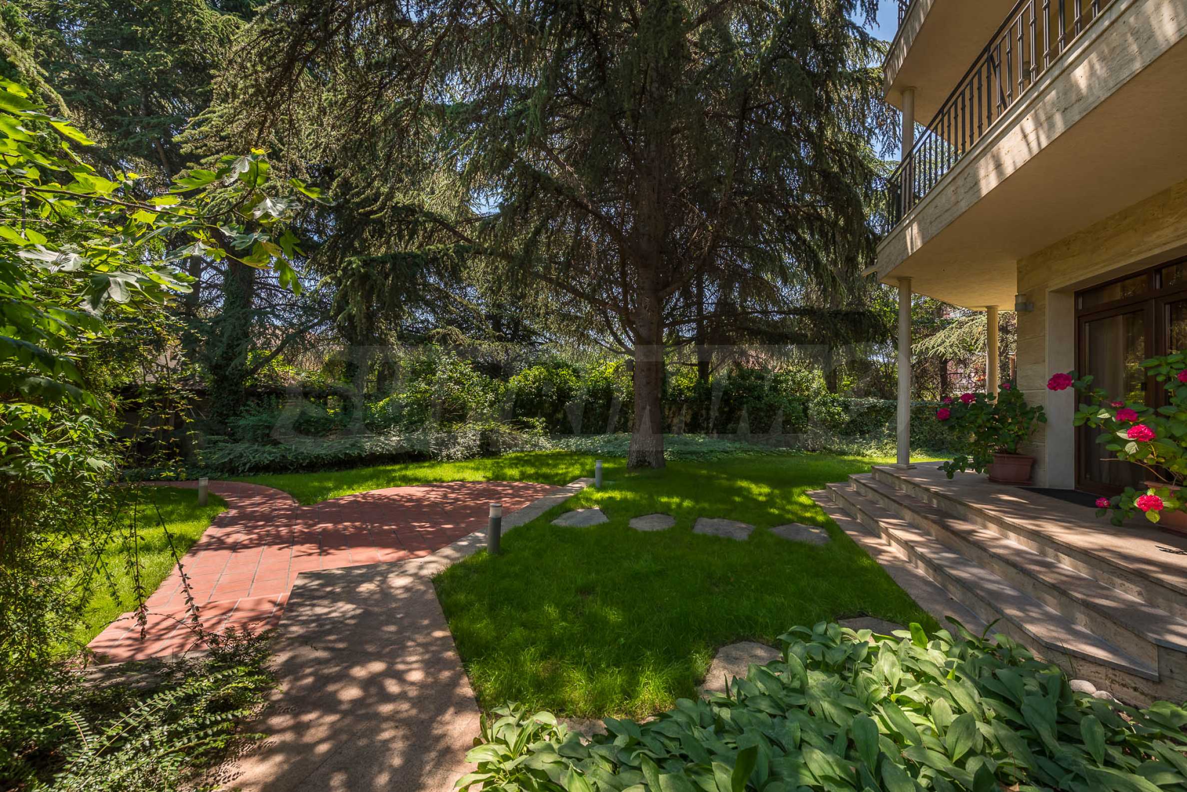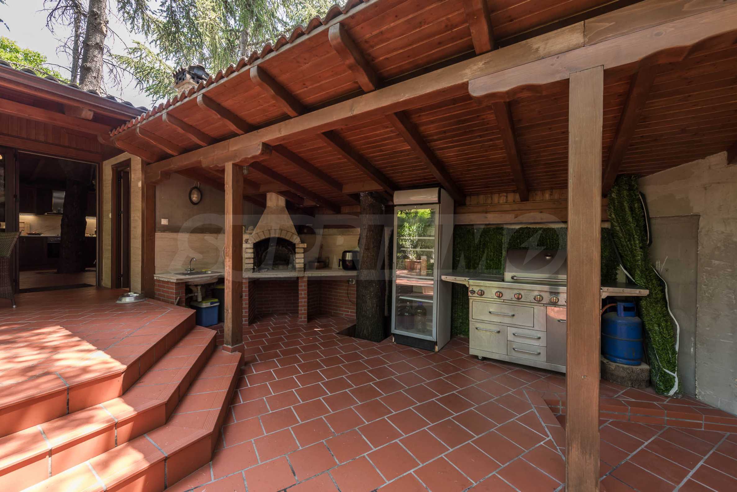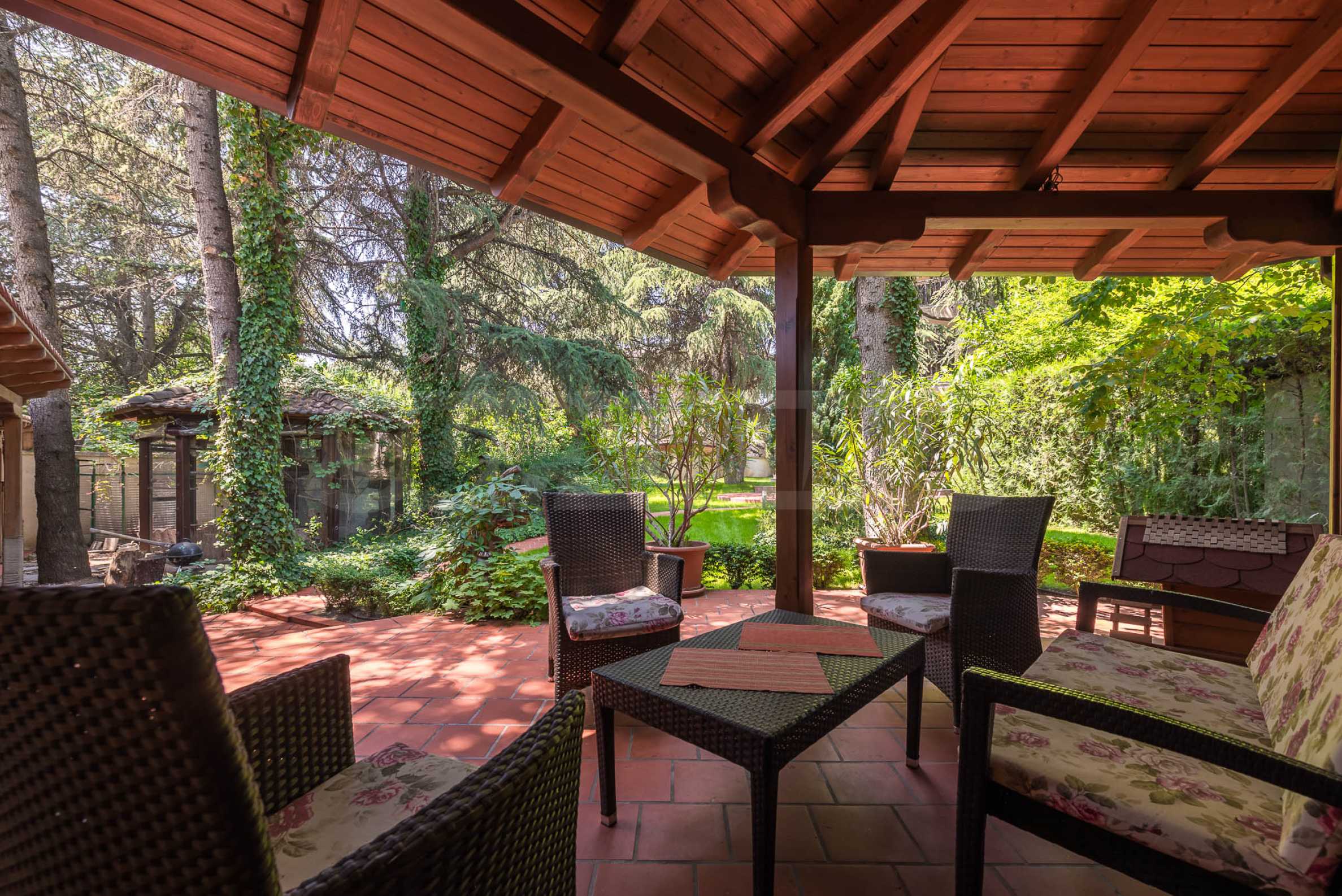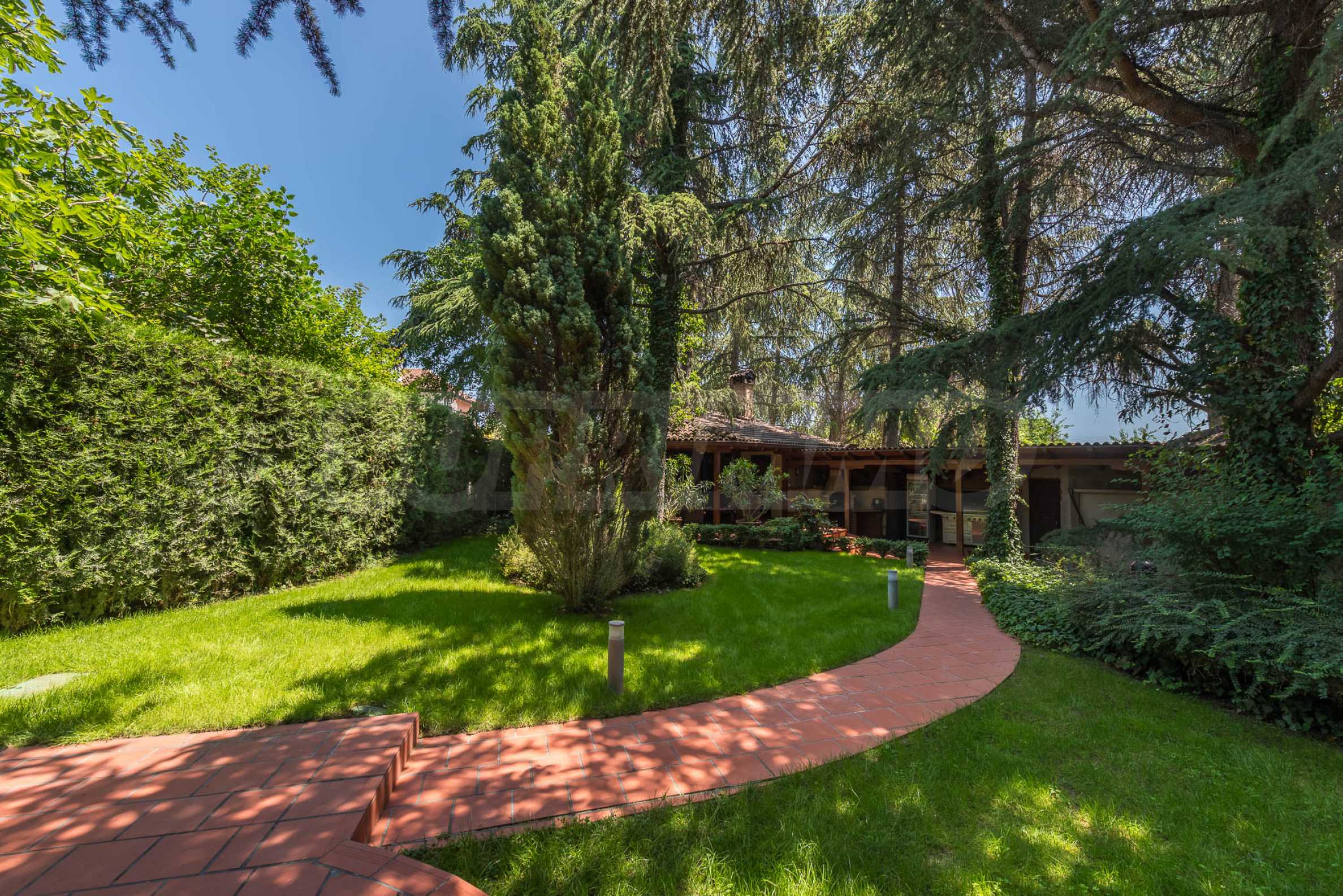 Das 1.382 qm große Grundstück gleicht einem persönlichen botanischen Garten – elegant angelegt, mit immergrünen Nadelbäumen bepflanzt und durch ein automatisches Bewässerungssystem gepflegt. Im Hof befindet sich außerdem ein voll ausgestatteter Wintergarten mit Grillplatz, Badezimmer und gemütlichem Vordach – der perfekte Ort für Familienfeiern oder Abendessen mit Freunden.