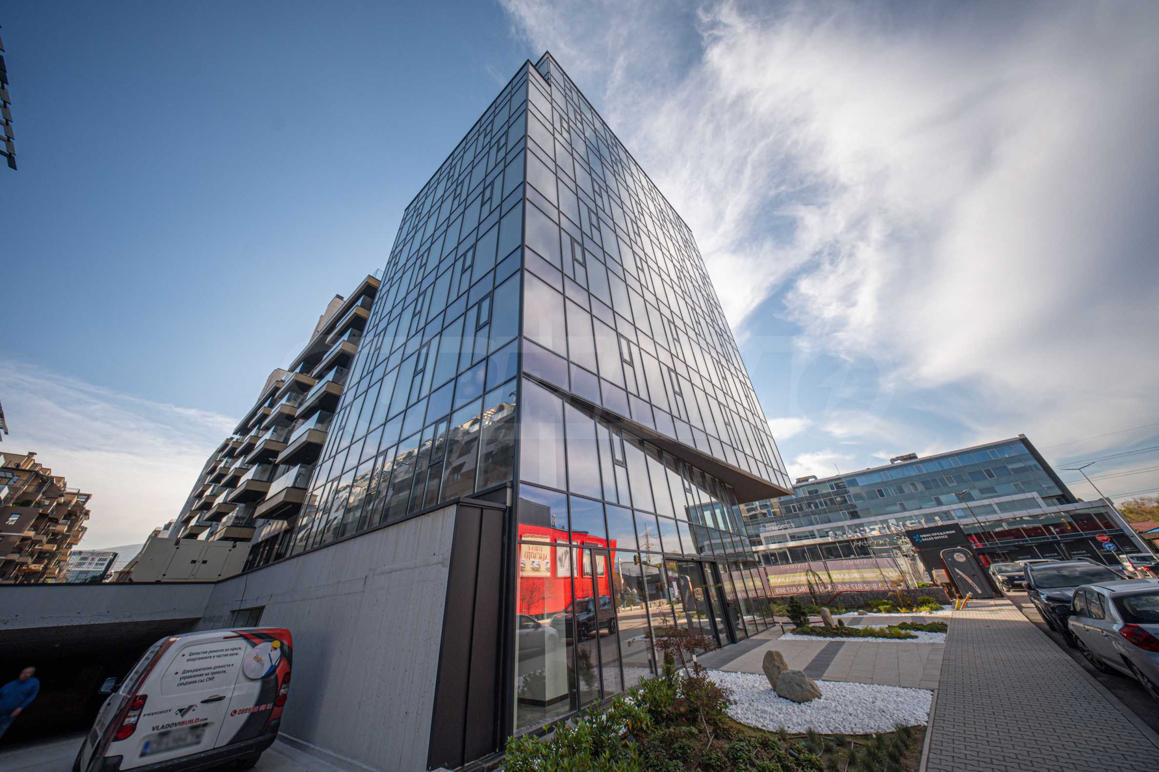 Das OKINAWA Boutique ist ein luxuriöses, multifunktionales Gebäude (Wohn-, Geschäfts- und Büroflächen) in bester Lage am Simeonovsko Shose Boulevard – in unmittelbarer Nähe des größten Einkaufszentrums der Luxuskette „Fantastico“. Der Bürotrakt befindet sich in zweiter Reihe des Prachtboulevards der Hauptstadt, erstreckt sich über neun Etagen und verfügt über einen separaten Eingang sowie zwei Aufzüge.