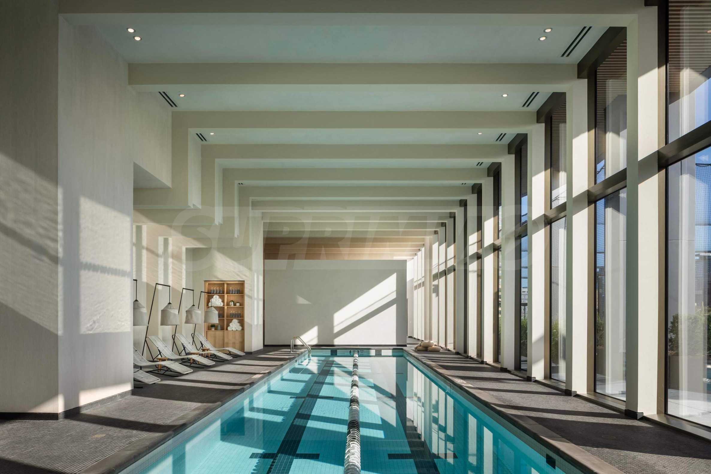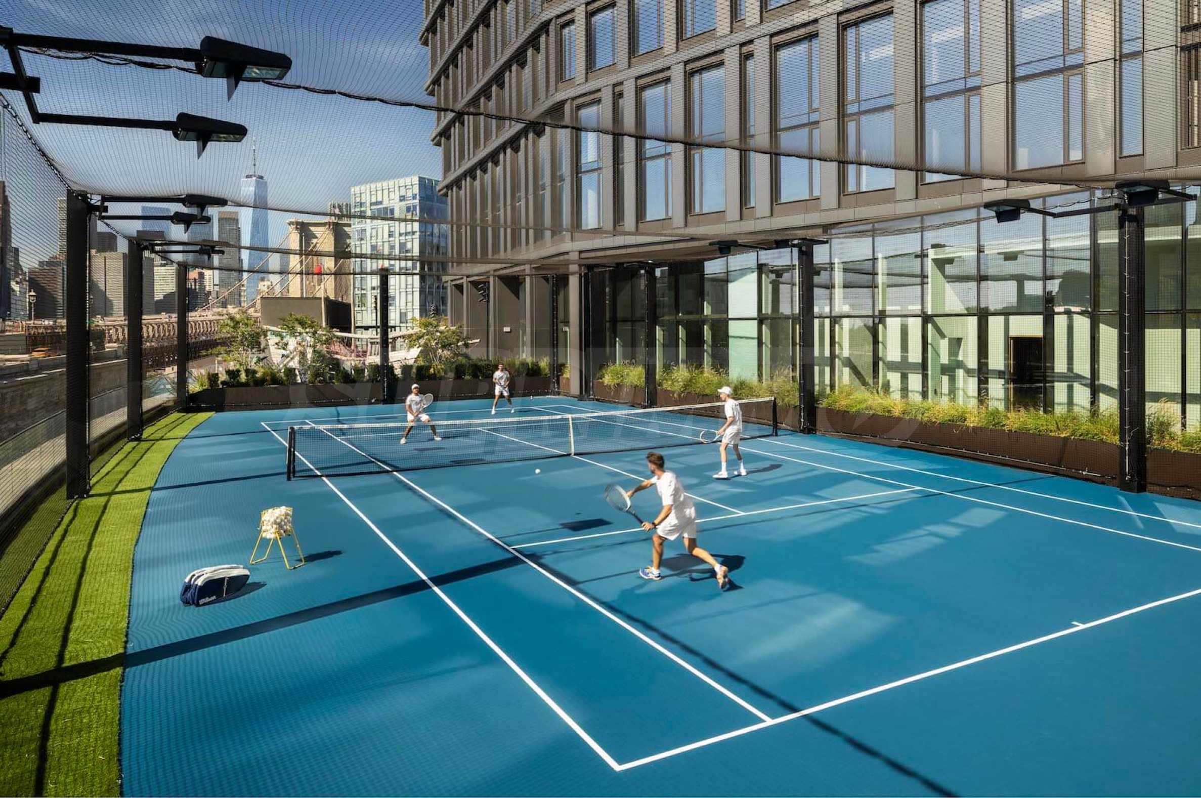 Neben den luxuriösen Wohnungen bietet das Gebäude eine erlesene Auswahl an Annehmlichkeiten für höchsten Wohnstandard. Den Bewohnern stehen ein Außenpool mit Ruhezonen, ein Hallenbad für Sport und Entspannung sowie ein Wellnessbereich mit Dampfbad und Sauna zur Verfügung. Zu den Außenanlagen gehören ein Wasserspielplatz für Kinder und ein Tennisplatz. Der Fitnessraum ist voll ausgestattet und verfügt über einen separaten Spinning-Bereich. Eine Bowlingbahn, ein Kinderspielzimmer und ein stilvoller Loungebereich ergänzen die Möglichkeiten zur Entspannung und zum geselligen Beisammensein und machen jeden Tag zu einem unvergesslichen Erlebnis.