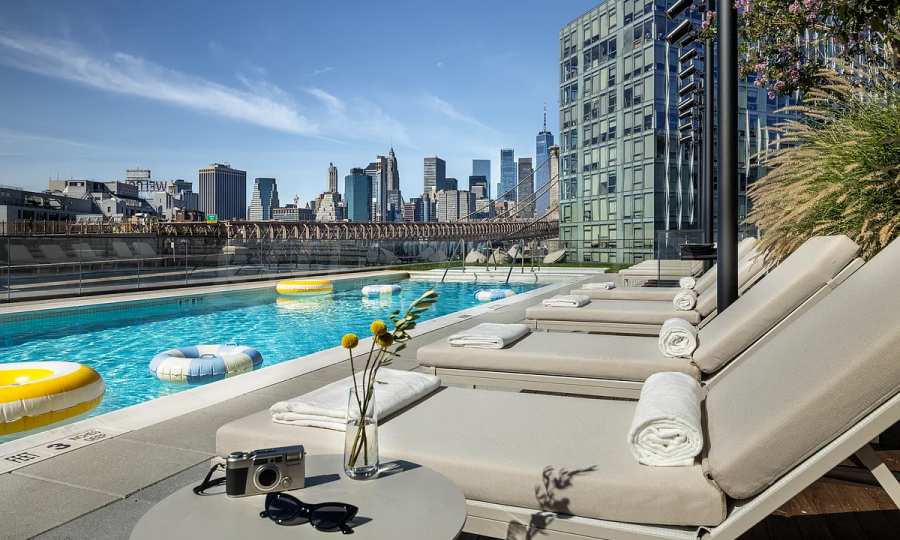 • Penthouses über 350 m² – mit 360-Grad-Panorama, privaten Terrassen und direktem Blick auf die Freiheitsstatue, die Brooklyn Bridge und Manhattan.