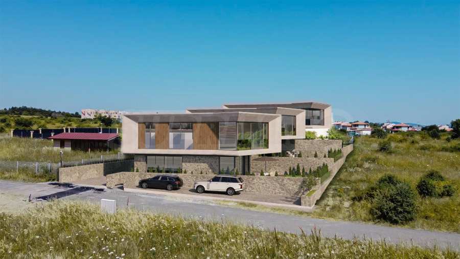 Der Komplex ist in einem zeitgenössischen Architekturstil mit geraden Linien und futuristischen Akzenten gestaltet. Die Häuser verfügen über einen modernen und funktionalen Grundriss, verteilen sich auf zwei Etagen und haben separate, begrünte Innenhöfe.