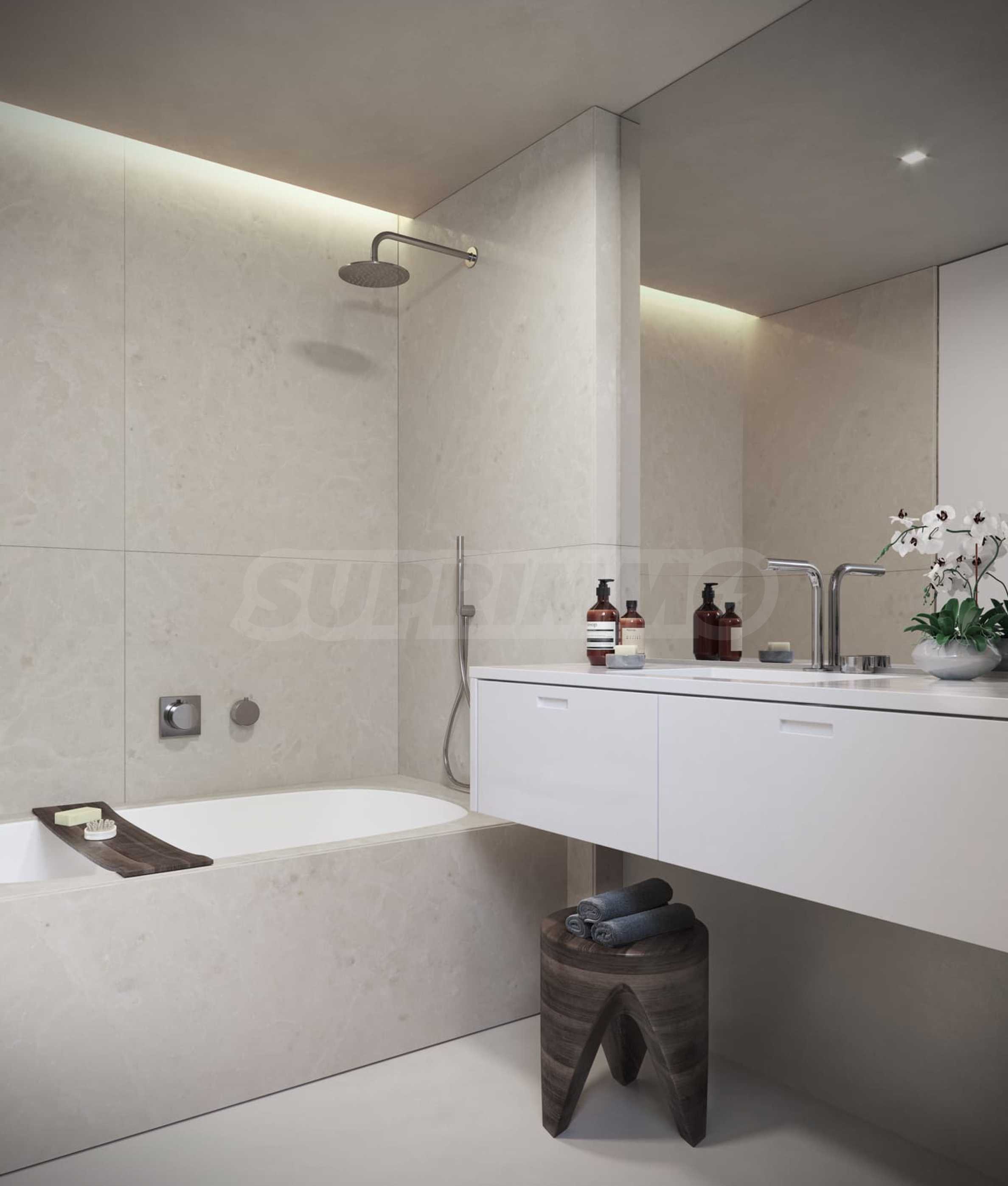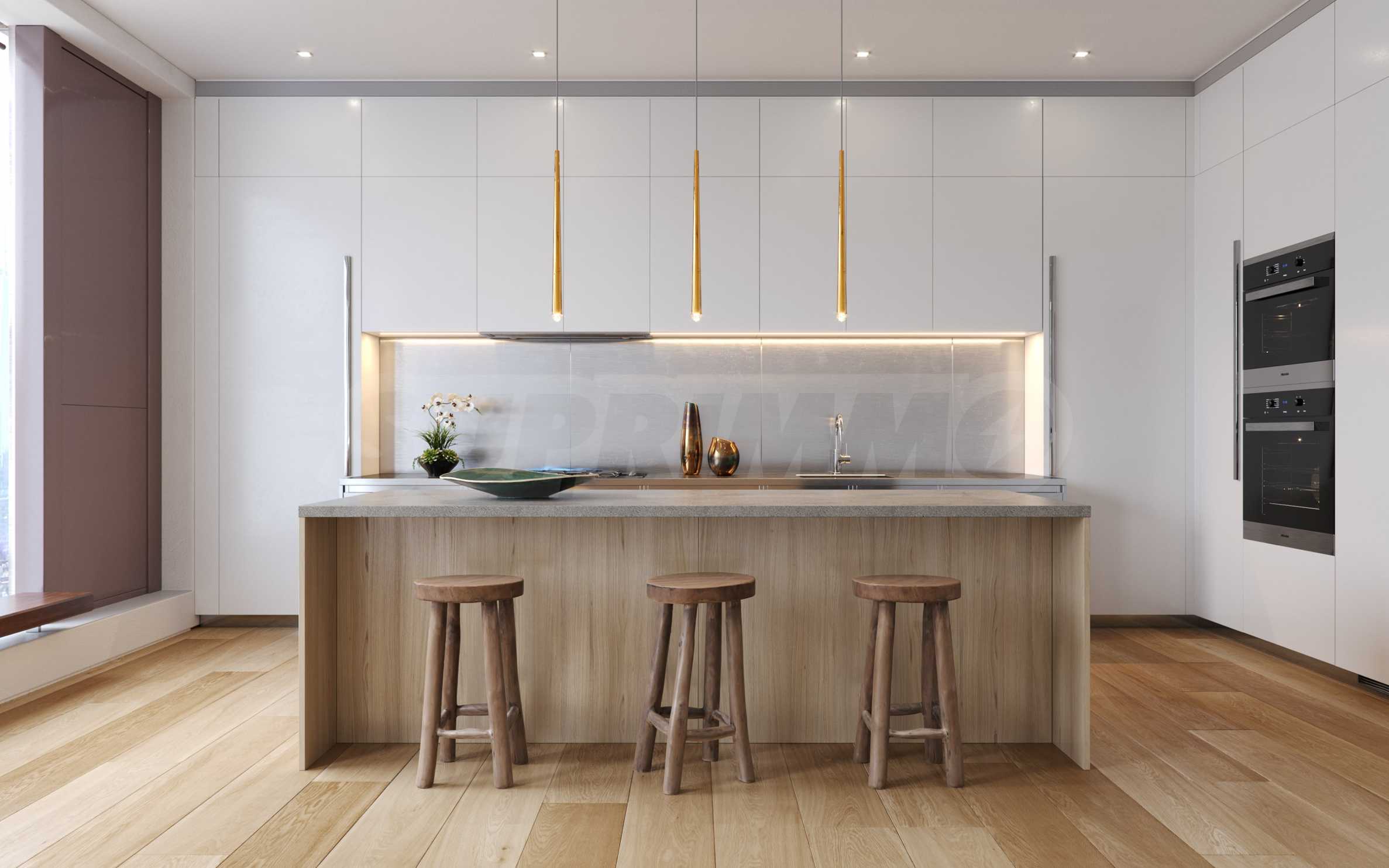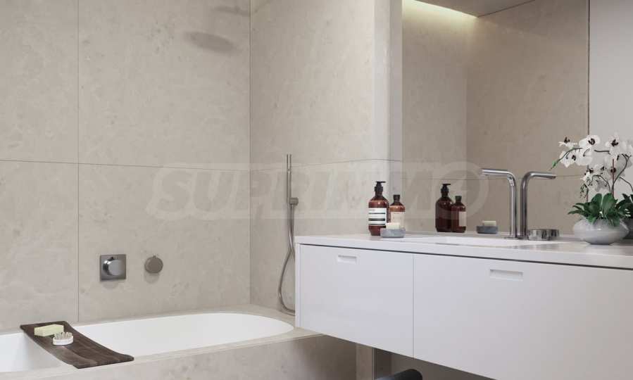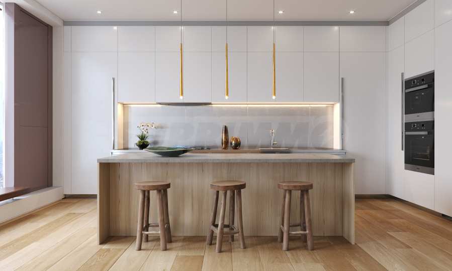 Alle Wohnungen sind mit eleganten Küchen von Boffi ausgestattet, die moderne und hochwertige europäische Materialien meisterhaft kombinieren. Die elegante Kücheninsel mit Pietra Serena-Arbeitsplatte und Türen in Eichenoptik sind wichtige Details, die ein wahrhaft erhabenes kulinarisches Erlebnis schaffen – egal, ob Sie Familie oder Freunde bewirten.
