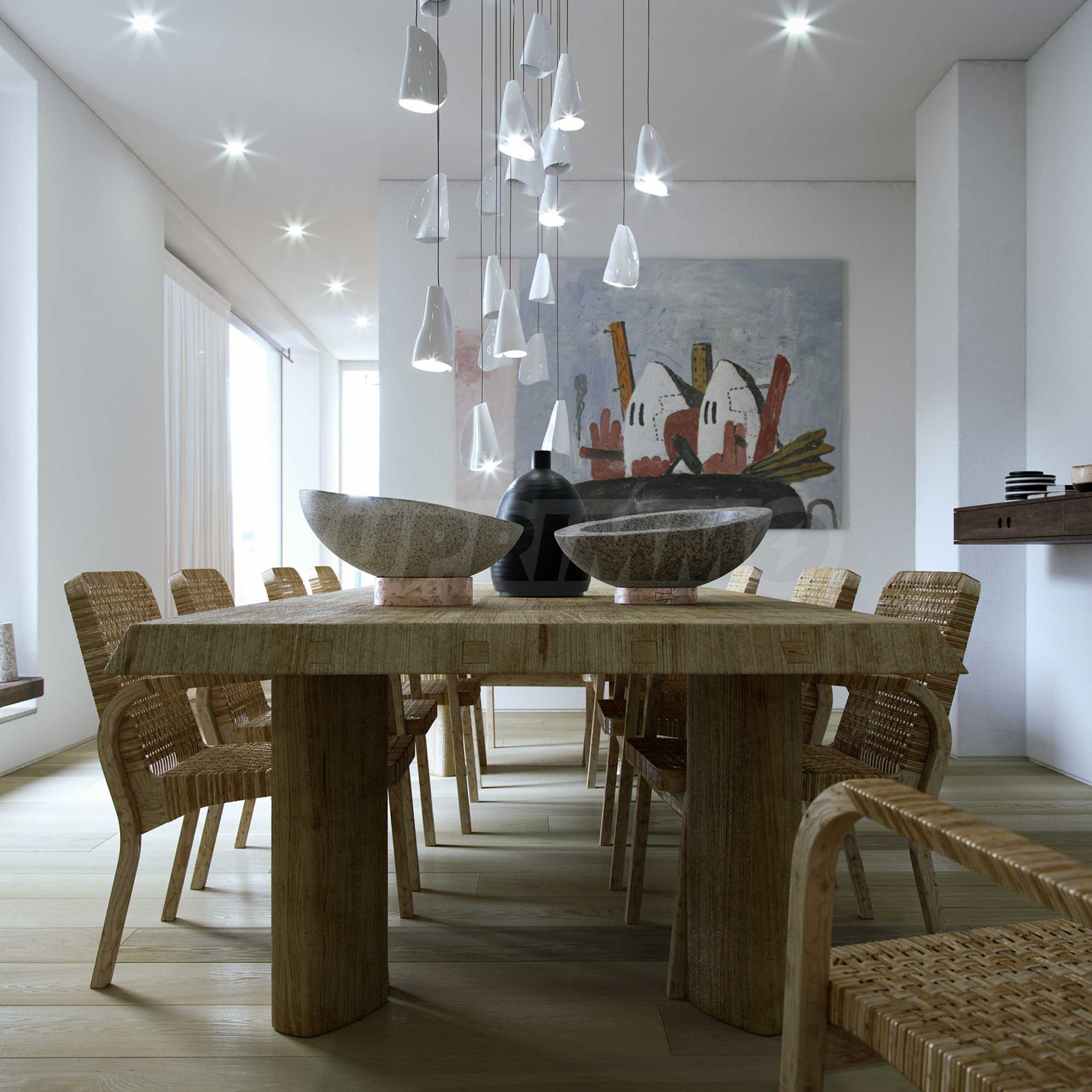 Die Fenster sorgen nicht nur für Licht, sondern rahmen auch den Blick auf die Stadt ein und machen das Panorama zu einem Teil des Innenraums. Die Grundrisse sind eine harmonische Synthese aus Funktionalität und Eleganz – jedes Haus bietet einen individuellen Raum für Privatsphäre sowie einen großzügigen Wohnbereich für gemeinsame Momente und gemütliche Zusammenkünfte.