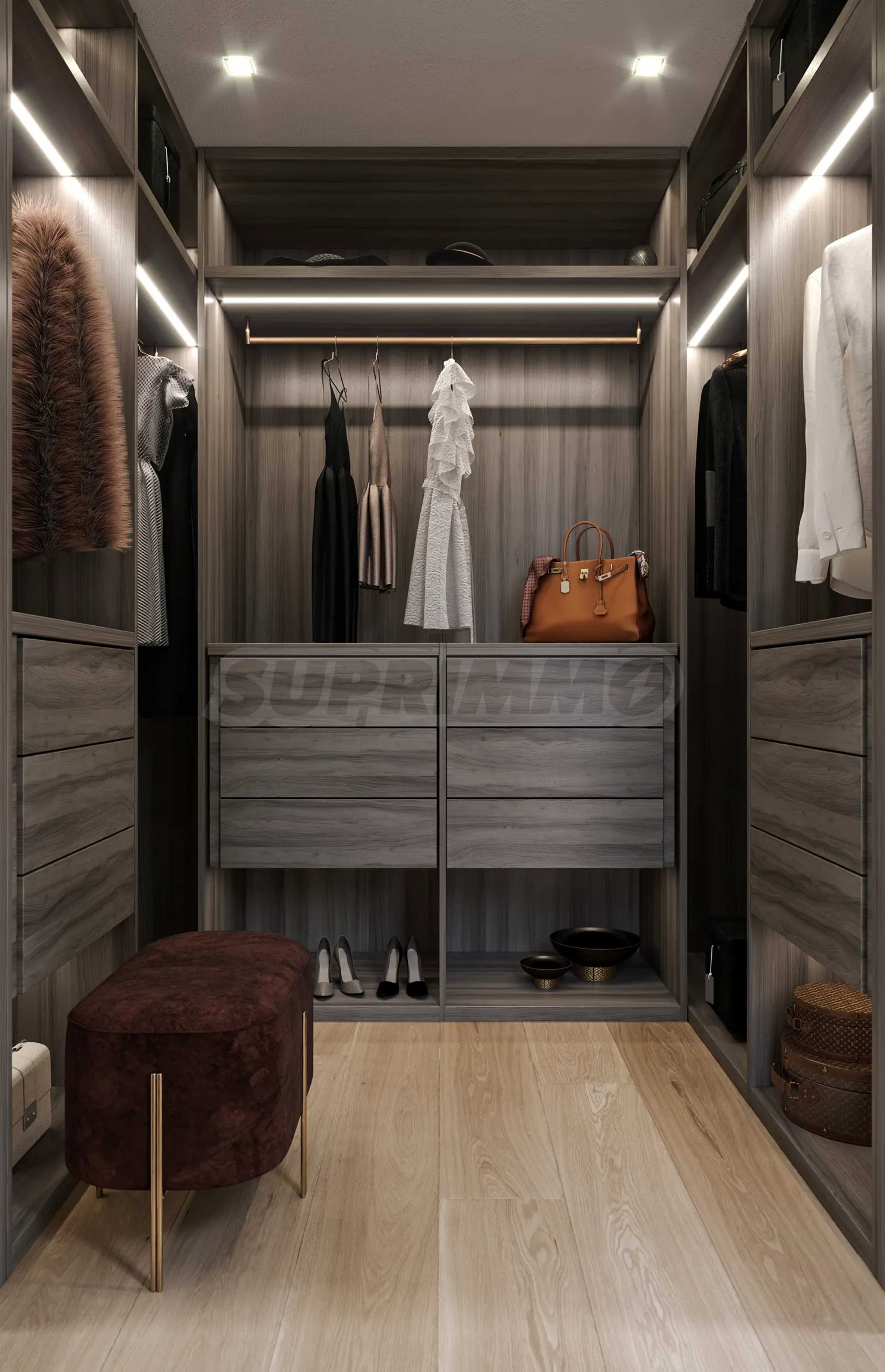 Die riesigen Fenster und geräumigen Zimmer schaffen in den Schlafzimmern ein Gefühl von Luxus und Leichtigkeit und die eleganten Kleiderschränke bieten hervorragende Aufbewahrungs- und Organisationslösungen.