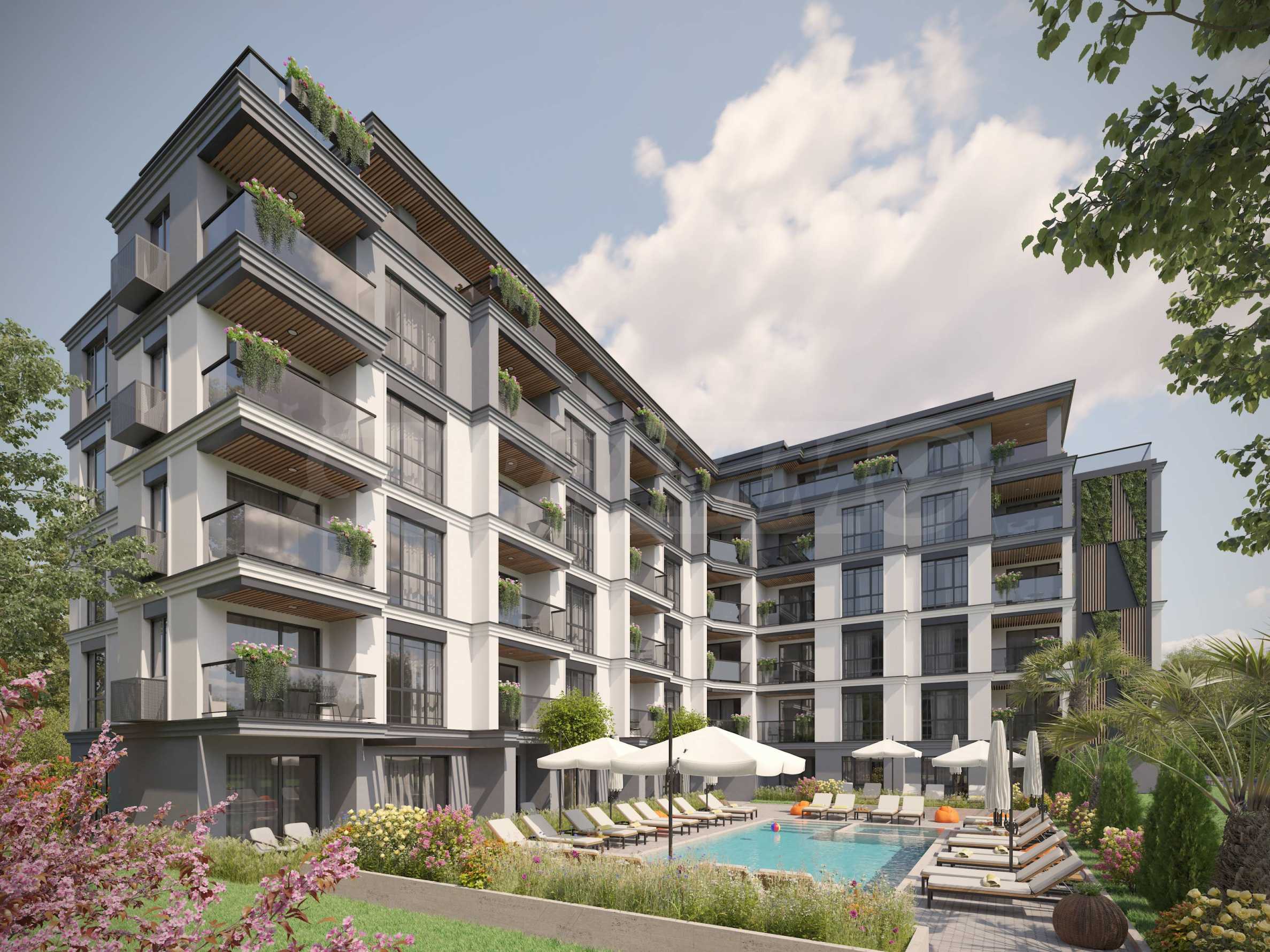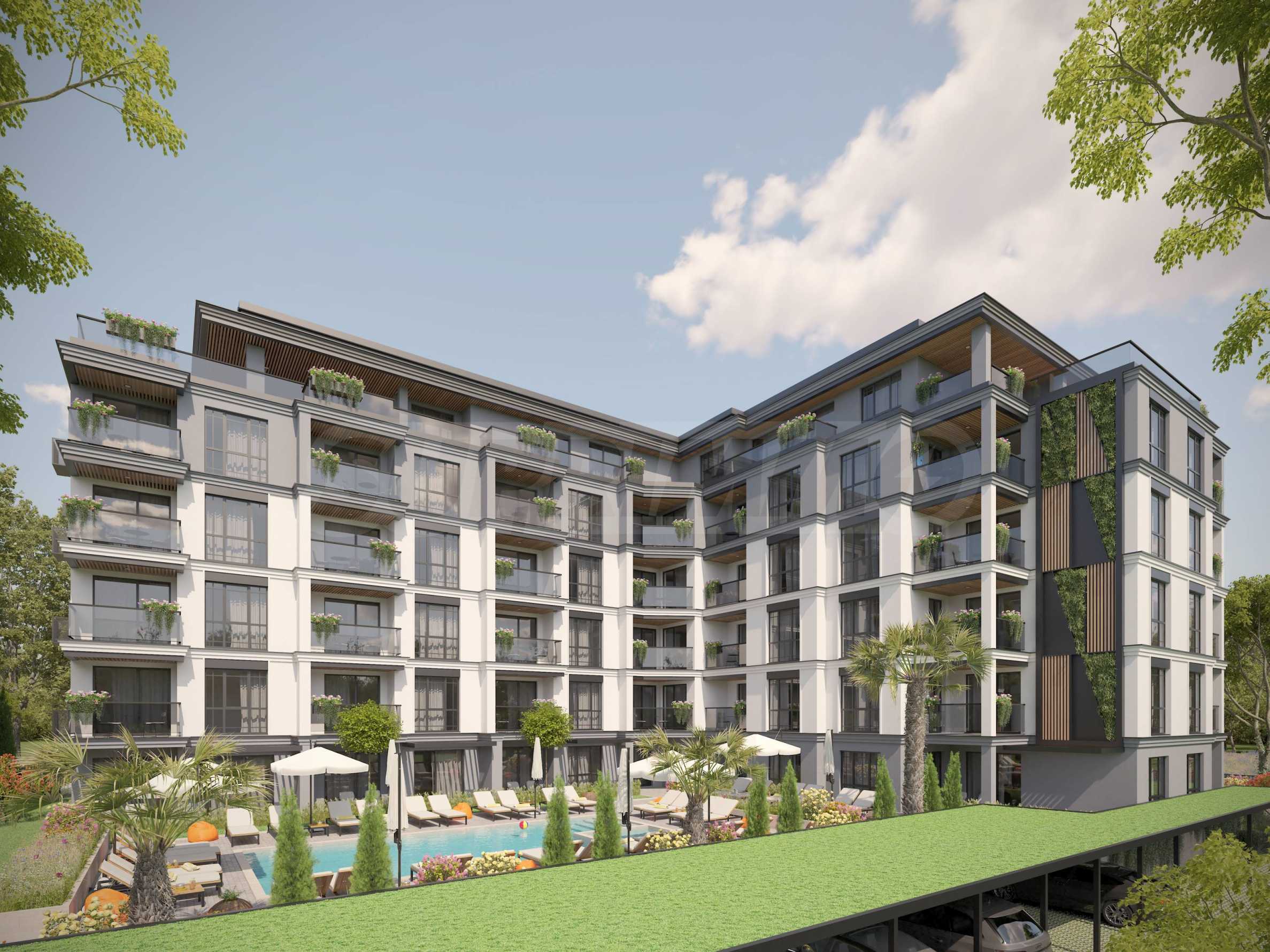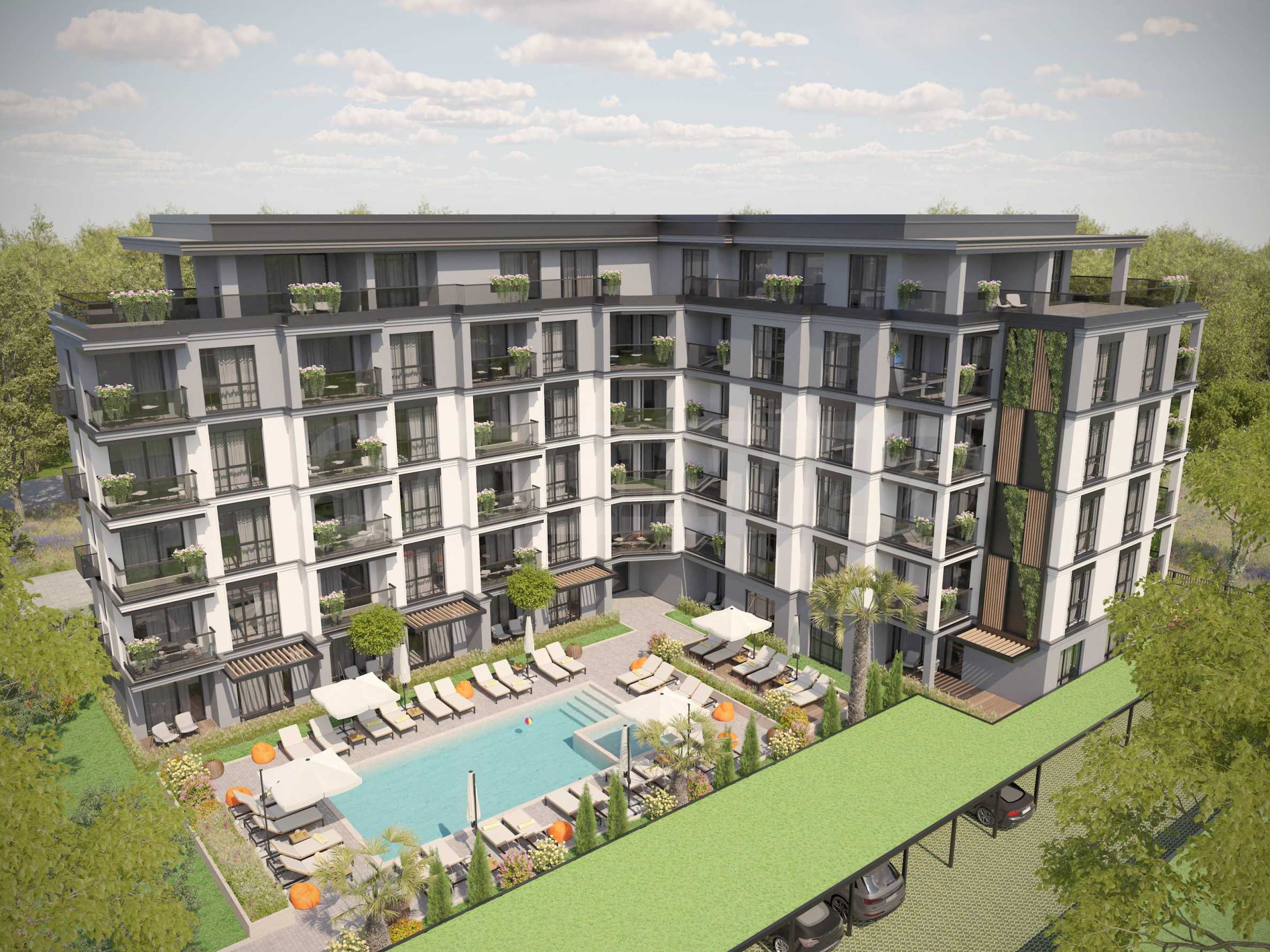 Die moderne Boutique-Vision und die funktionale Raumaufteilung sind der größte Vorteil des Komplexes gegenüber den konkurrierenden Gebäuden in der Region Sonnenstrand. Das Gebäude wird sechsgeschossig sein und insgesamt 55 Wohnungen beherbergen – Ein-, Zwei- und Dreizimmerwohnungen. Der Komplex verfügt über eine Tiefgarage, eine Rezeption, einen Garten und einen beheizten Pool. Der Investor sorgt für die Bereitstellung von Parkplätzen.