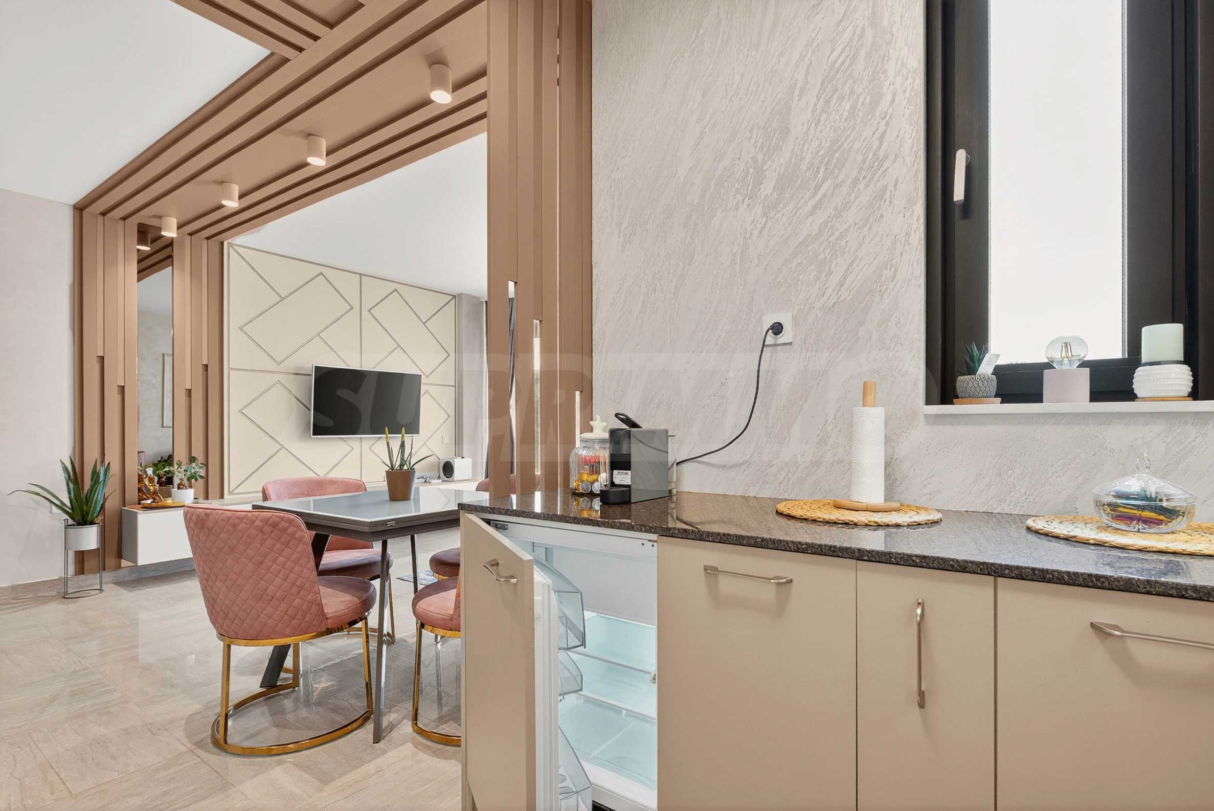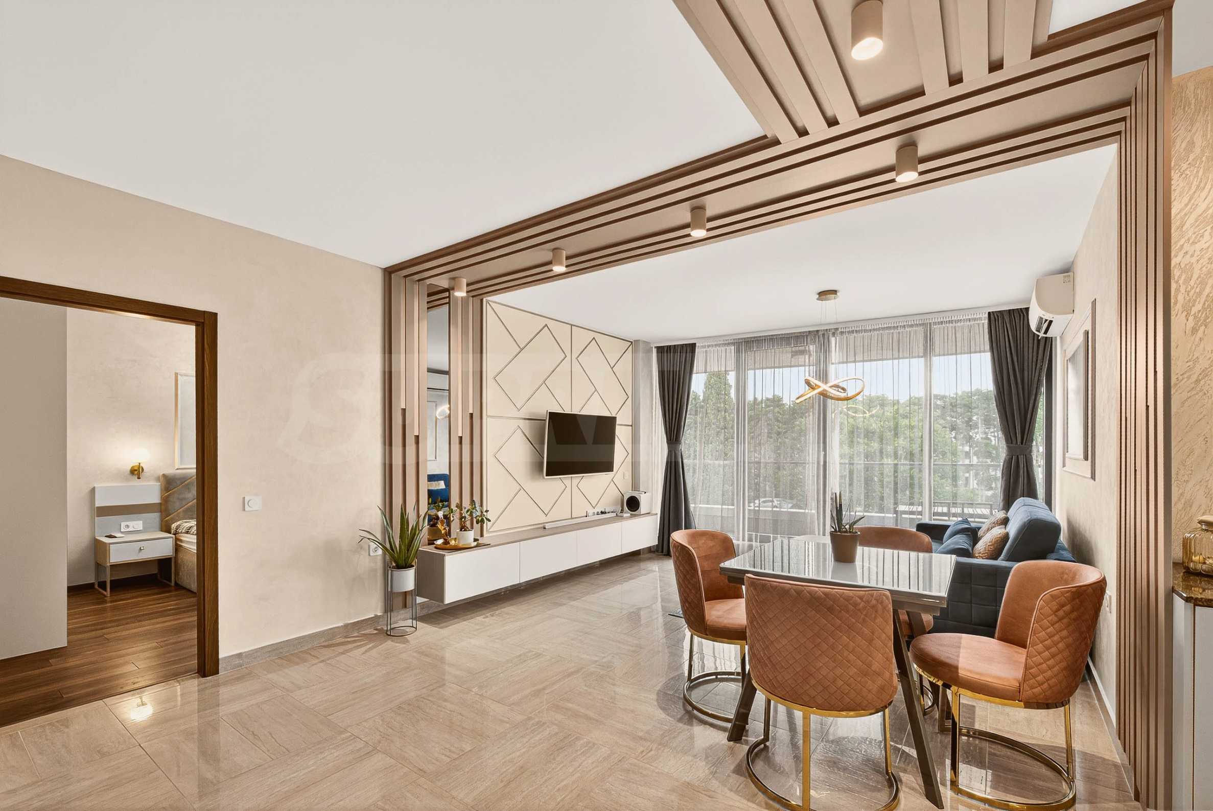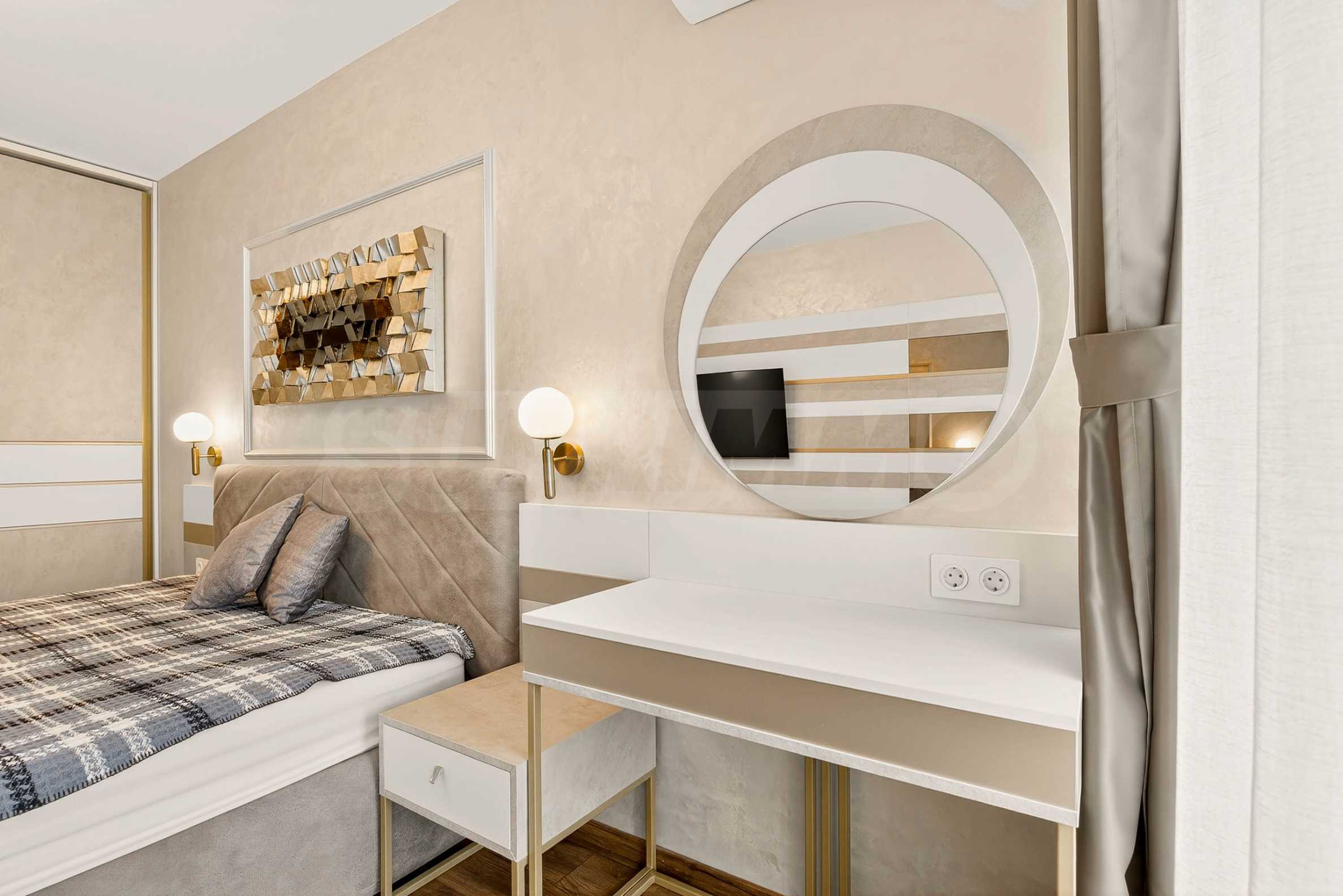 Wir präsentieren Ihnen eine unglaubliche Einzimmerwohnung mit Parkplatz zur Miete in einem der elegantesten und begehrtesten Gebäude des Ferienkomplexes St. Konstantin und Elena. Hier trifft Luxus auf Natur und jeder Morgen beginnt mit dem Rauschen der Wellen.