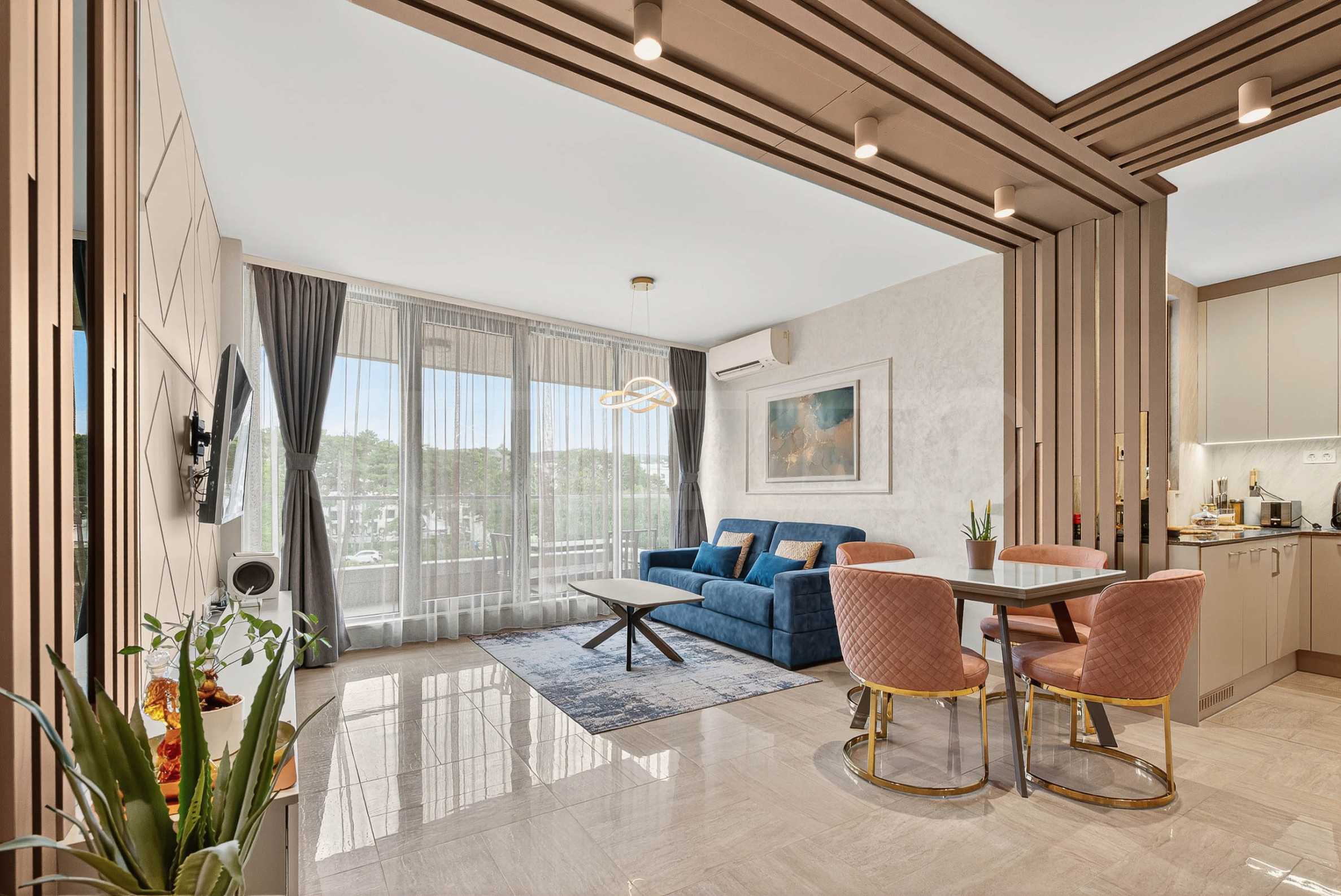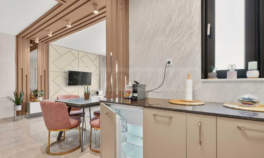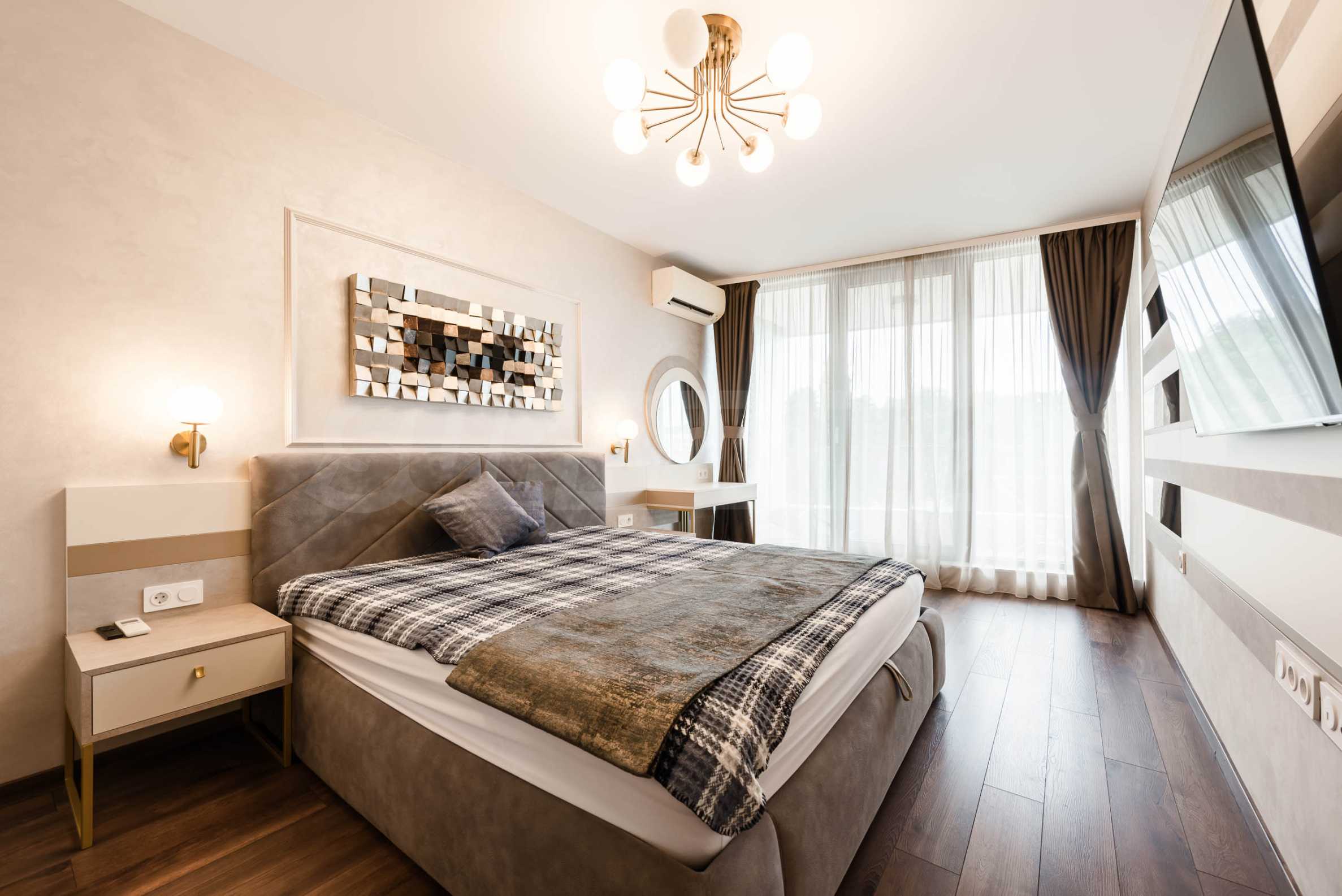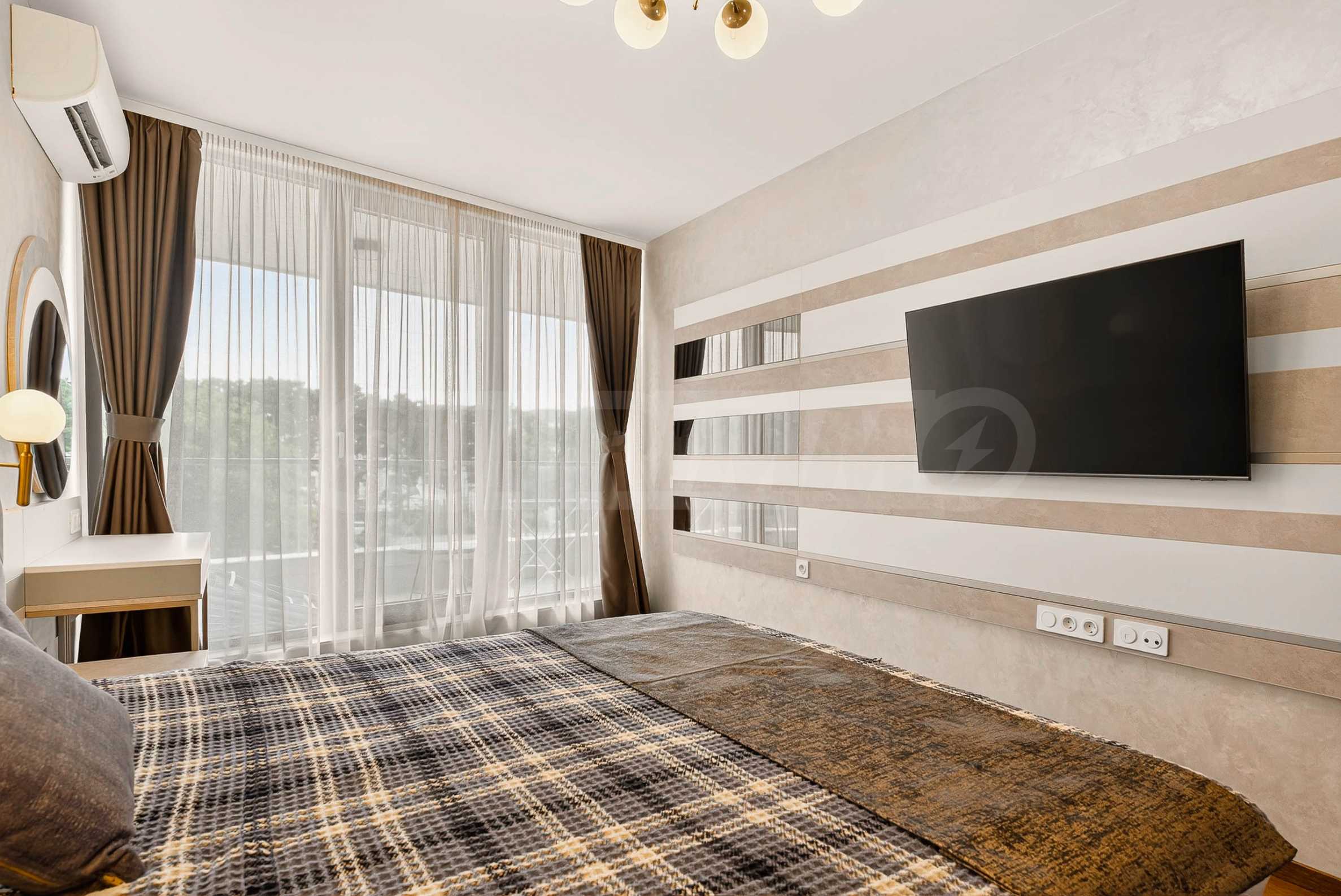 Wir präsentieren Ihnen eine unglaubliche Einzimmerwohnung mit Parkplatz zur Miete in einem der elegantesten und begehrtesten Gebäude des Ferienkomplexes St. Konstantin und Elena. Hier trifft Luxus auf Natur und jeder Morgen beginnt mit dem Rauschen der Wellen.