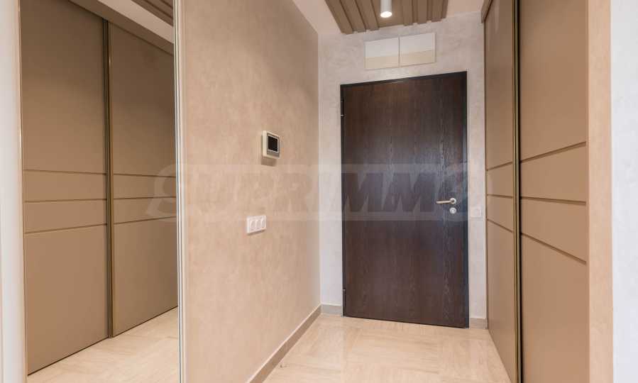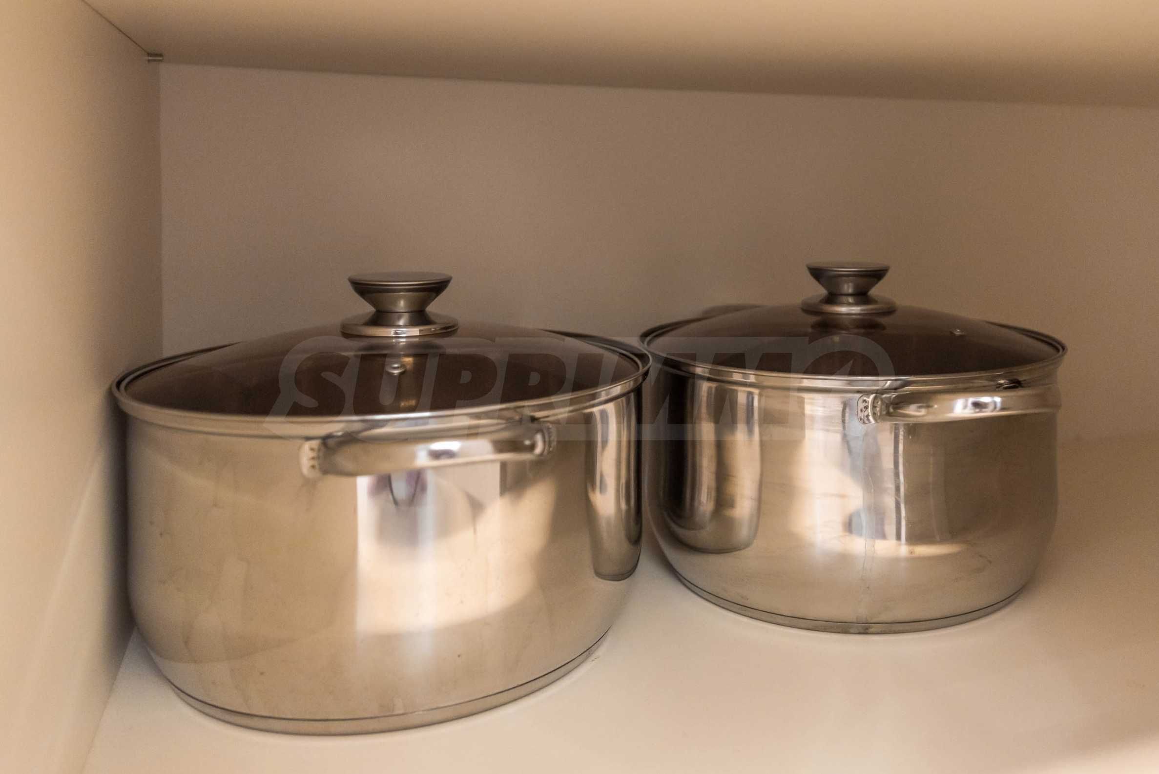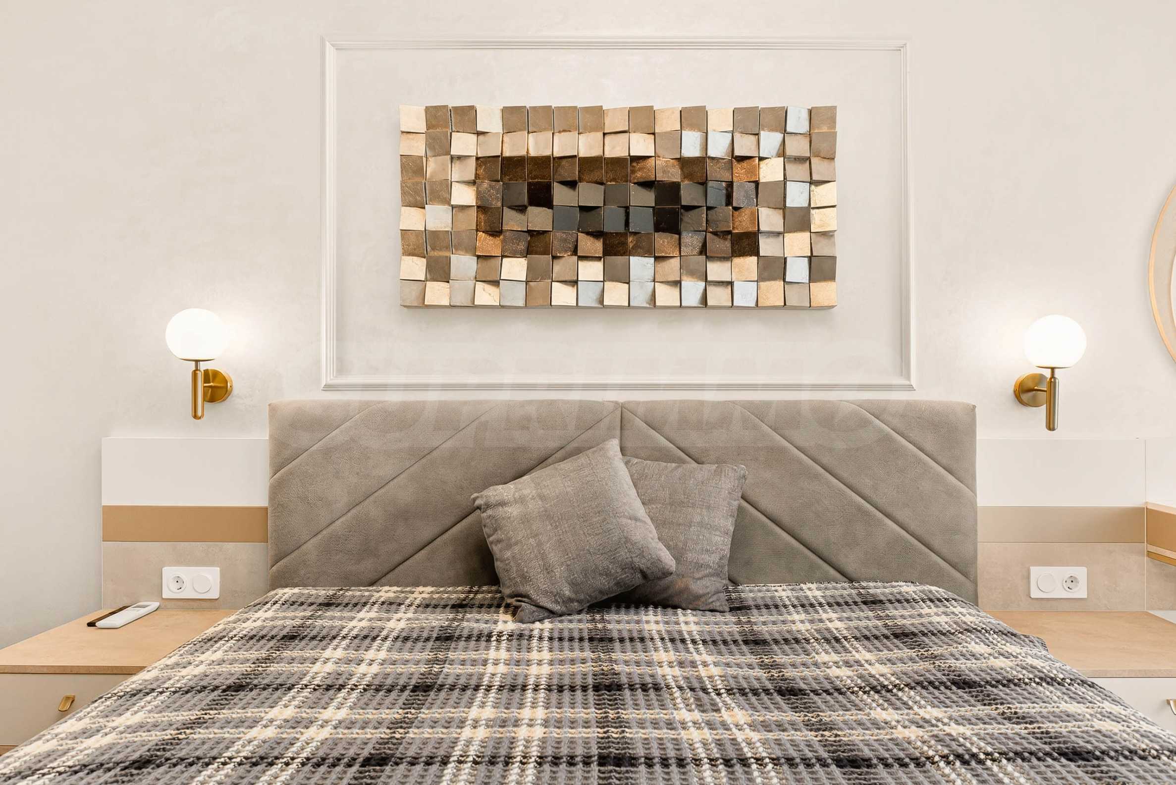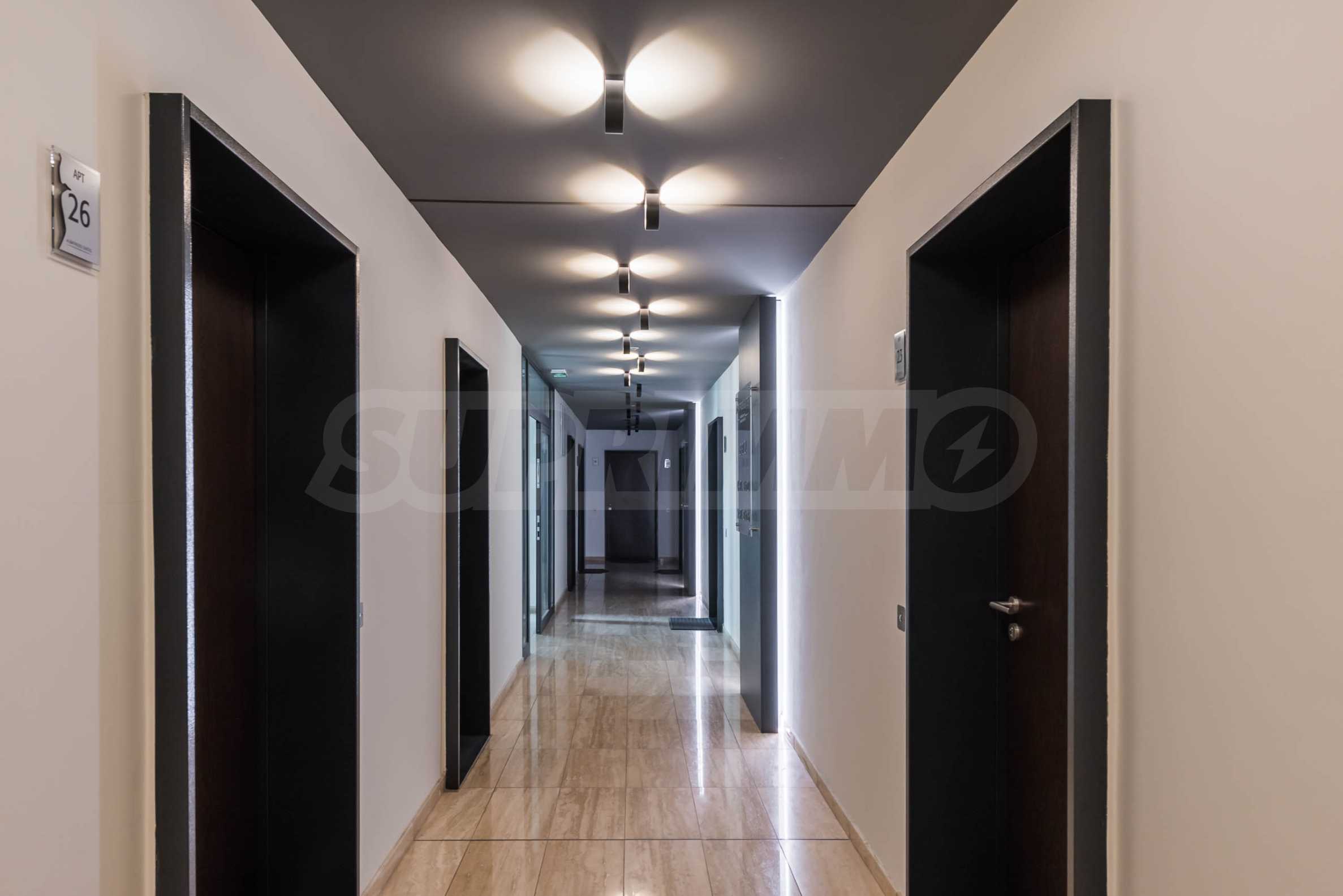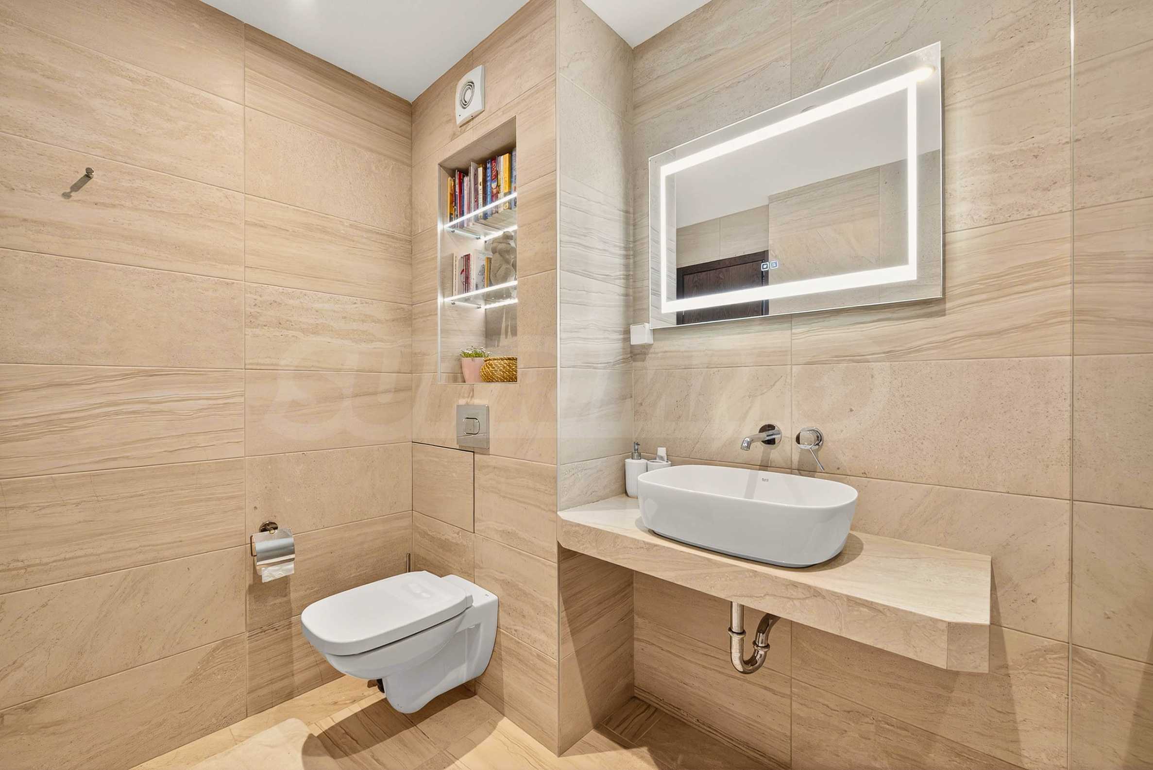 Die Wohnung besticht durch ein modernes Interieur, das mit Geschmack und Liebe zum Detail ausgewählt wurde. Die Einrichtung ist Designer, mit hochwertigen Möbeln und Geräten – alles, was Sie für einen komfortablen Alltag und eine wohlverdiente Erholung benötigen. Die Panoramafenster füllen das Haus mit Licht und schaffen ein Gefühl von Großzügigkeit und Leichtigkeit.