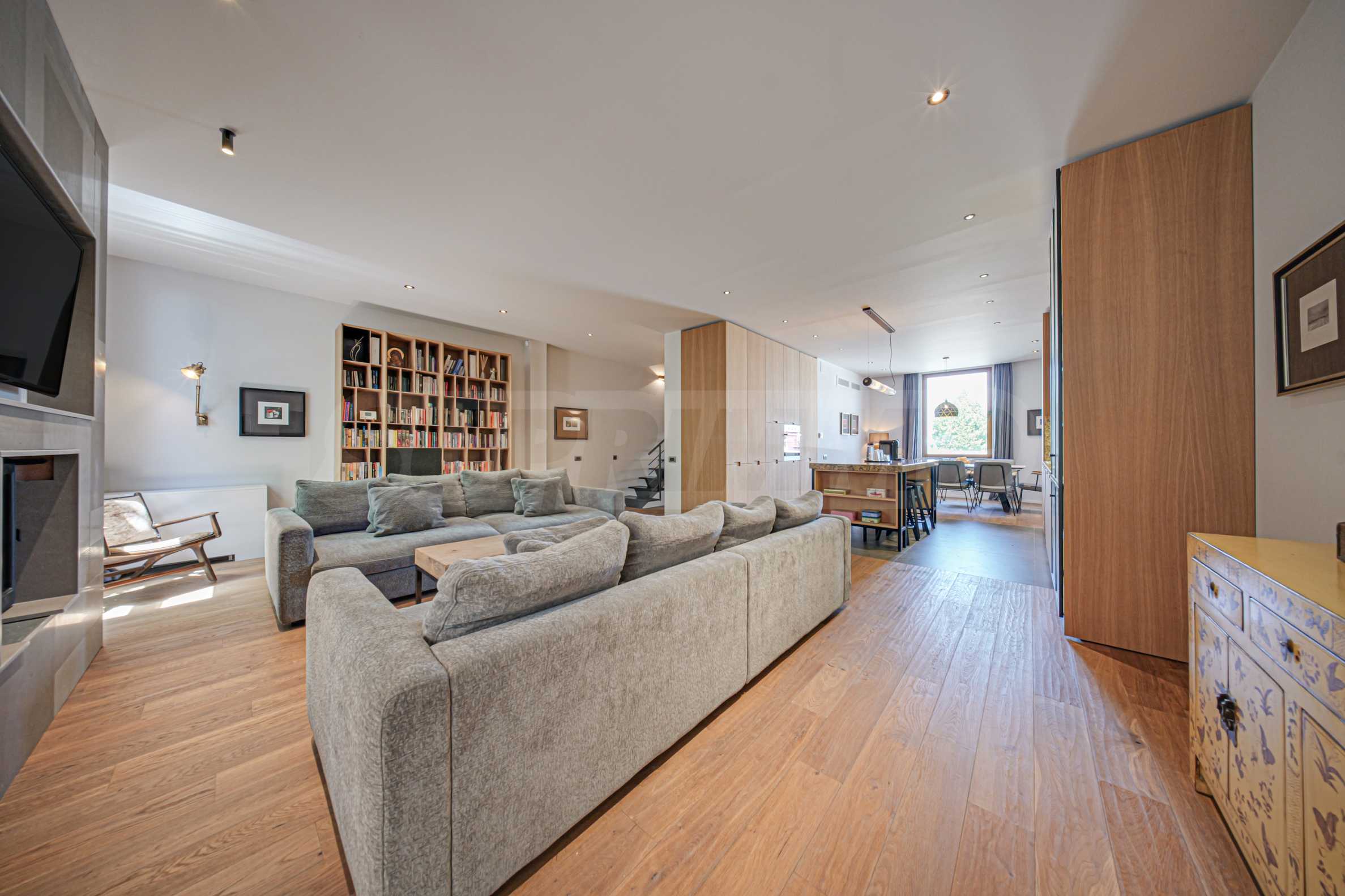 Das Untergeschoss ergänzt die Funktionalität des Anwesens durch eine Doppelgarage mit Ladestation für Elektrofahrzeuge, ein Fitnessstudio, einen Heizraum, Lagerräume und ein privates Badezimmer.
