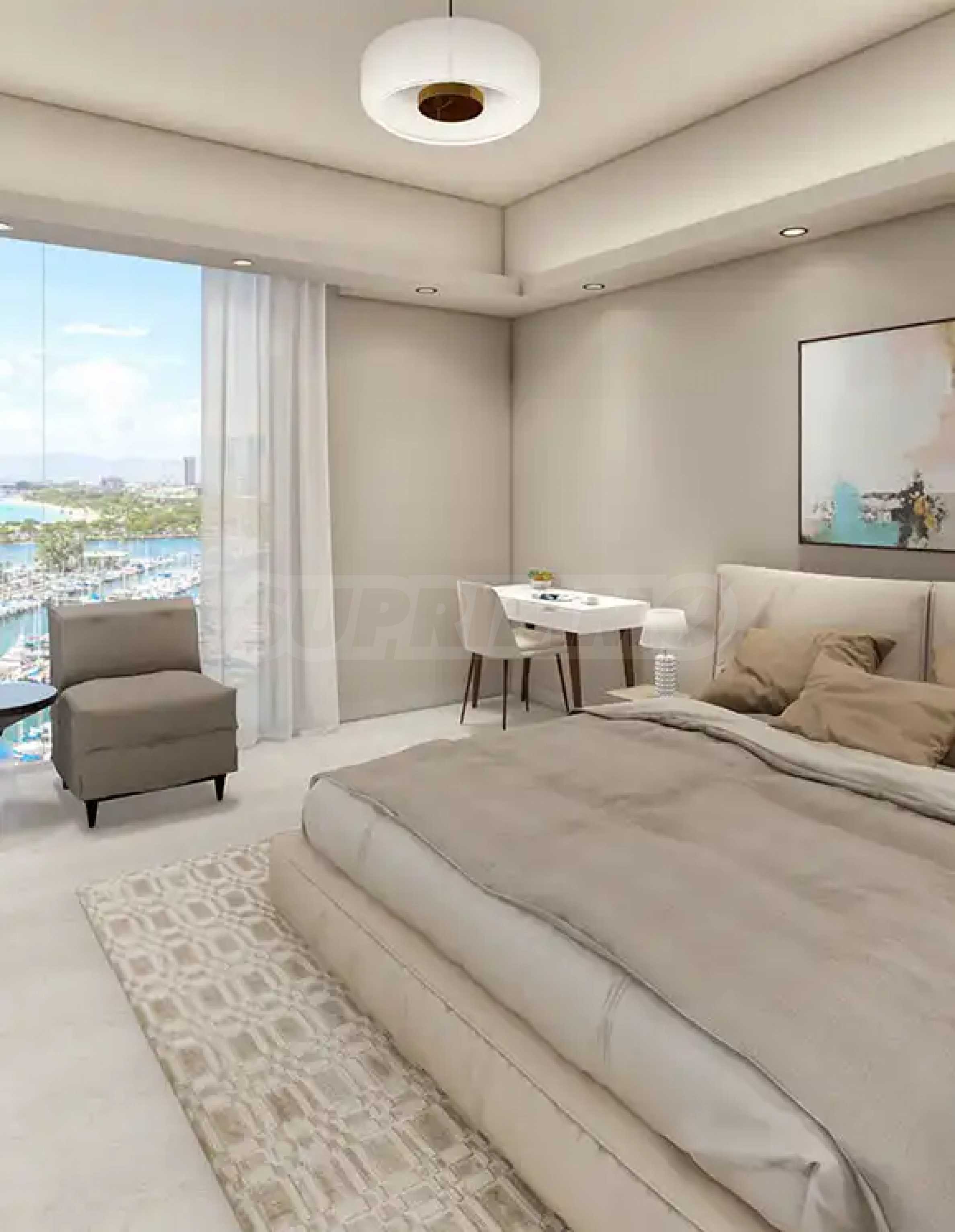 In den Ajman Creek Towers finden Sie stilvolle Apartments mit einem, zwei oder drei Schlafzimmern, deren Grundrisse mit viel Liebe zum Detail und optimaler Funktionalität gestaltet wurden. Alle Wohnungen werden schlüsselfertig angeboten und verfügen über hochwertige Fußböden, elegante Eingangs- und Innentüren, modern eingerichtete Küchen und voll ausgestattete Badezimmer. Die Küchen verfügen über maßgefertigte dunkle Holzschränke, die sich harmonisch in den Raum einfügen und die Ästhetik des Interieurs unterstreichen. Die Badezimmer sind als wahre Spa-Oasen konzipiert, mit geräumigen Räumen und hochwertigen Waschbecken und Duschen. Einige der Apartments bieten zudem großzügige Terrassen, die zum Entspannen mit Aussicht einladen.