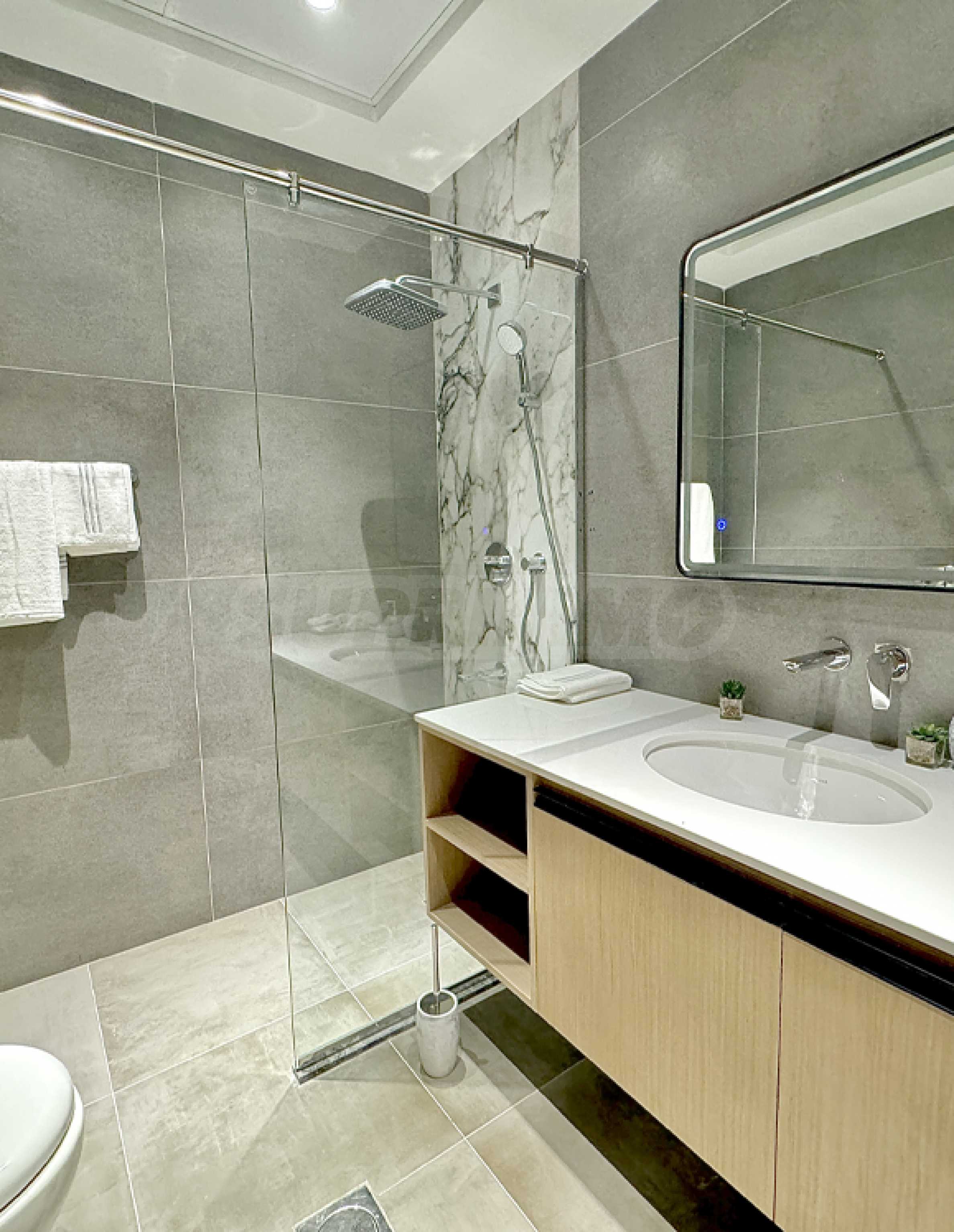 Der Komplex verfügt über Swimmingpools für Erwachsene und Kinder, die Entspannung, Unterhaltung und Wasserspiele für die ganze Familie bieten. Der atemberaubende Infinity-Pool rundet die luxuriöse Atmosphäre ab und vermittelt das Gefühl, über der Stadt zu schweben.