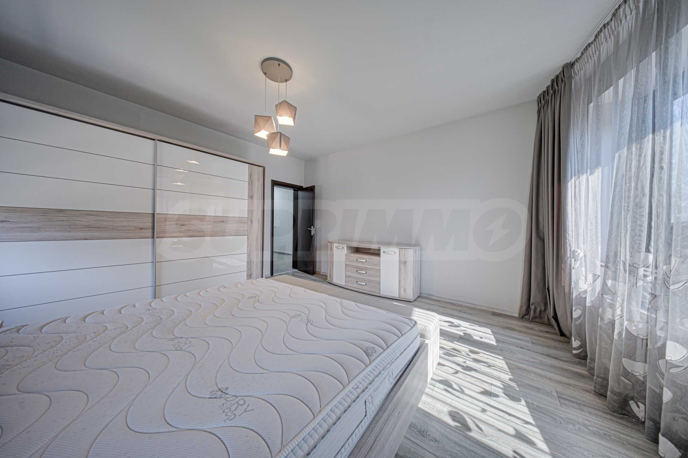 Wir bieten eine helle Vierzimmerwohnung zur Miete an. Die Wohnung befindet sich im ersten Stock (über dem Erdgeschoss) eines luxuriösen und sehr gepflegten Wohnhauses im Stadtteil Dragalevtsi. Das Gebäude verfügt über eine Rezeption und einen 24-Stunden-Zugangskontrollservice.