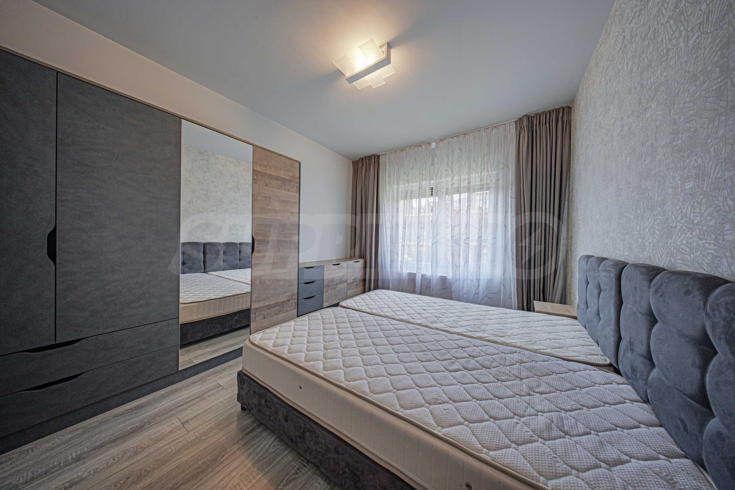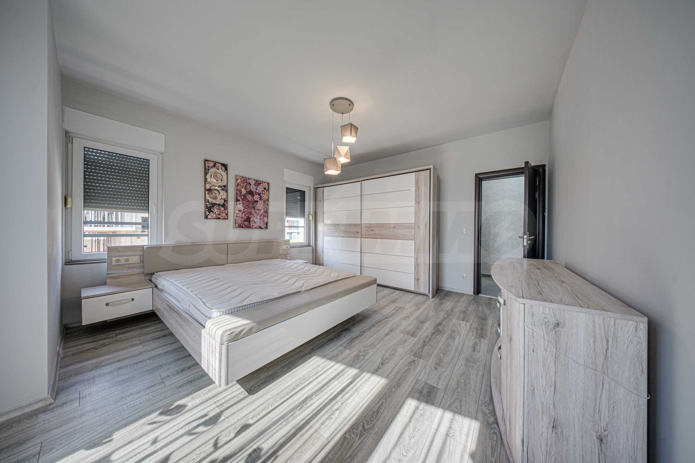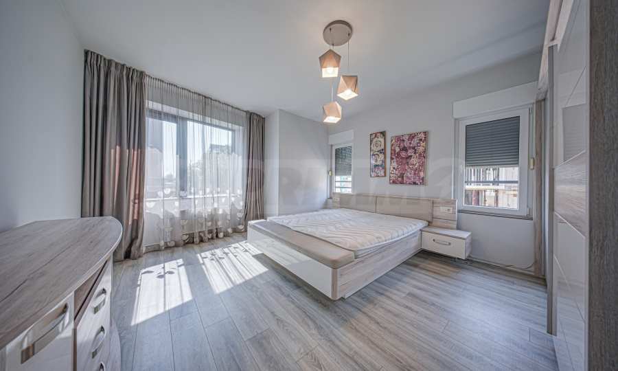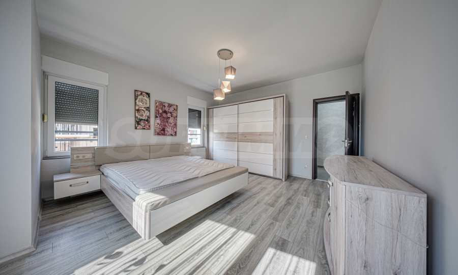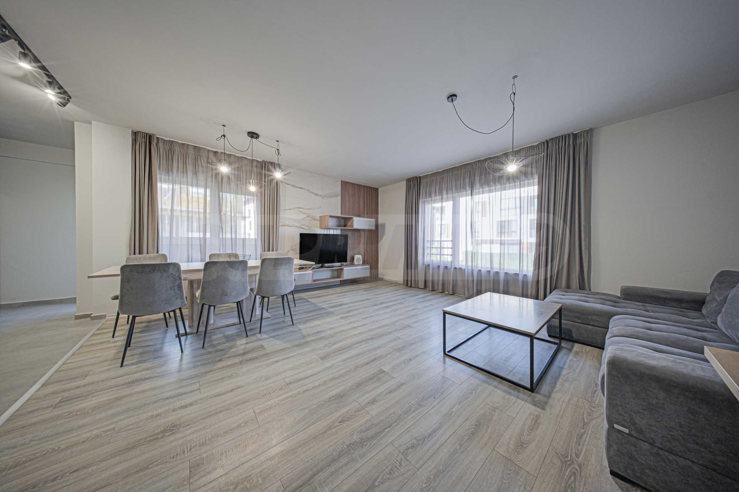 Wir bieten eine helle Vierzimmerwohnung zur Miete an. Die Wohnung befindet sich im ersten Stock (über dem Erdgeschoss) eines luxuriösen und sehr gepflegten Wohnhauses im Stadtteil Dragalevtsi. Das Gebäude verfügt über eine Rezeption und einen 24-Stunden-Zugangskontrollservice.