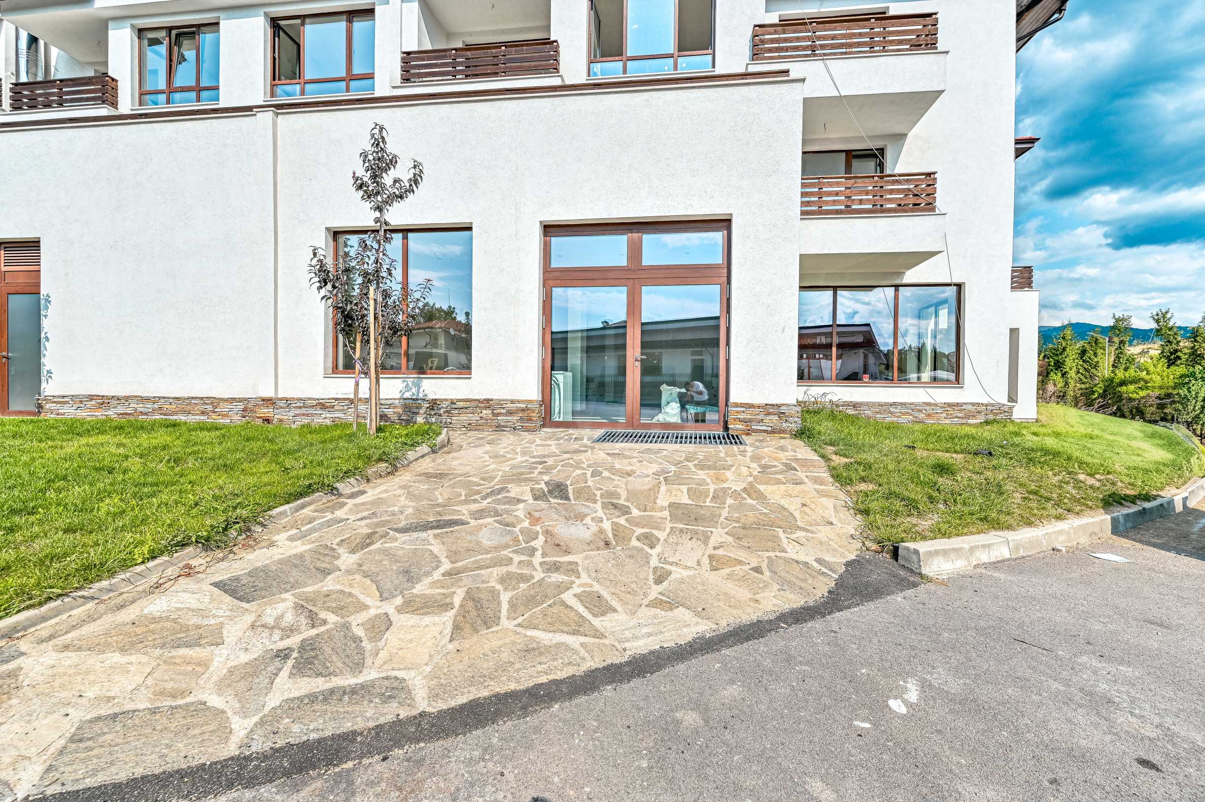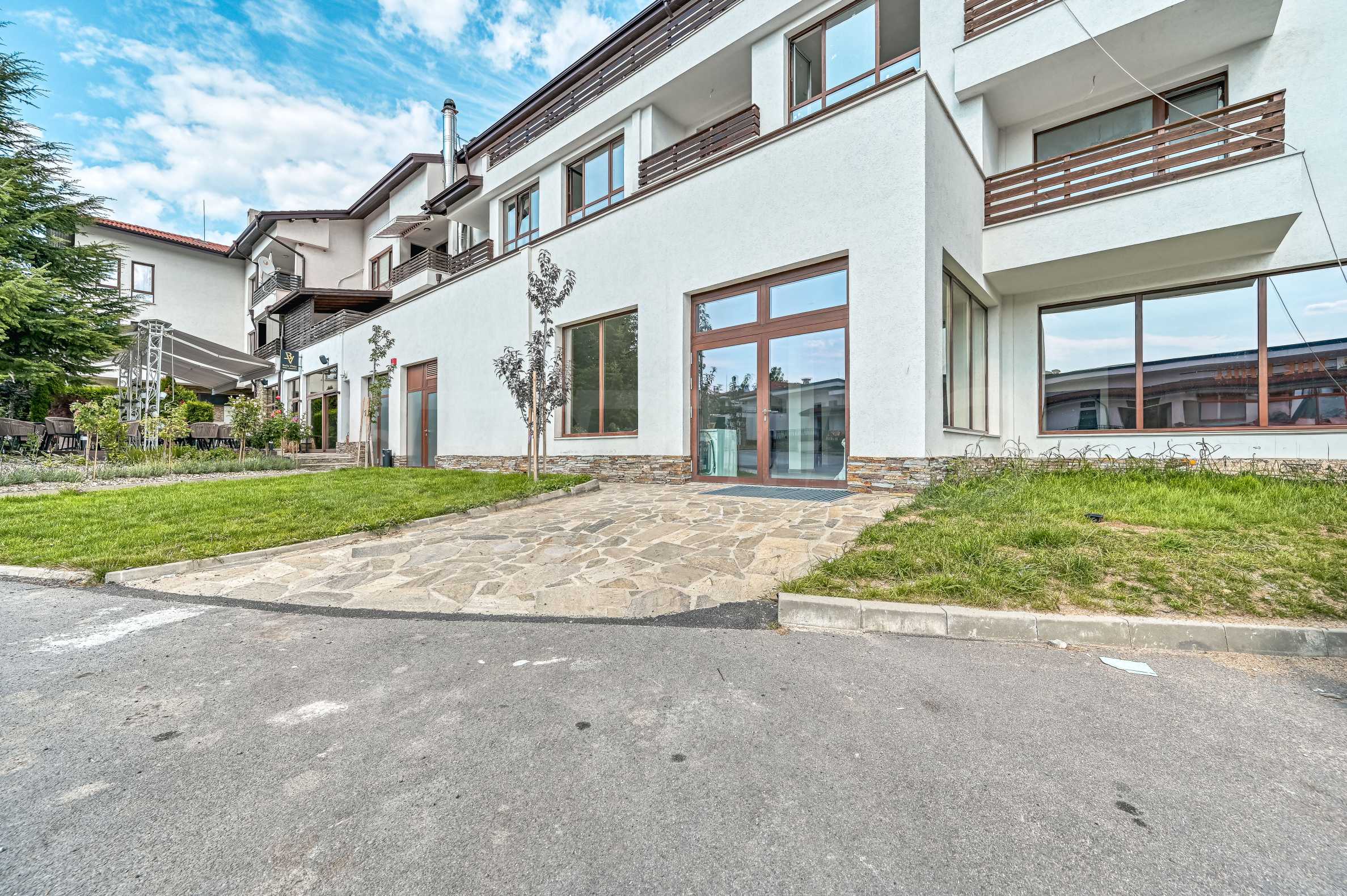 Hauptparameter: Der Komplex ist ein geschlossener Komplex und liegt etwa 20 Autominuten von Sofia entfernt. Die Entfernung zum oberen Zentrum der Hauptstadt (der Präsidentschaft) beträgt 25 km. Die Lage des Komplexes ist äußerst günstig, da er sich auf der Südseite des Vitosha-Gebirges befindet, was das ganze Jahr über maximale Sonneneinstrahlung garantiert.
