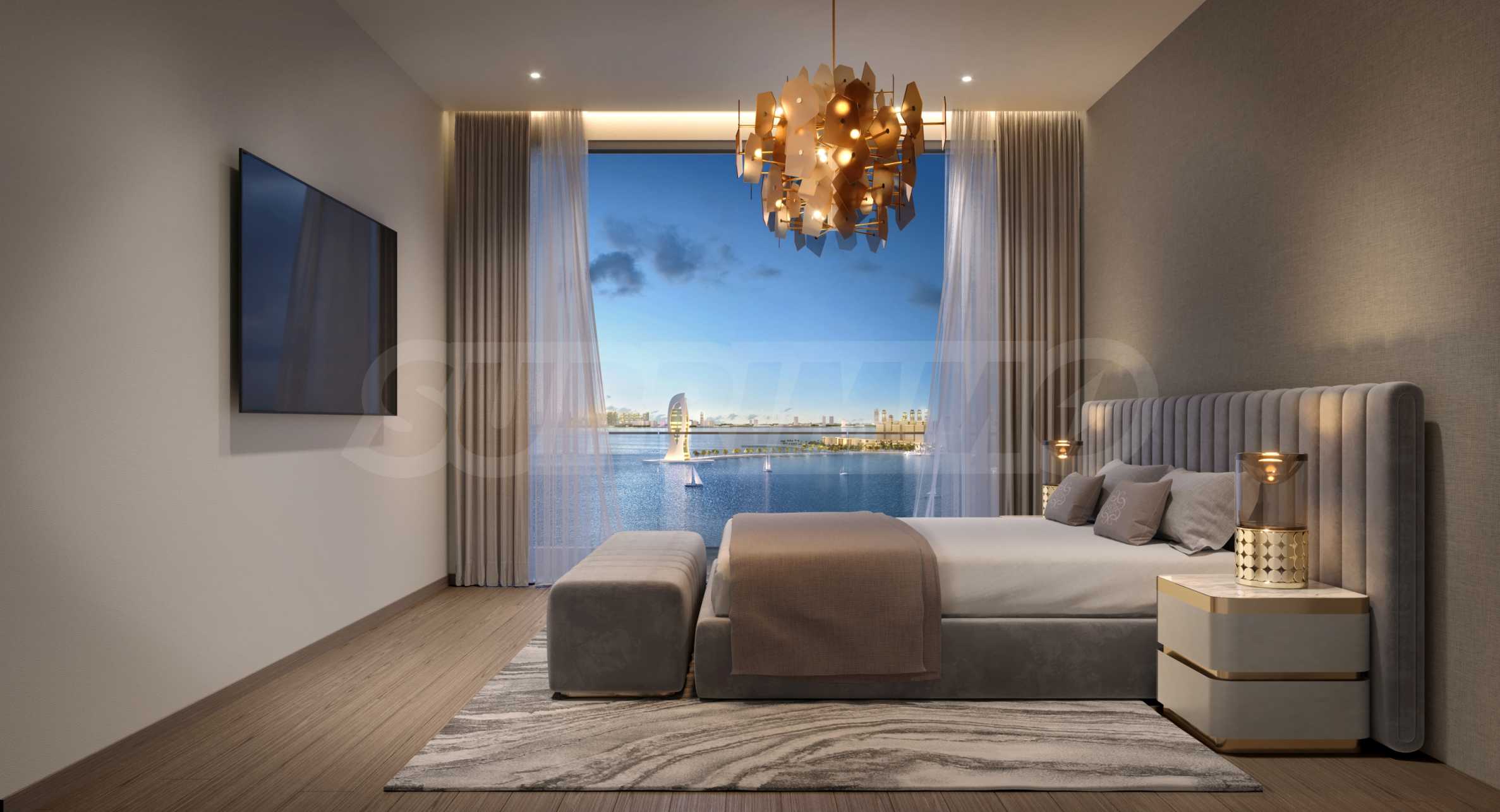 Der Komplex besteht aus vier Gebäuden entlang der Küste der Insel. Die fünfstöckigen Gebäude zeichnen sich durch moderne Architektur aus, die geometrische Formen, klare Linien und elegante Kurven vereint und so Dynamik und Leichtigkeit verleiht. Die geräumigen Apartments sind dank der bodentiefen Panoramafenster lichtdurchflutet und bieten einen herrlichen Meerblick, der das Gefühl von Freiheit unterstreicht.