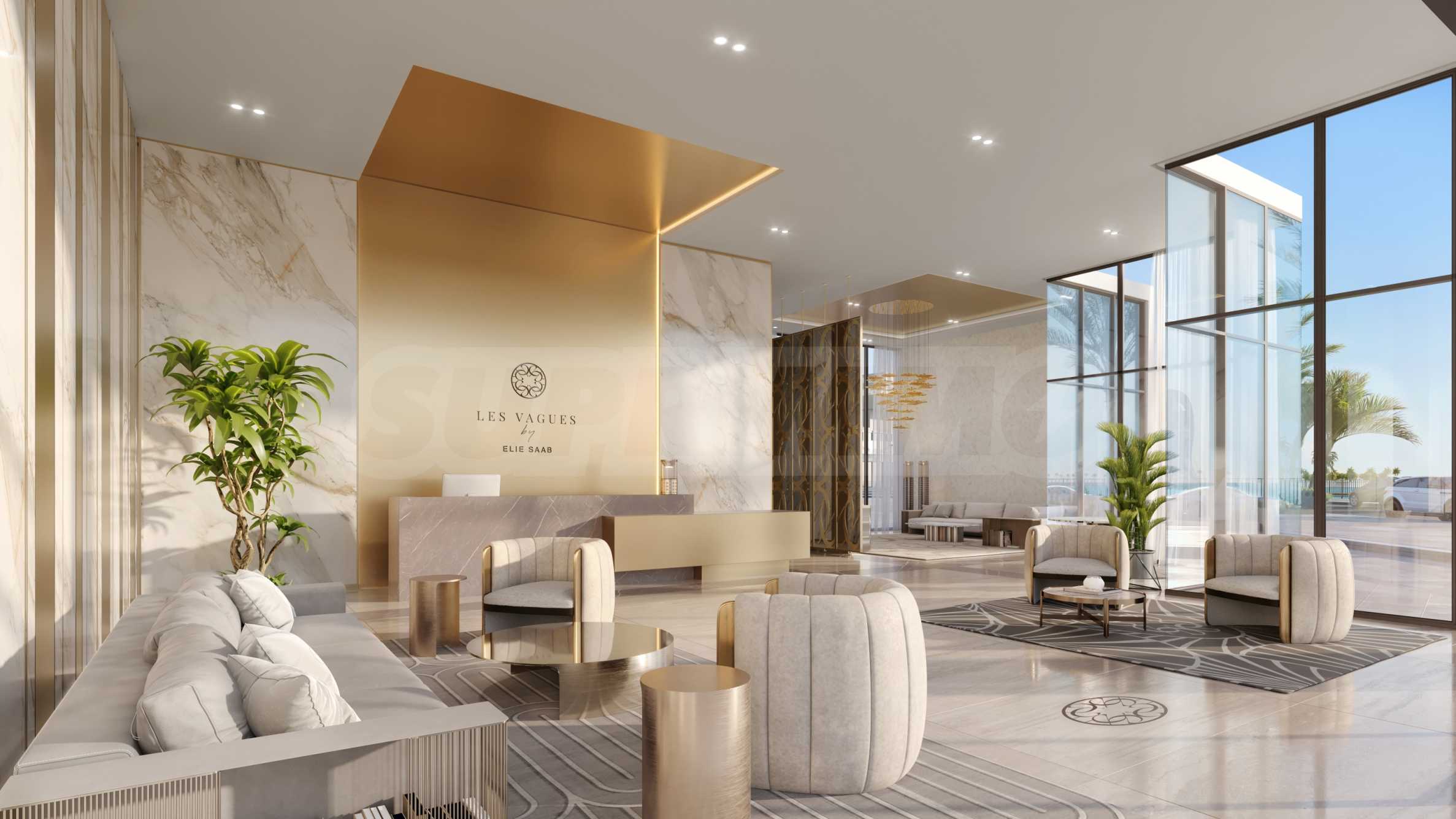 Die Lobbys beeindrucken mit hohen Decken, großen Fenstern und einem von Elie Saab persönlich ausgewählten Interieur – eine harmonische Kombination aus hellen Tönen, natürlichen Materialien, Marmor und dezenten Metallelementen. Den Bewohnern stehen eine 24-Stunden-Rezeption und personalisierte À-la-carte-Services zur Verfügung, die den Alltag erleichtern.
