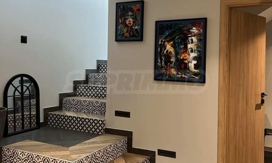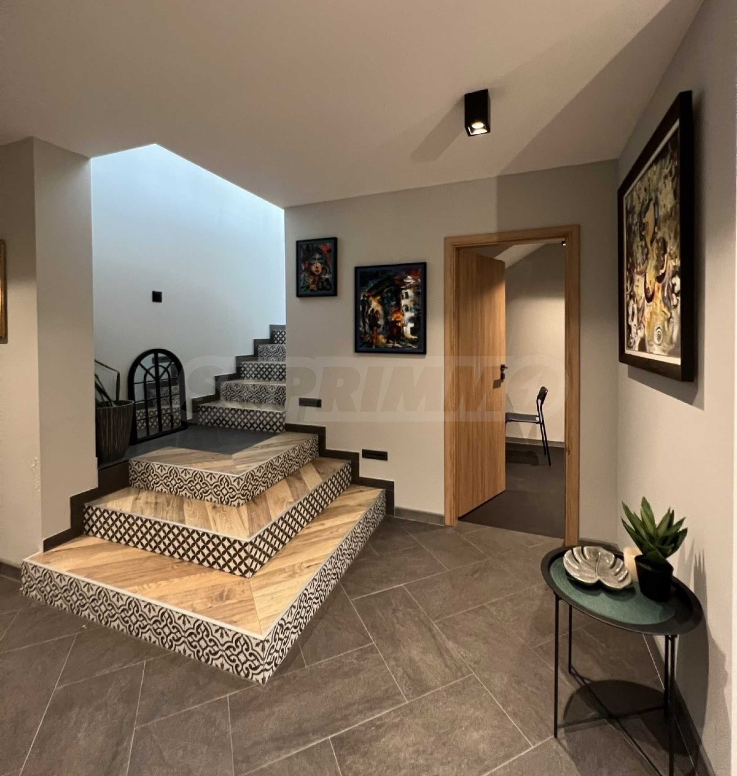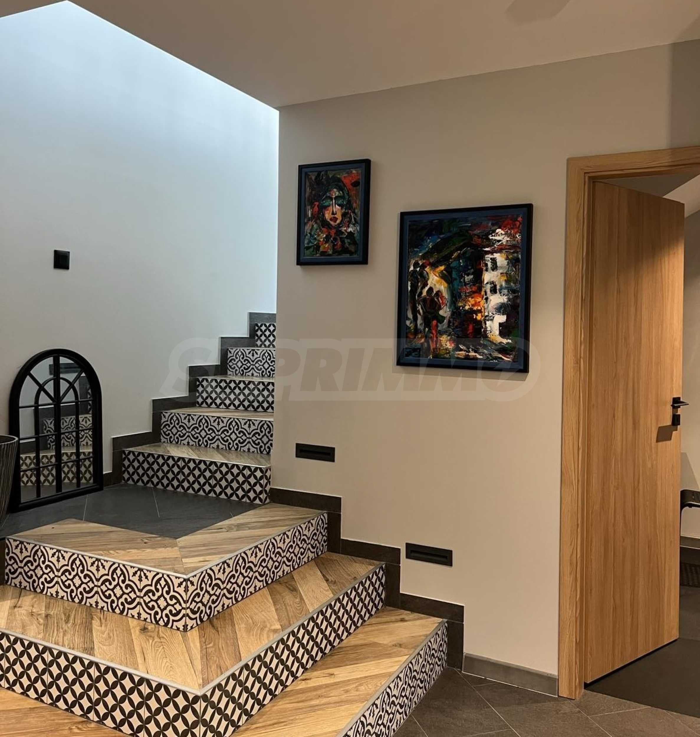 • Holzähnlicher Granitboden, Treppe mit schmiedeeisernem Geländer, PVC-Fenster.