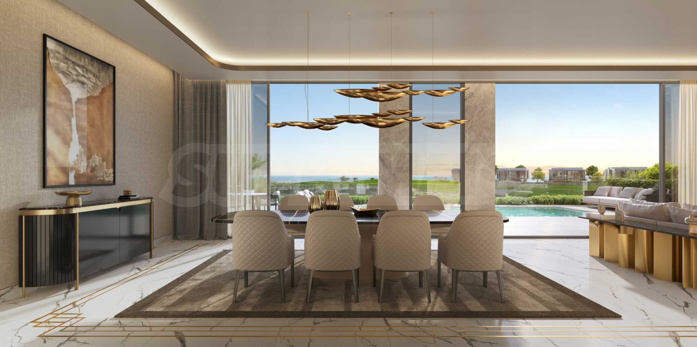 Die Immobilien dieser Auswahl erstrecken sich über beeindruckende 405,7 m². Jedes Detail wurde mit Präzision und Liebe zum Detail gestaltet, um maximalen Komfort und ein exklusives Erlebnis zu gewährleisten. Schon beim Betreten der Immobilie spüren Sie die luxuriöse Atmosphäre – die Fassade beeindruckt mit klaren Linien, sanften Farbtönen und Panoramafenstern, die den Innenraum mit natürlichem Licht durchfluten.