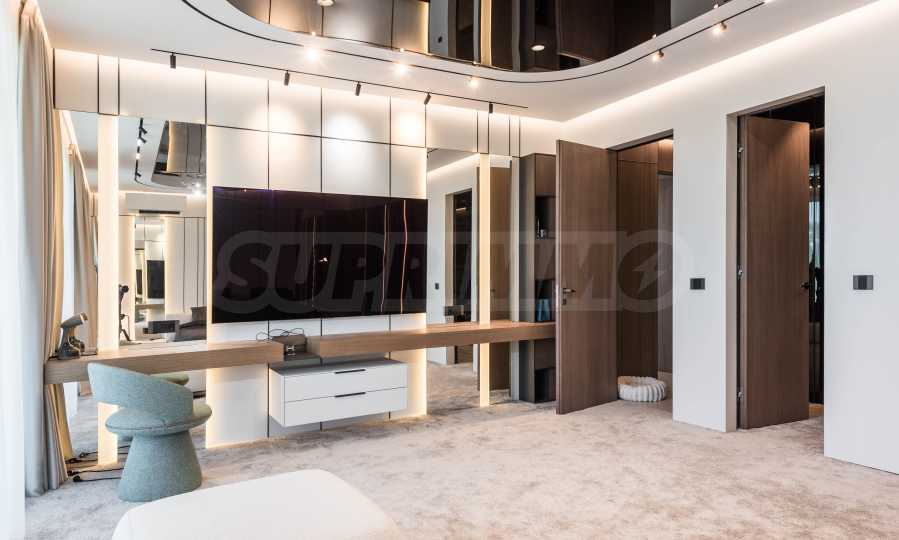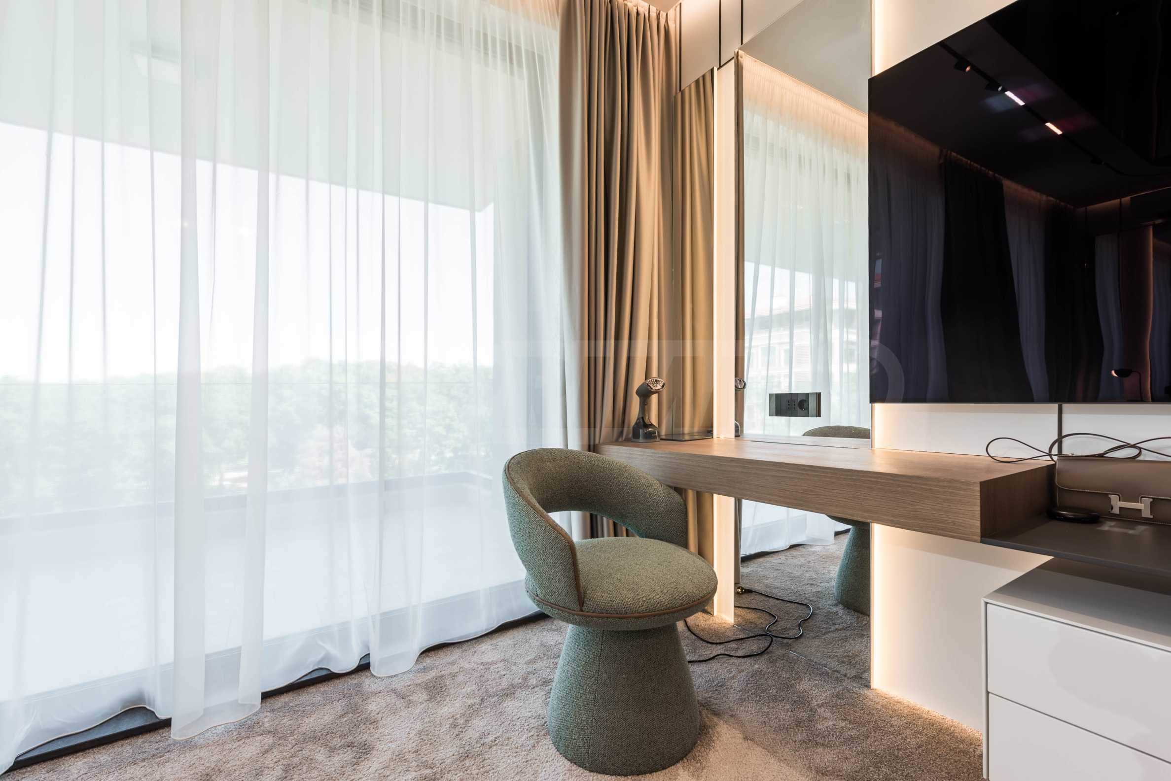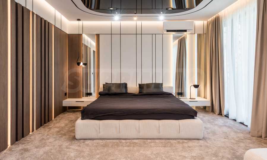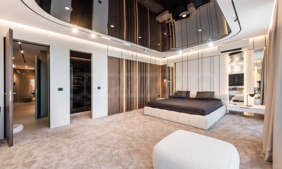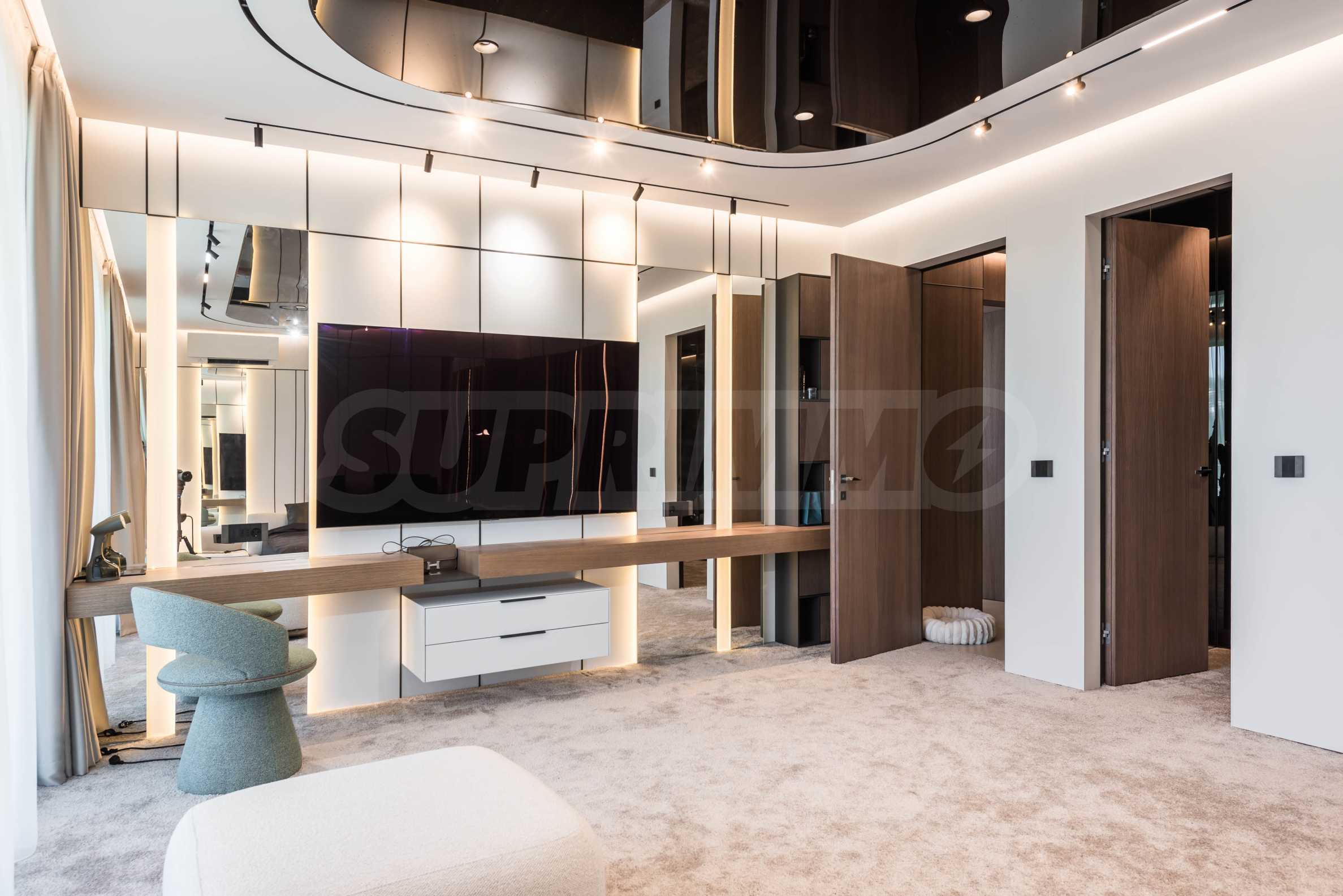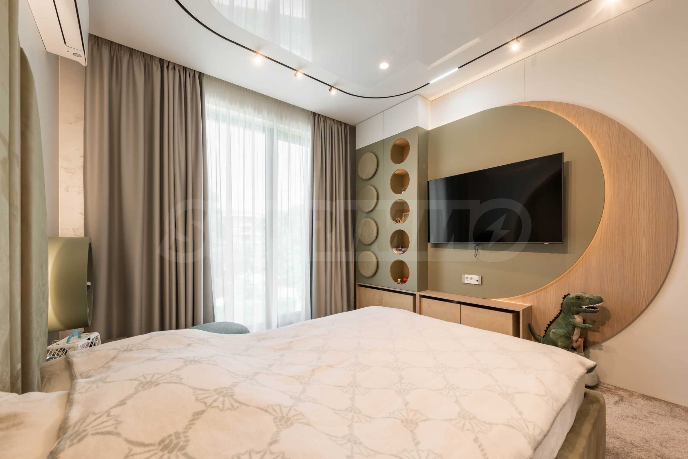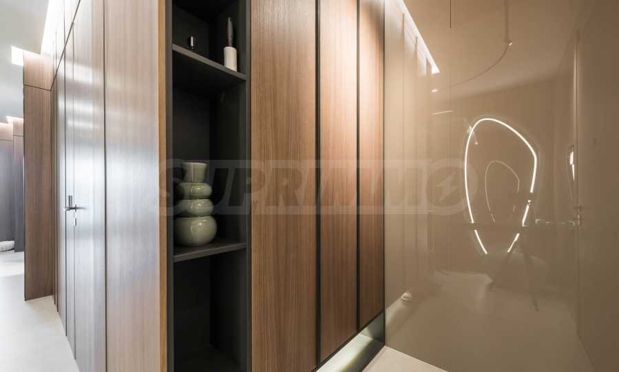 Das Innere der Immobilie strahlt moderne Eleganz und außergewöhnliche Liebe zum Detail aus. Das Apartment ist nach einem Designerprojekt luxuriös mit maßgefertigten italienischen Möbeln und hochwertigen Miele-Geräten eingerichtet. Im Wohnbereich beeindrucken ausgewählte Möbel mit organischen Formen – bequeme Sofas und Sessel, kombiniert mit niedrigen Tischen und einem stilvollen TV-Modul. Der Raum ist in sanften Erdtönen gestaltet und Akzente werden durch attraktive moderne Decken mit zeitgenössischer Beleuchtung gesetzt – eingebaute, lineare und Designer-Pendelleuchten, die die Bereiche hervorheben und der Immobilie Charakter verleihen. Die Schlafzimmer folgen dem gleichen Konzept – Erdtöne, Akzentbeleuchtung und Designerlösungen, die Komfort und Stil vereinen. Die Atmosphäre ist so durchdacht, dass sie Luxus und gleichzeitig Ruhe vermittelt.