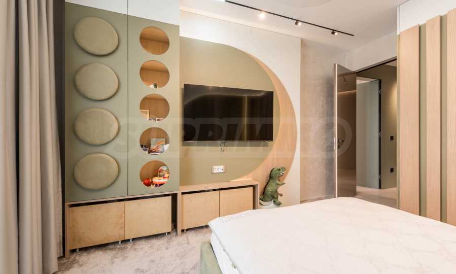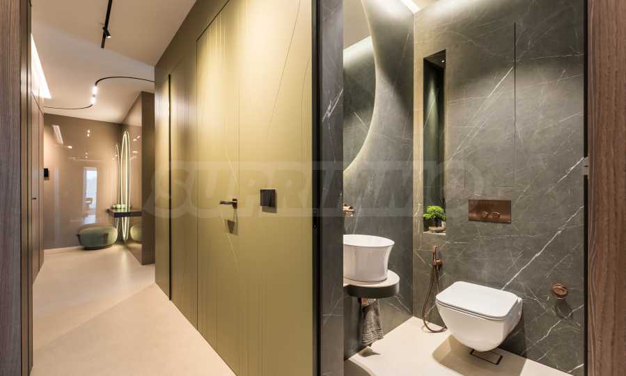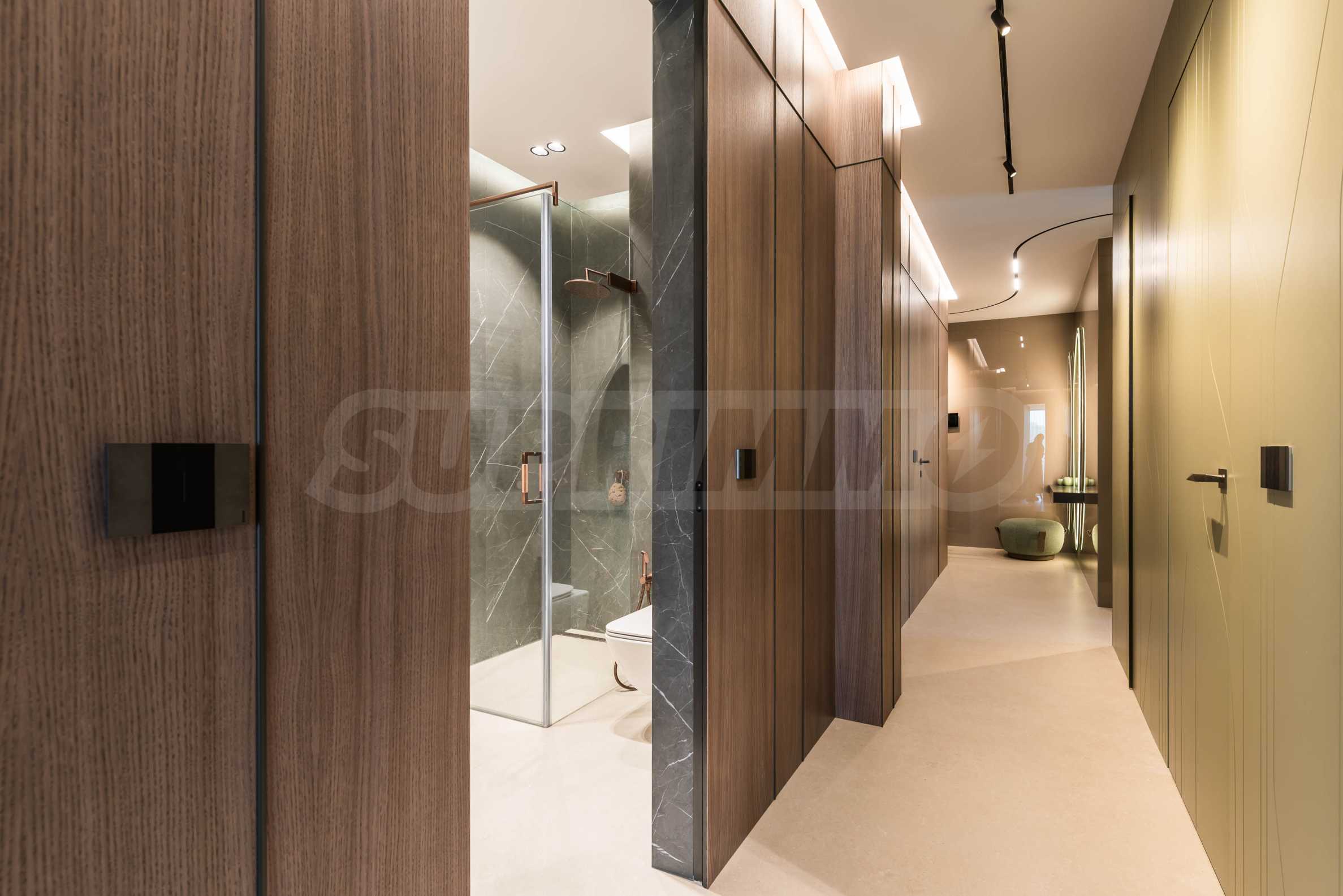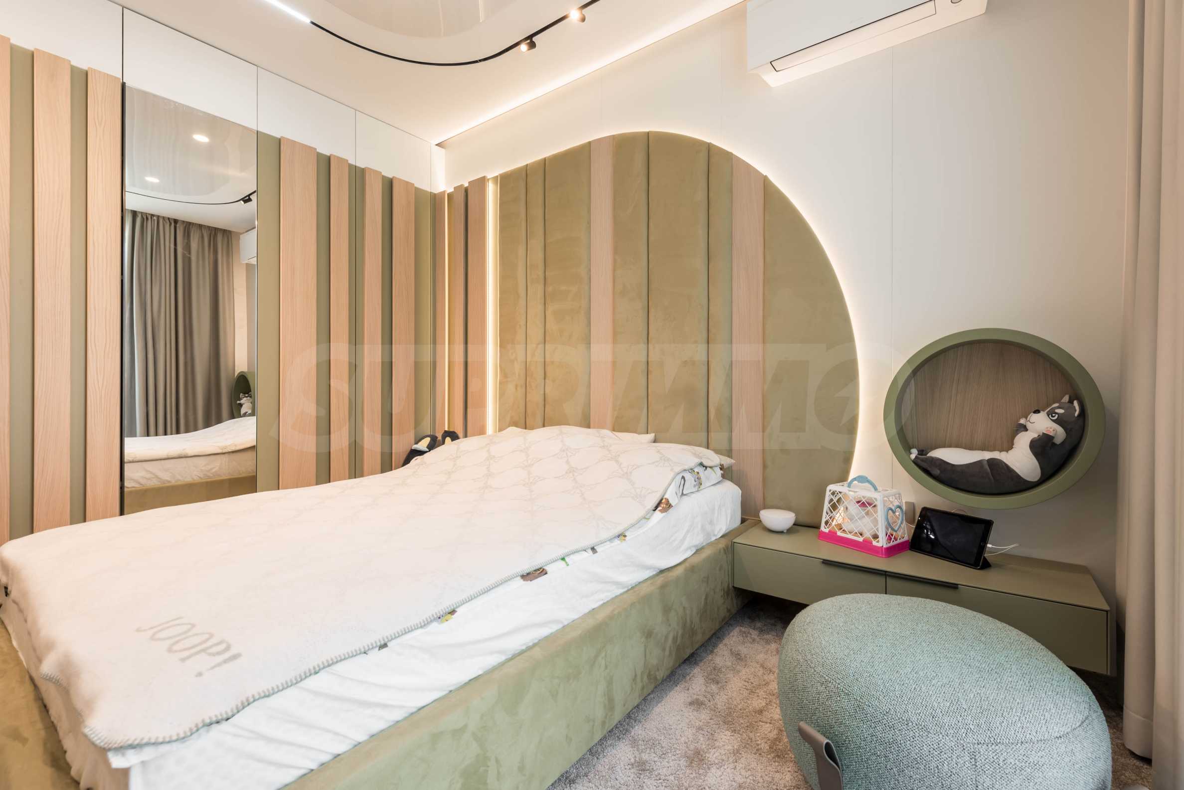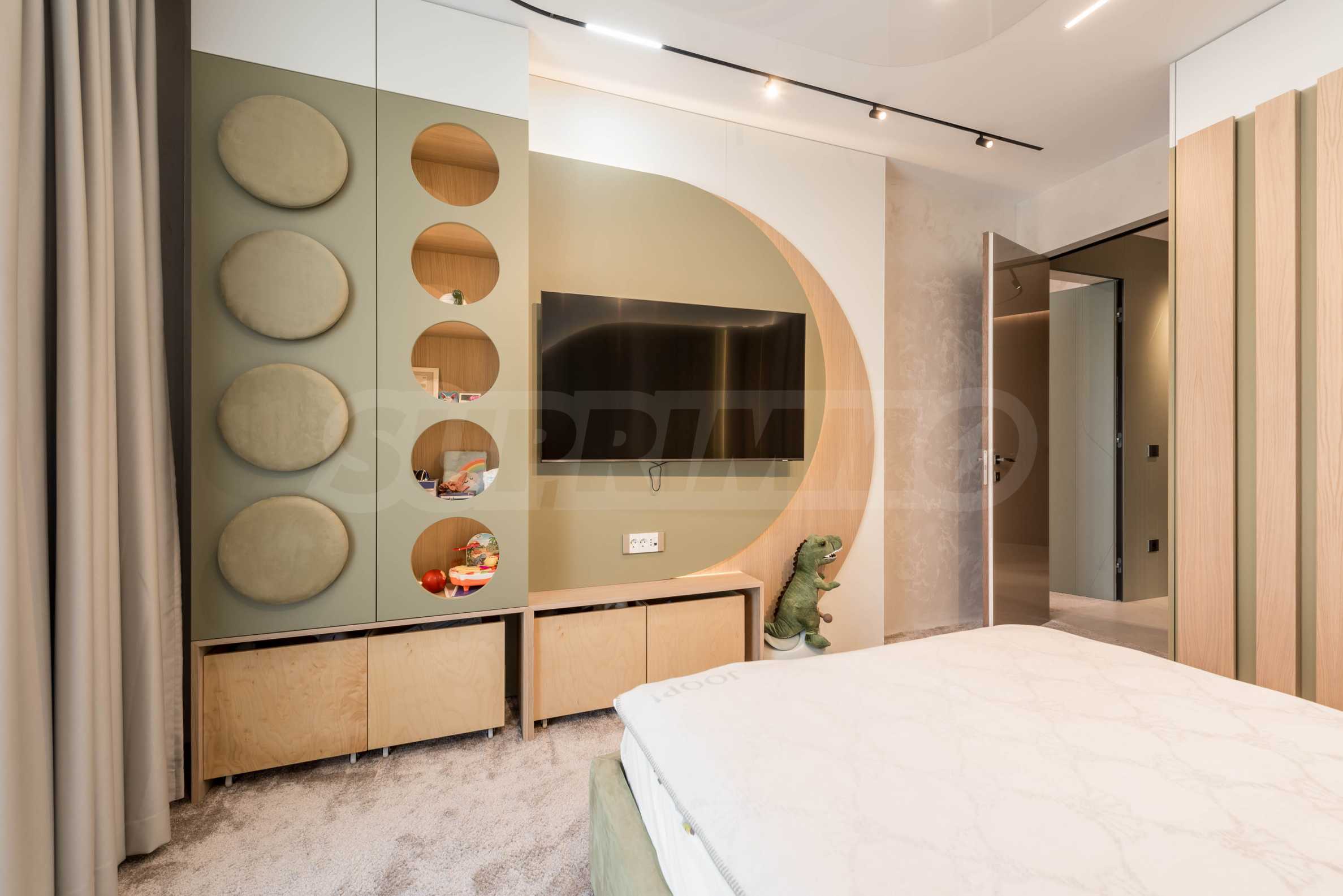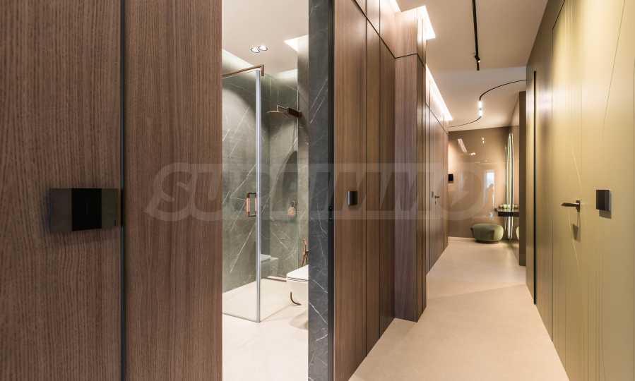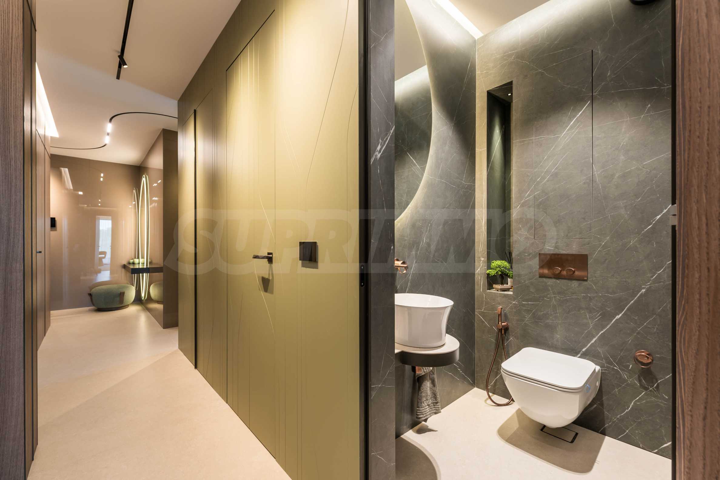 Das Innere der Immobilie strahlt moderne Eleganz und außergewöhnliche Liebe zum Detail aus. Das Apartment ist nach einem Designerprojekt luxuriös mit maßgefertigten italienischen Möbeln und hochwertigen Miele-Geräten eingerichtet. Im Wohnbereich beeindrucken ausgewählte Möbel mit organischen Formen – bequeme Sofas und Sessel, kombiniert mit niedrigen Tischen und einem stilvollen TV-Modul. Der Raum ist in sanften Erdtönen gestaltet und Akzente werden durch attraktive moderne Decken mit zeitgenössischer Beleuchtung gesetzt – eingebaute, lineare und Designer-Pendelleuchten, die die Bereiche hervorheben und der Immobilie Charakter verleihen. Die Schlafzimmer folgen dem gleichen Konzept – Erdtöne, Akzentbeleuchtung und Designerlösungen, die Komfort und Stil vereinen. Die Atmosphäre ist so durchdacht, dass sie Luxus und gleichzeitig Ruhe vermittelt.