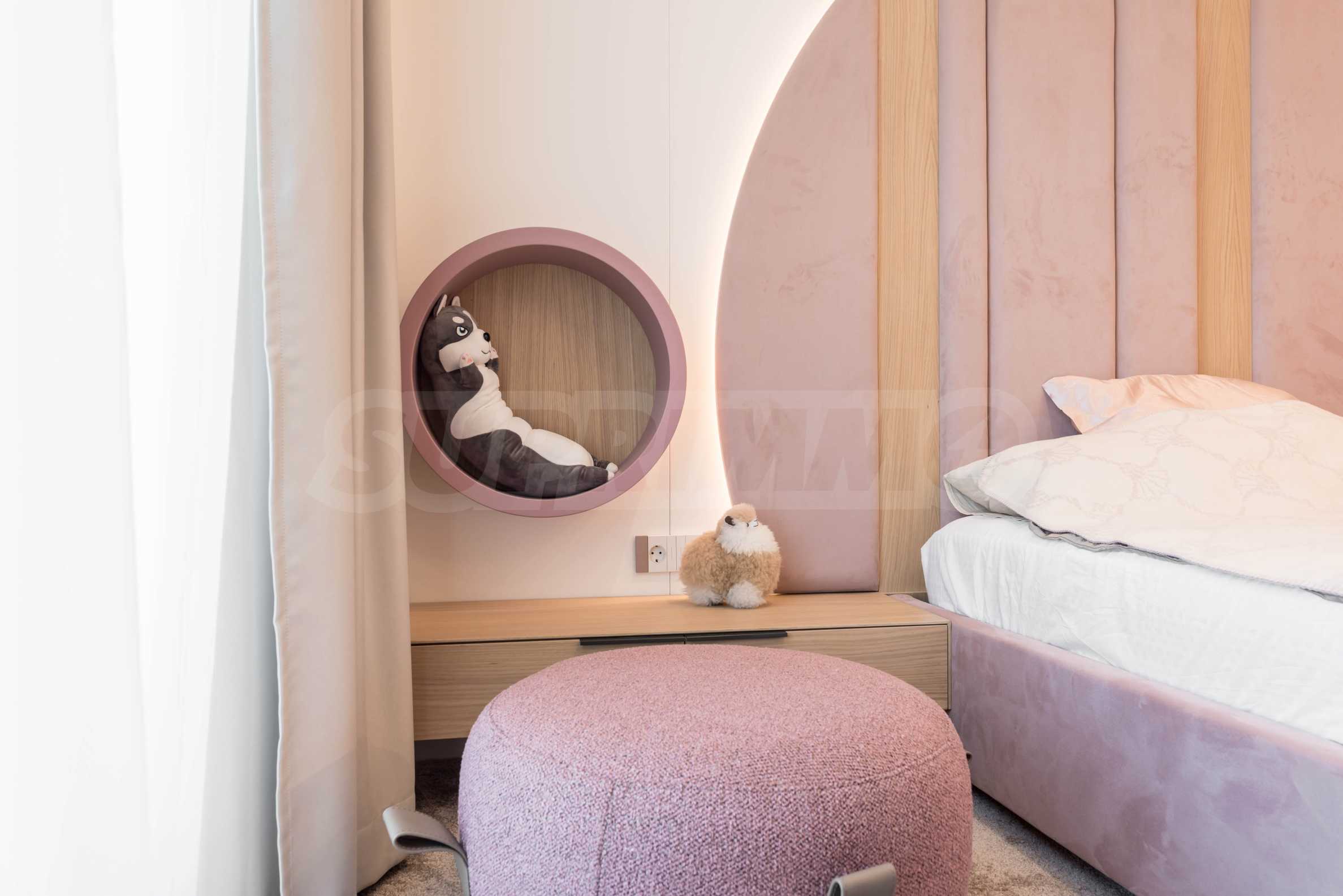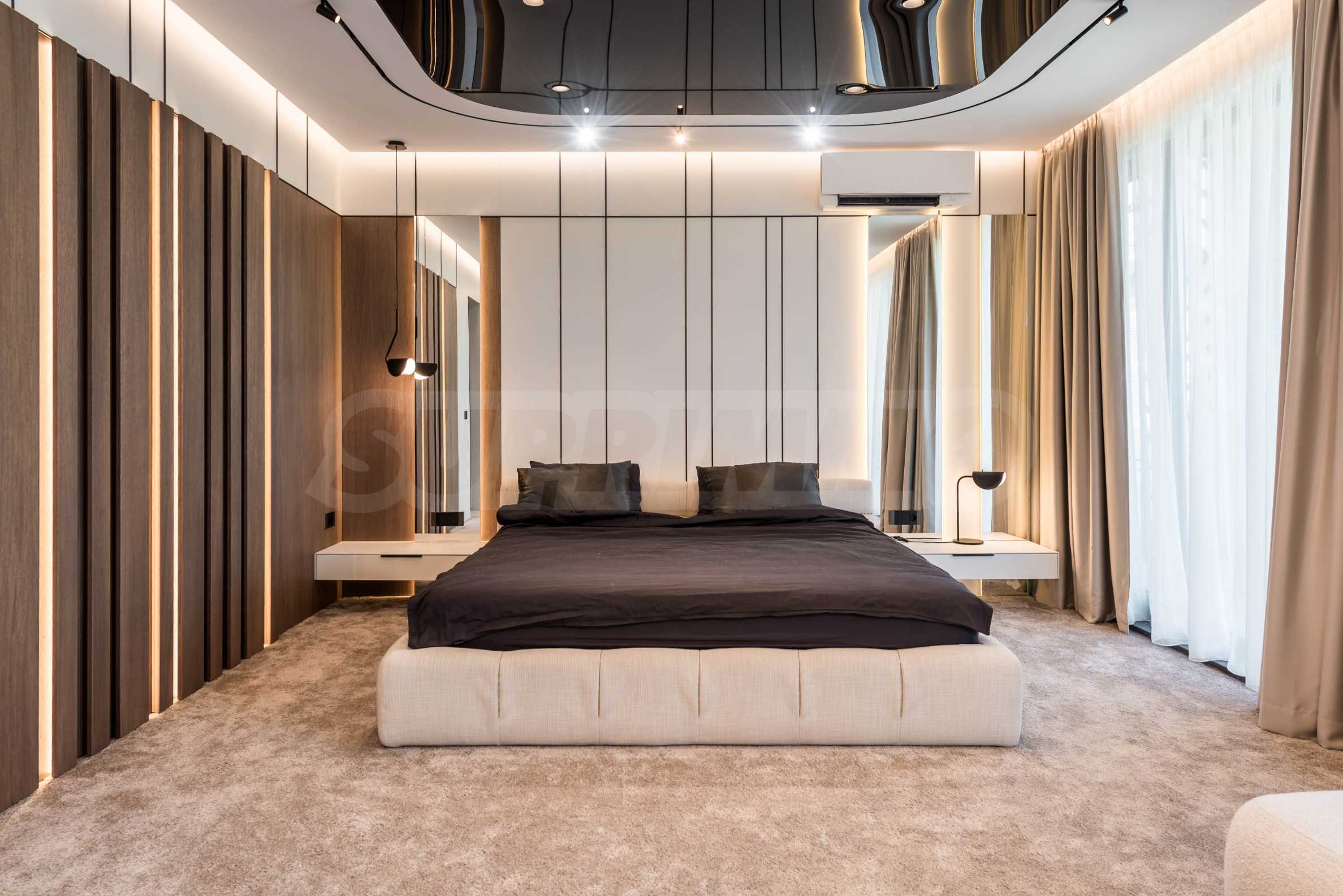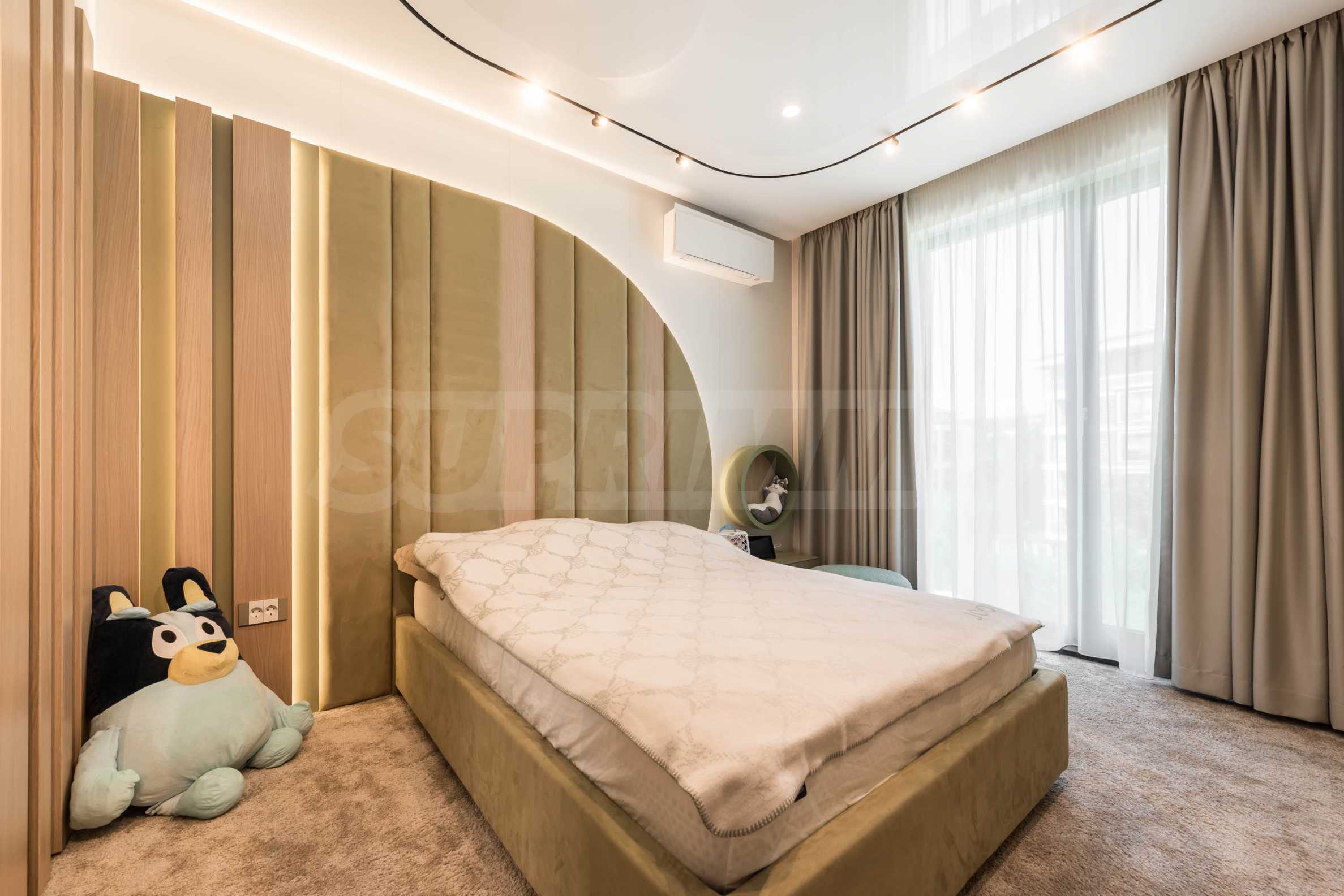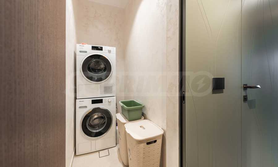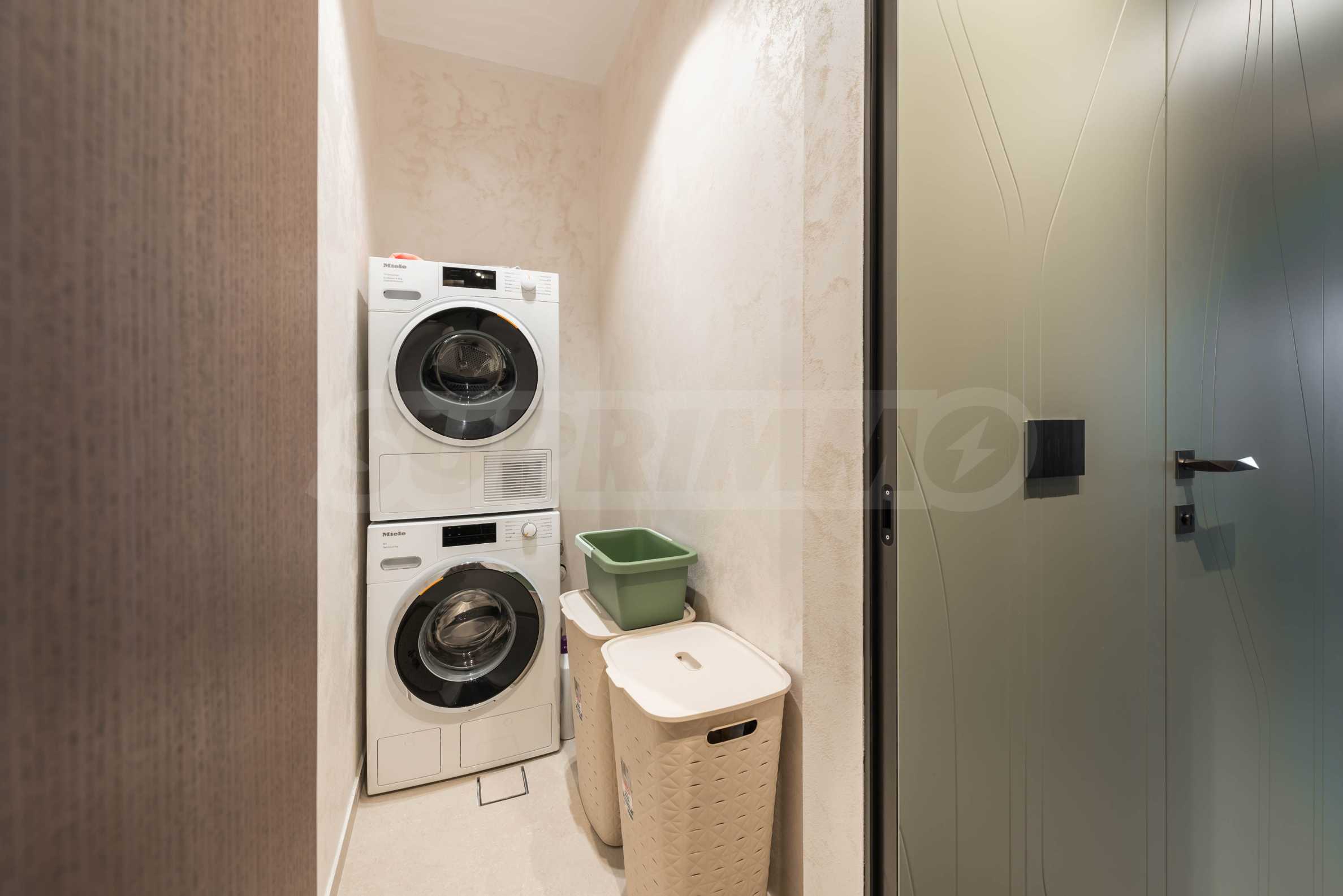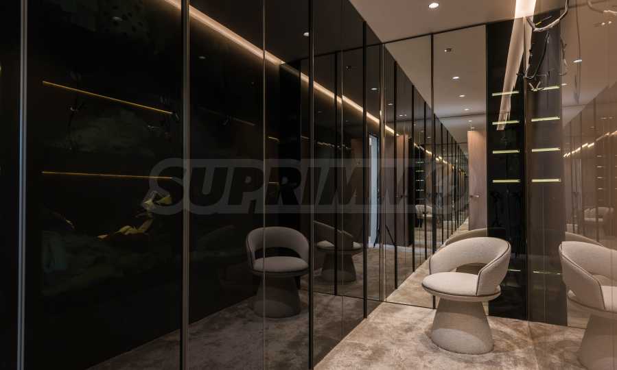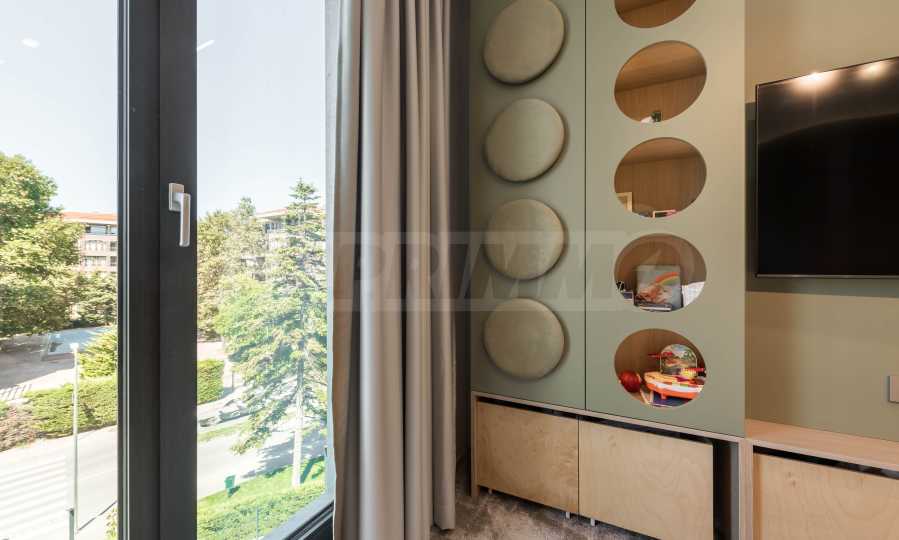 Das Innere der Immobilie strahlt moderne Eleganz und außergewöhnliche Liebe zum Detail aus. Das Apartment ist nach einem Designerprojekt luxuriös mit maßgefertigten italienischen Möbeln und hochwertigen Miele-Geräten eingerichtet. Im Wohnbereich beeindrucken ausgewählte Möbel mit organischen Formen – bequeme Sofas und Sessel, kombiniert mit niedrigen Tischen und einem stilvollen TV-Modul. Der Raum ist in sanften Erdtönen gestaltet und Akzente werden durch attraktive moderne Decken mit zeitgenössischer Beleuchtung gesetzt – eingebaute, lineare und Designer-Pendelleuchten, die die Bereiche hervorheben und der Immobilie Charakter verleihen. Die Schlafzimmer folgen dem gleichen Konzept – Erdtöne, Akzentbeleuchtung und Designerlösungen, die Komfort und Stil vereinen. Die Atmosphäre ist so durchdacht, dass sie Luxus und gleichzeitig Ruhe vermittelt.