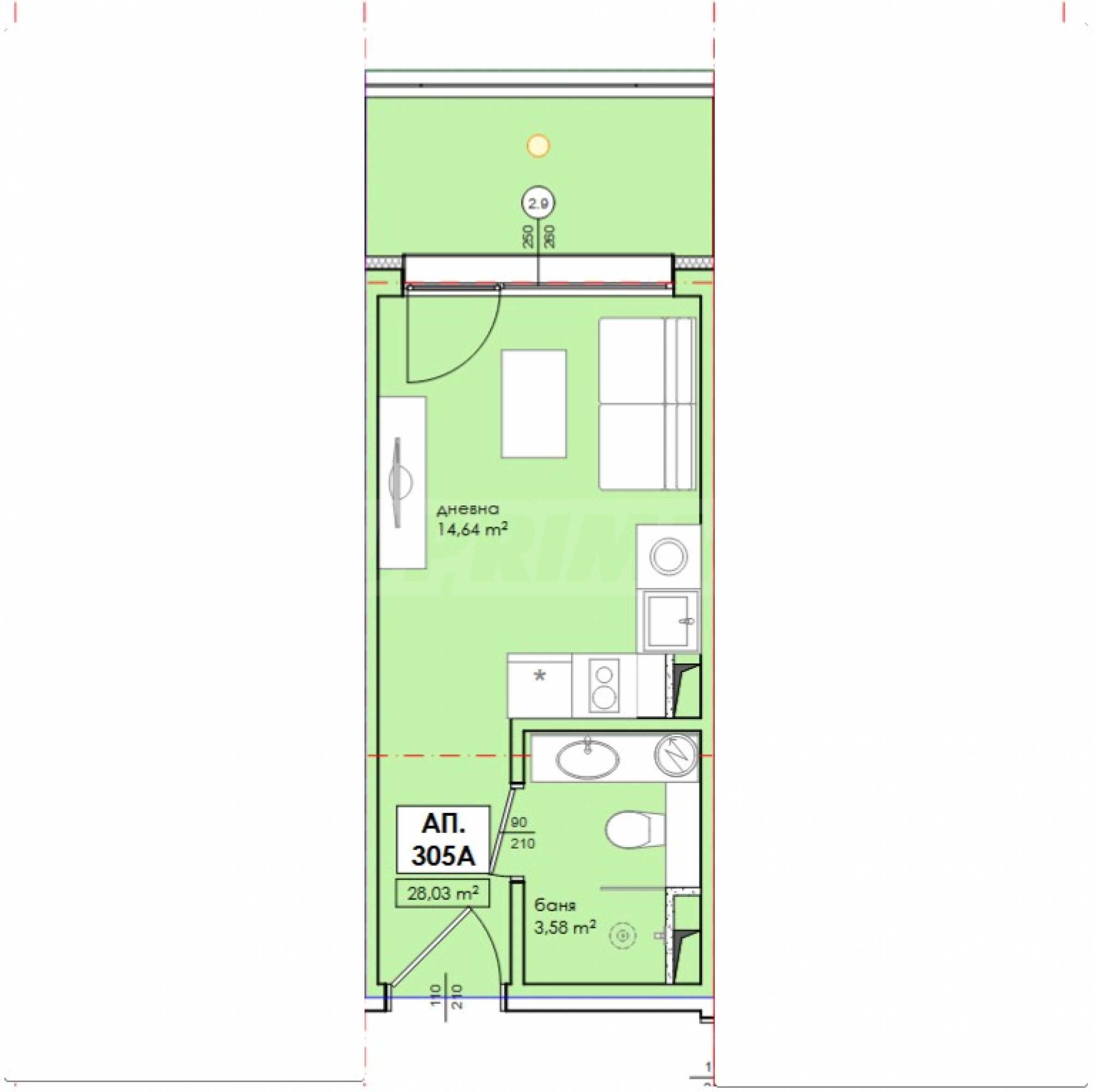 Wir bieten zum Verkauf ein Ein-Zimmer-Apartment mit einer Fläche von 32,13 m² an, das Teil eines neuen, modernen Wohnkomplexes in erster Reihe zum Südstrand von Nessebar ist.