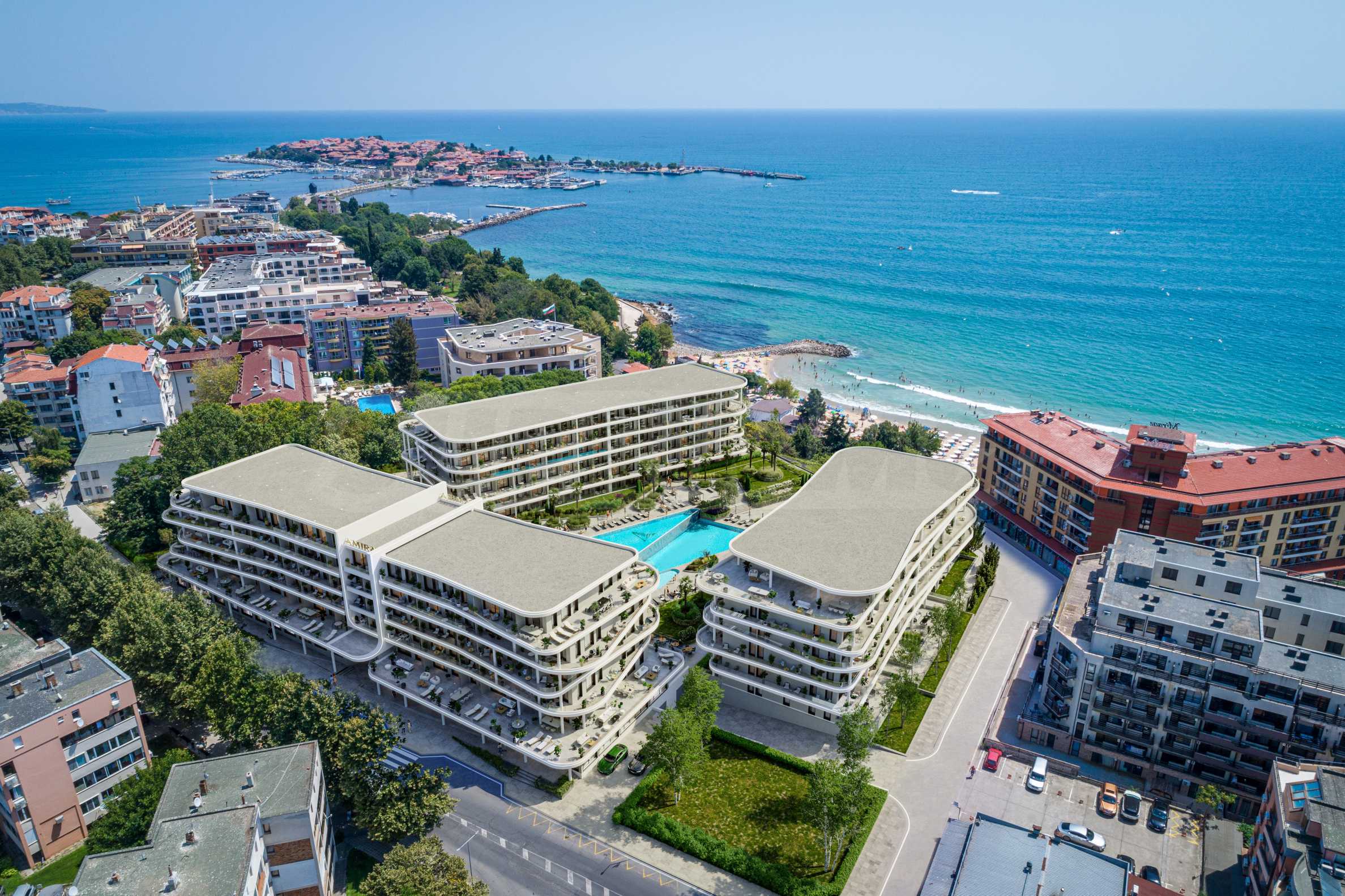 Der Komplex besticht durch seine moderne Architektur und großzügige Terrassen mit atemberaubender Aussicht. Alle Apartments bieten Panoramablick aufs Meer und sind nach höchsten Baustandards ausgestattet.