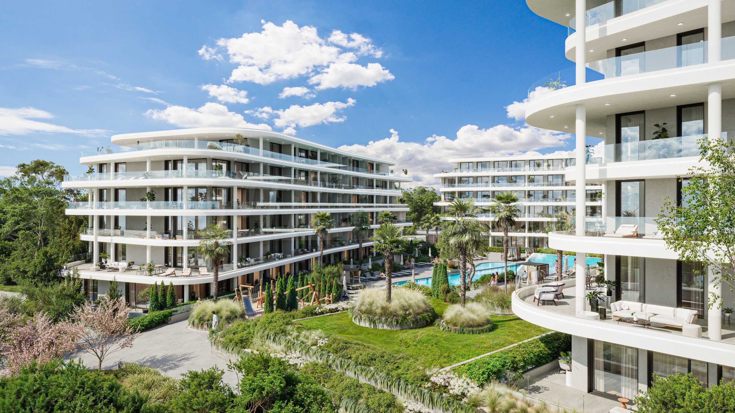 Der Komplex besticht durch seine moderne Architektur und großzügige Terrassen mit atemberaubender Aussicht. Alle Apartments bieten Panoramablick aufs Meer und sind nach höchsten Baustandards ausgestattet.
