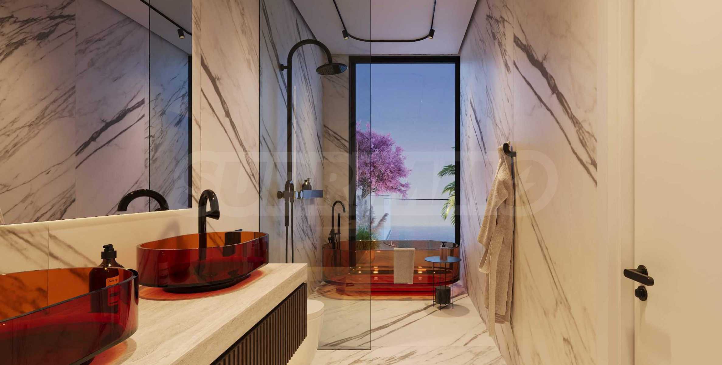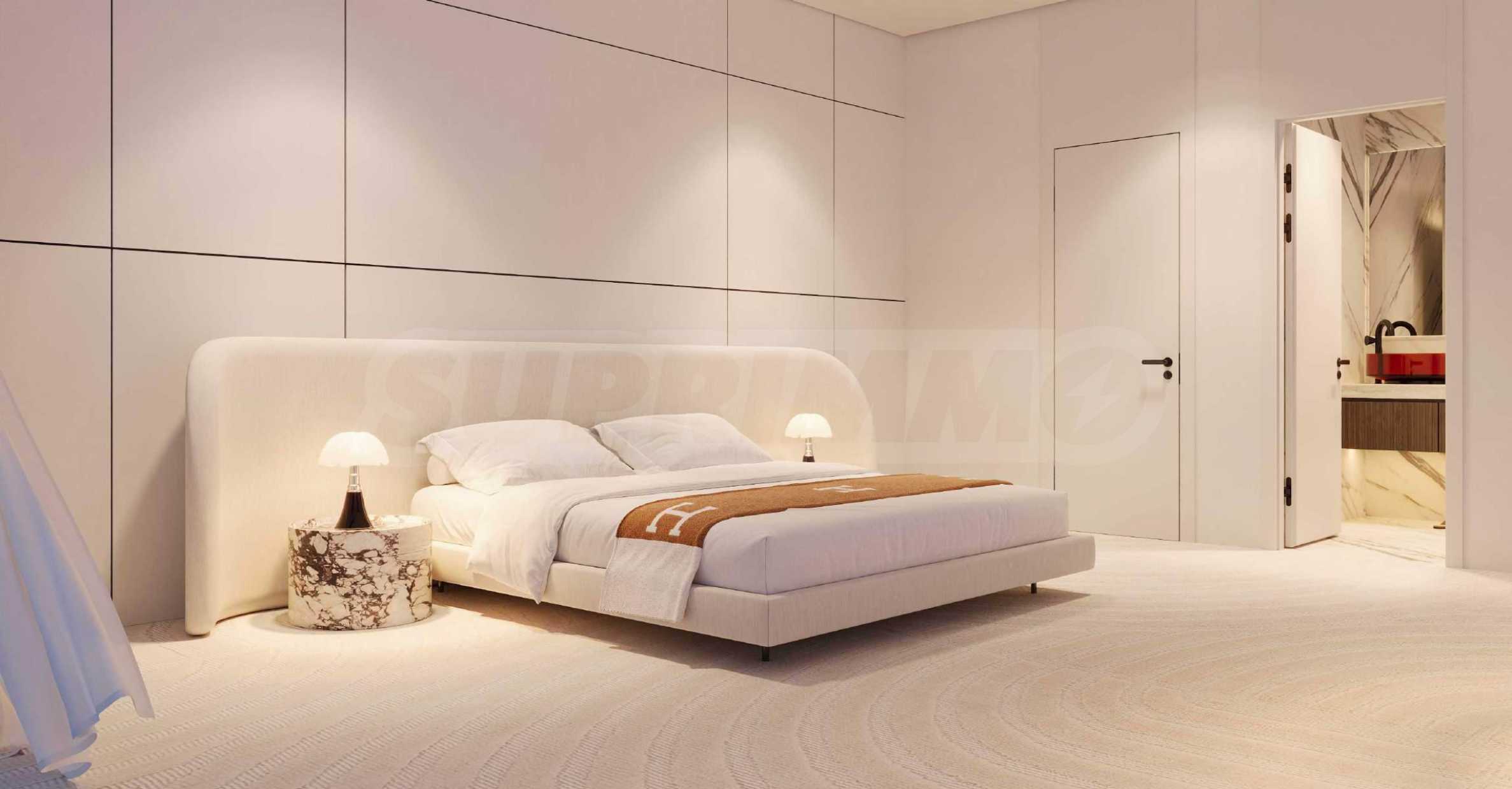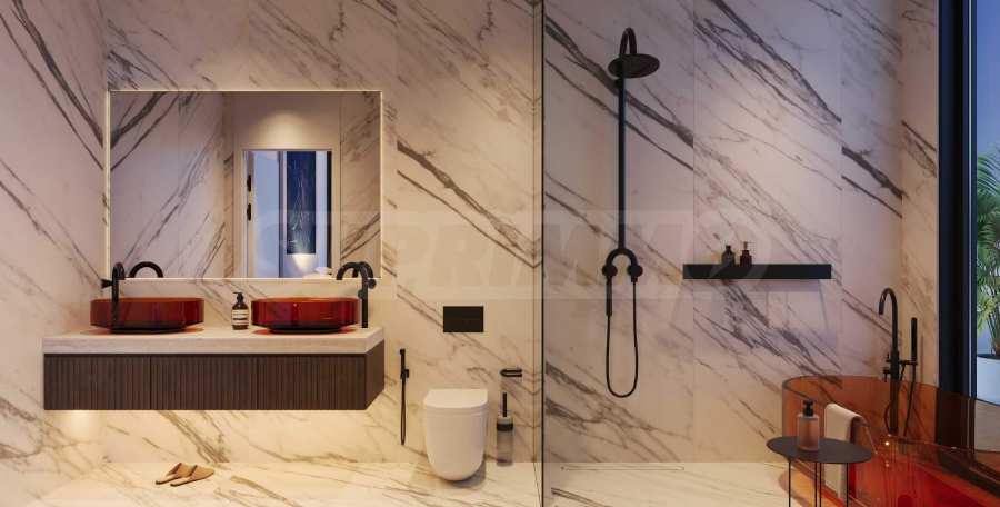 Die Badezimmer sind wie Tempel der Entspannung gestaltet. Der britische Designer Tim Bixon verleiht ihnen seine unverwechselbare Note – Interieurs, die Extravaganz mit purer Ästhetik verbinden und jeden Raum zu einem Ausdruck höchsten Komforts machen. Die Hauptschlafzimmer ergänzen das luxuriöse Ambiente mit begehbaren Kleiderschränken im italienischen Stil – Räume, die nicht nur als Stauraum dienen, sondern auch ein neues Zuhause für Ihre exquisite Kleidung und Accessoires bieten.