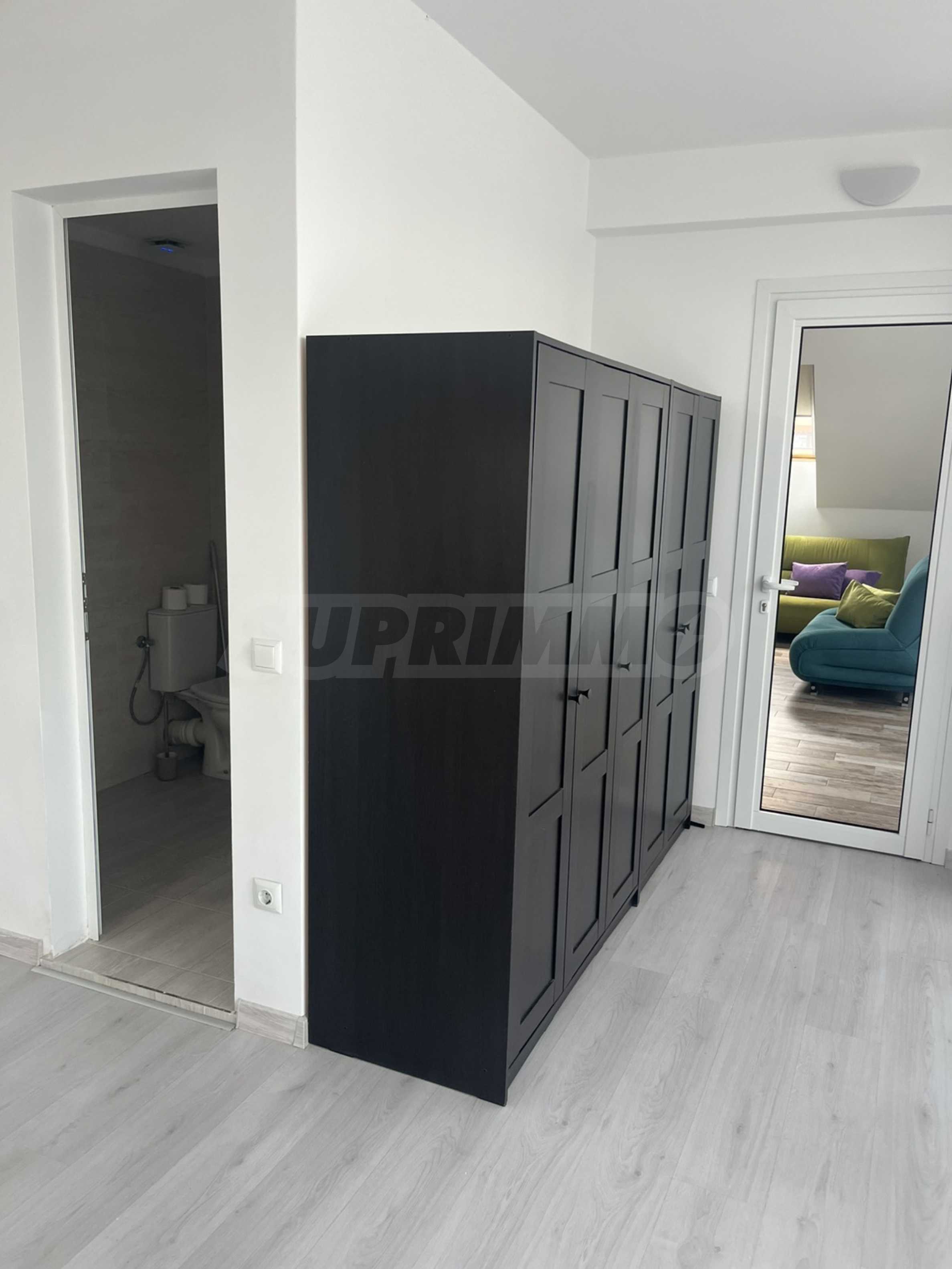 Die Wohnung befindet sich in einem Neubau aus dem Jahr 2022, in einer kleinen ruhigen Straße und mit schnellem Zugang zum Cherni Vrah Blvd.