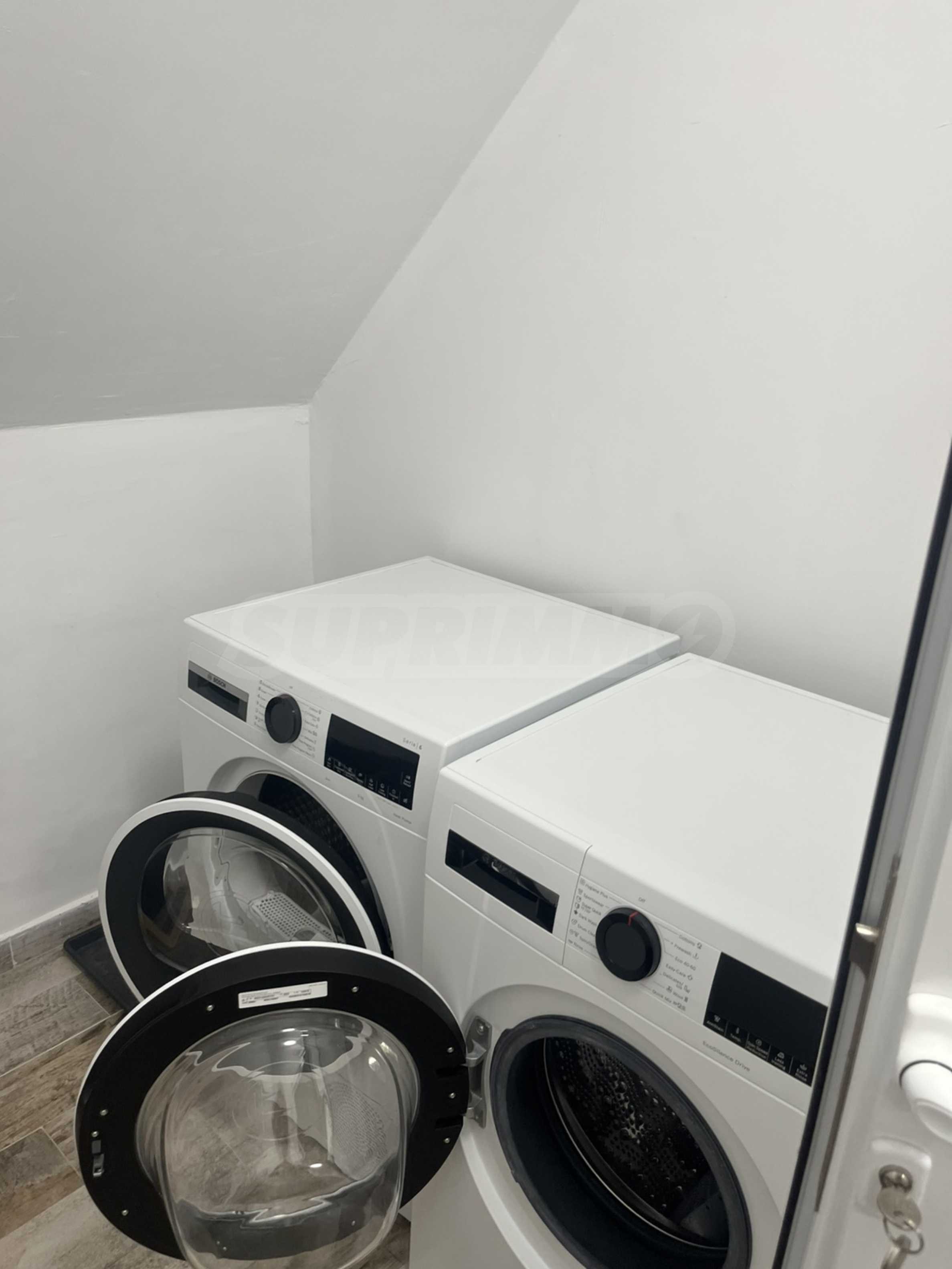 Die Wohnung ist gemütlich, modern und geräumig, verfügt über eine Daikin-Klimaanlage, Bosch-Geräte - Herd, Kochfeld, Dunstabzugshaube, Kühlschrank mit Gefrierfach, Waschmaschine und Trockner. Die Heizung ist Gas.