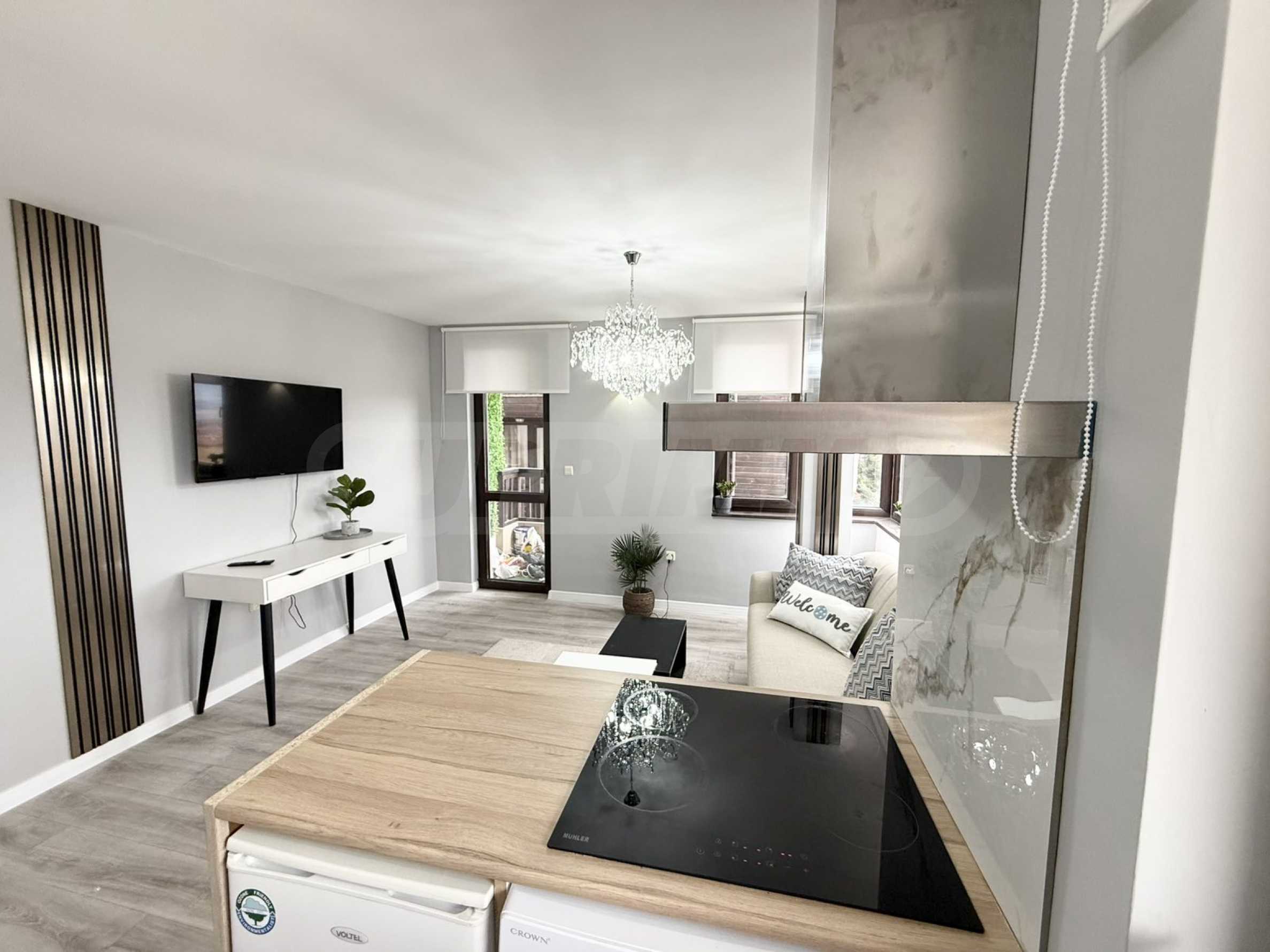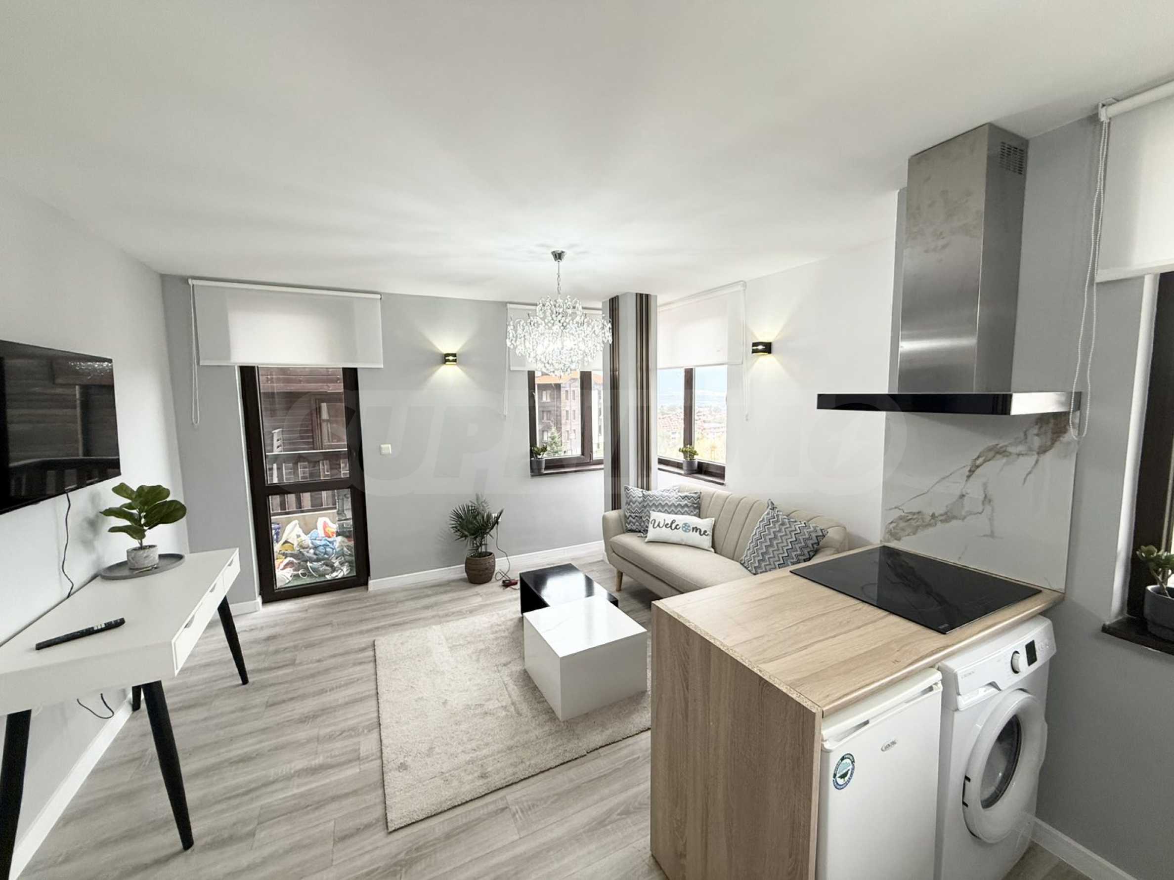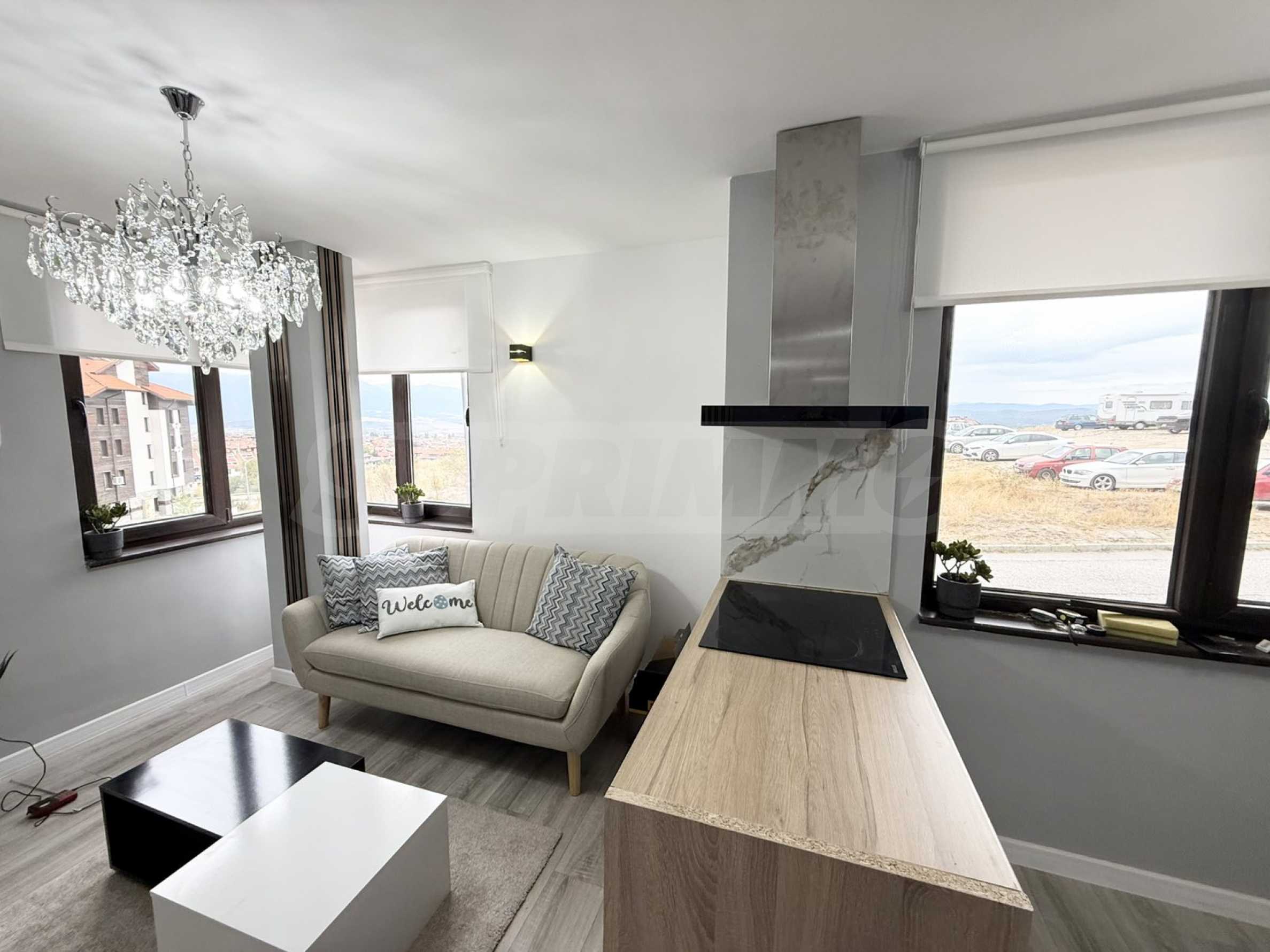 Wir präsentieren Ihnen ein anspruchsvolles Apartment mit einem Schlafzimmer und neuer, moderner Einrichtung im Royal Park-Komplex im Viertel „St. Ivan Rilski“ in Bansko.