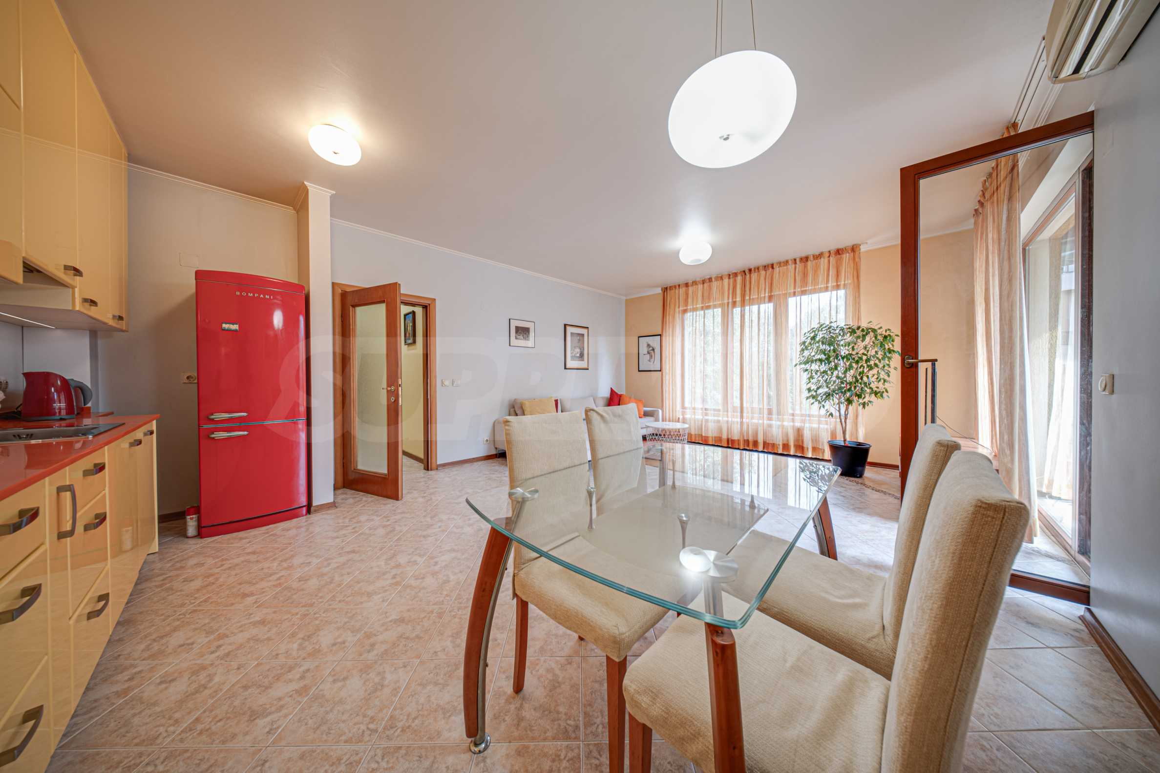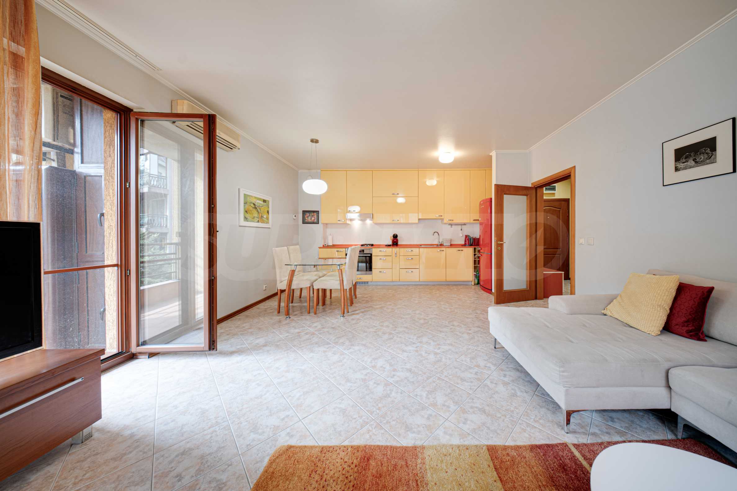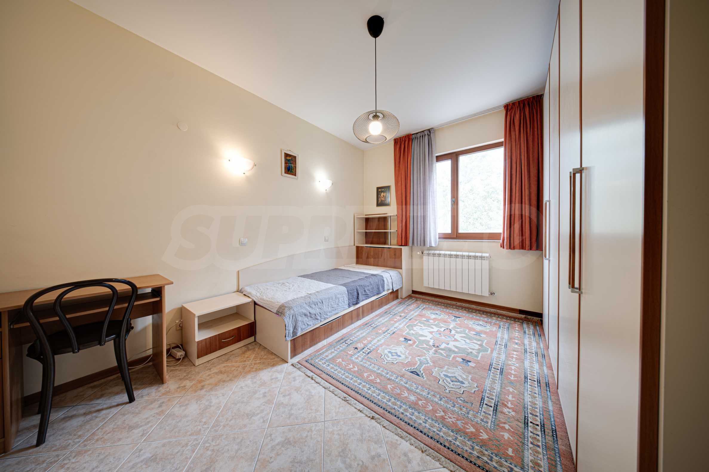 Die Wohnung befindet sich in einem der beliebtesten Komplexe Sofias, der die für erstklassige Hotels typischen Annehmlichkeiten und Extras bietet. Das Vitosha-Viertel bietet seinen Bewohnern ein ruhiges Wohnumfeld inmitten üppiger Natur und schneidet sie gleichzeitig nicht von der Dynamik der Stadt ab – der Zugang zum Zentrum von Sofia ist schnell und bequem.