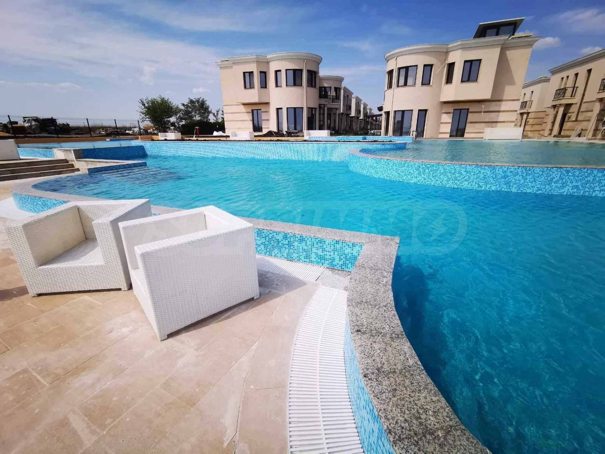 Der Komplex bietet seinen Bewohnern Komfort und Sicherheit durch 24-Stunden-Sicherheits- und Videoüberwachung, kontrollierten Zugang, gepflegte Gassen und Landschaftsgestaltung sowie einen Infinity-Pool mit einer Fläche von 540 m² und direkten Zugang zum eigenen Strand mit feinem Sand und flacher Küste. In der Nähe befinden sich Einkaufszentren, Restaurants und alle modernen Annehmlichkeiten.