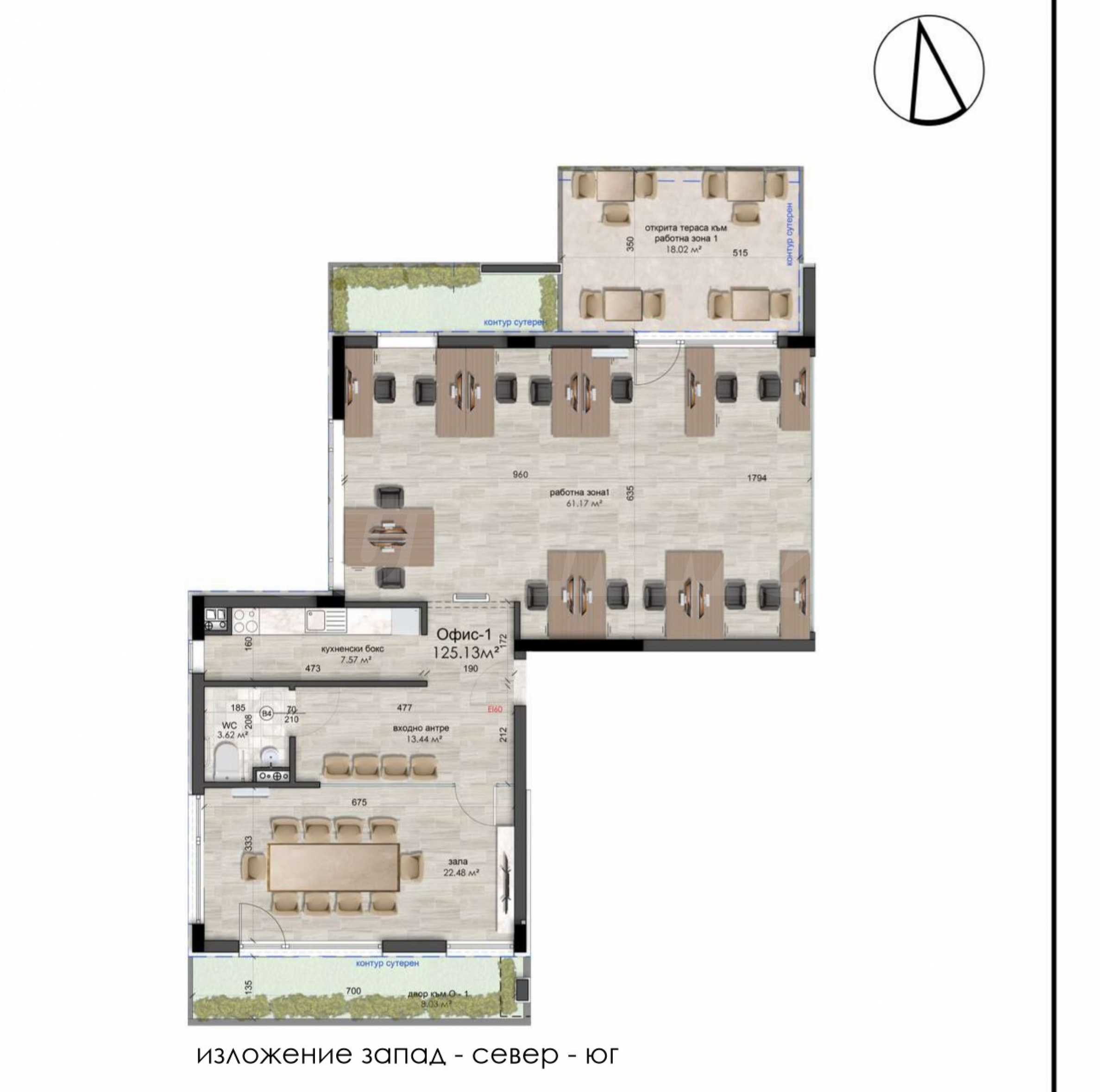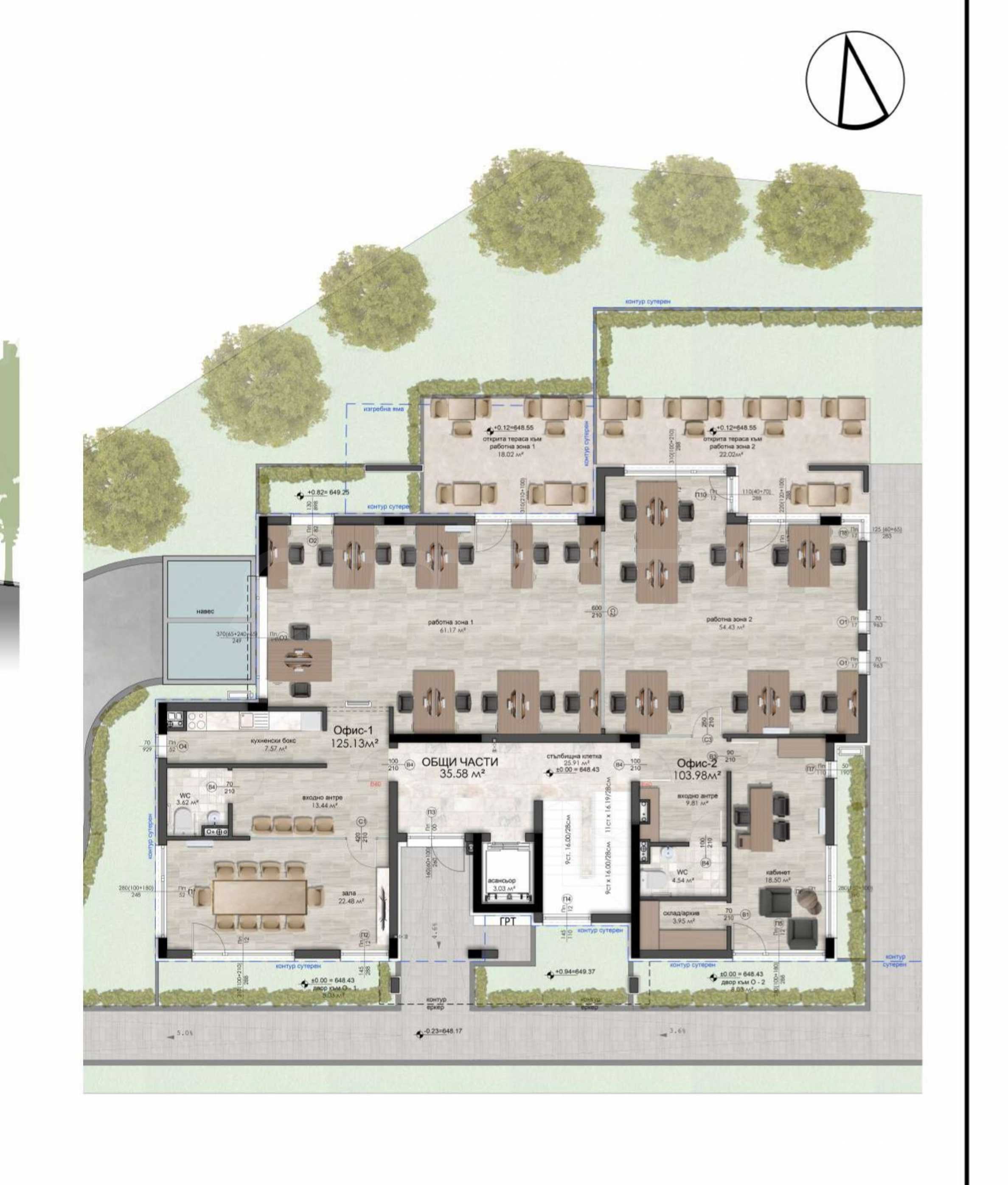 Wir bieten die Büros Nr. 1 und Nr. 2 zum Verkauf an, die das gesamte Erdgeschoss eines modernen Geschäftsgebäudes einnehmen, einem luxuriösen Neubau im Stadtteil Boyana in Sofia.