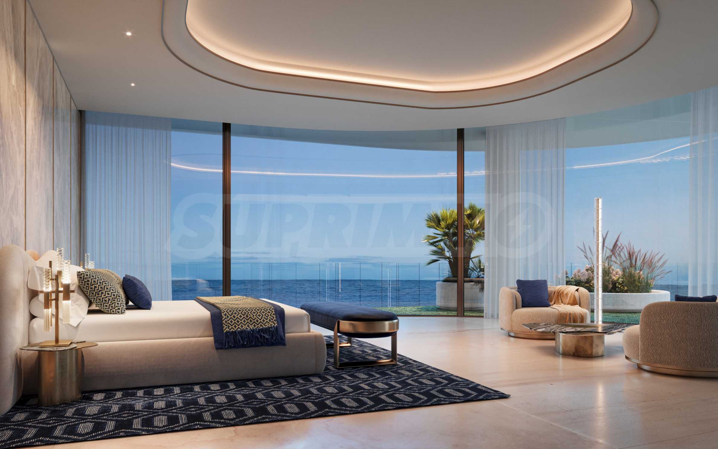 Die Villa ist mit hohen Decken und raumhohen Panoramafenstern mit Schiebemechanismen ausgestattet, die den Raum mit Licht füllen und das Gefühl von Großzügigkeit betonen. Sie schaffen eine natürliche Verbindung zwischen Innen und Außen und machen das Haus zu einer harmonischen Erweiterung der Natur – einem Ort, an dem die Meeresbrise und die Sonnenstrahlen zum Alltag gehören.