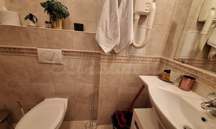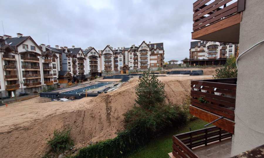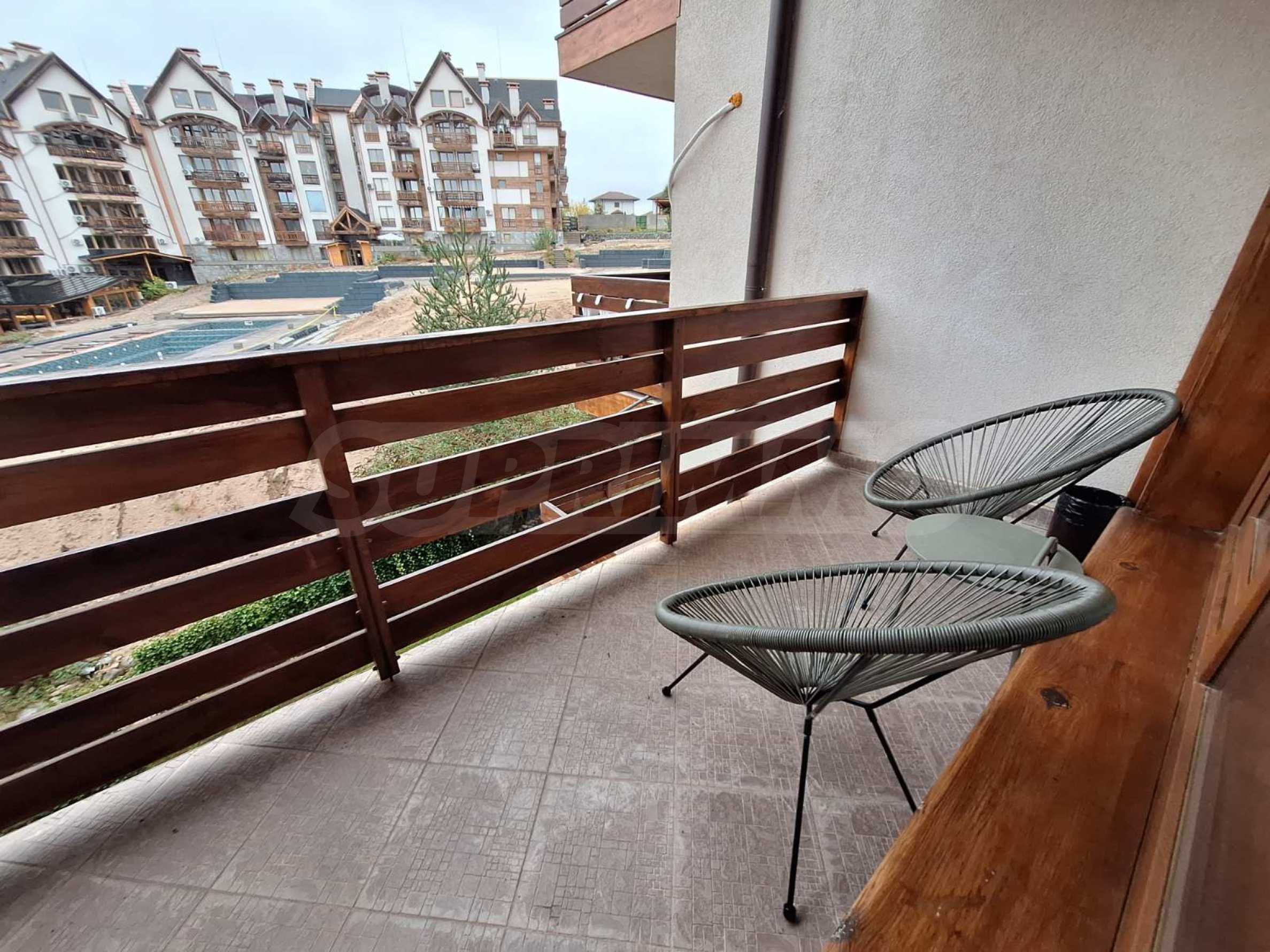 Die Wohnung befindet sich in einem Haus hinter dem Hauptgebäude. Jedes Haus verfügt über einen Massagebereich, eine Sauna, ein Dampfbad, einen Skiraum, einen großen Grill mit Kamin und einen Billardtisch. Diese Annehmlichkeiten stehen ausschließlich den Eigentümern zur Verfügung. Sie genießen die frische Bergluft und den Blick auf das Pirin-Gebirge. Das charmante Interieur vermittelt ein behagliches Wohngefühl.