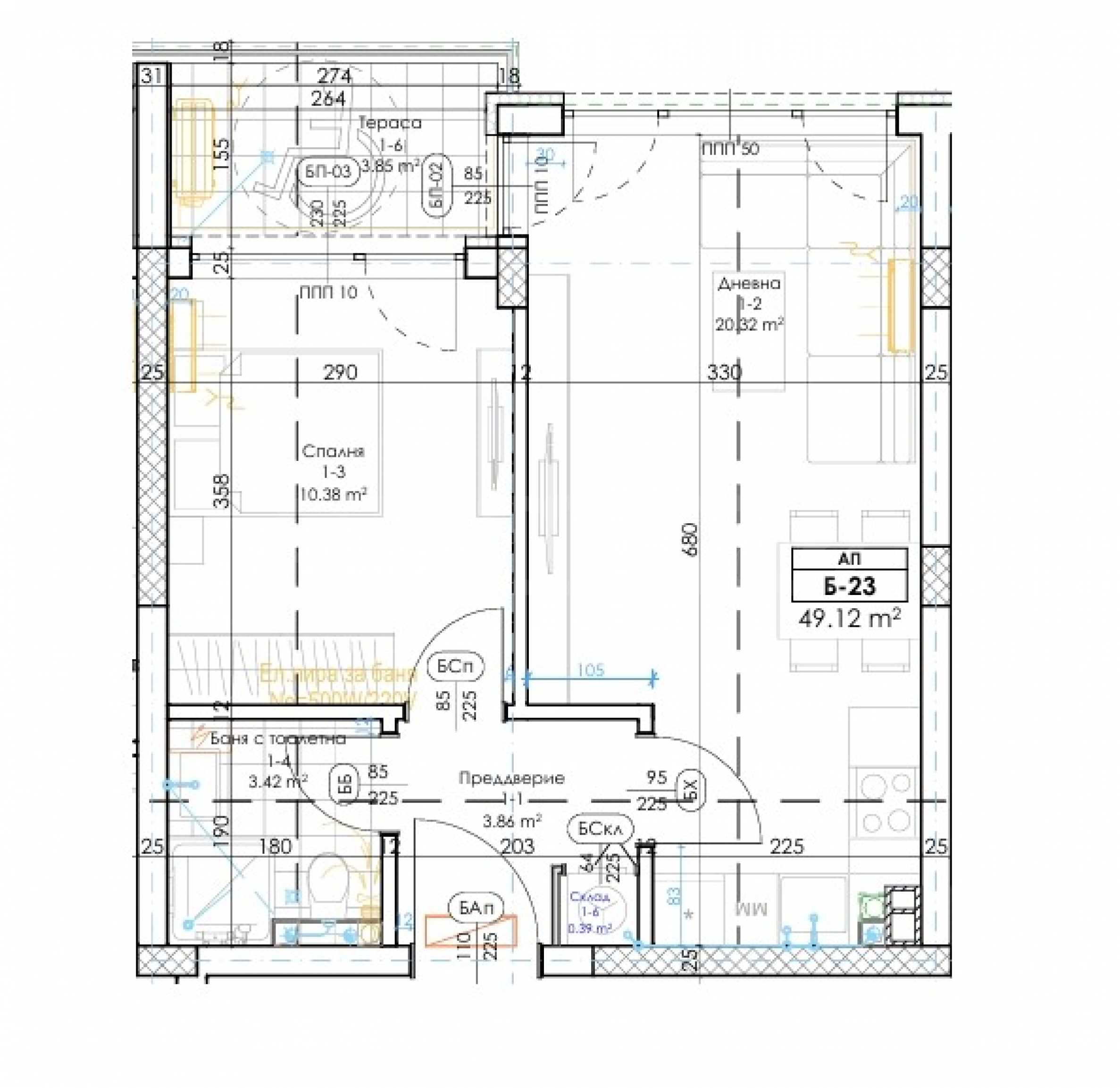 Wir präsentieren eine Einzimmerwohnung in einem neuen Wohnkomplex im südlichen Teil von Plovdiv, im Stadtteil „Belomorski“.