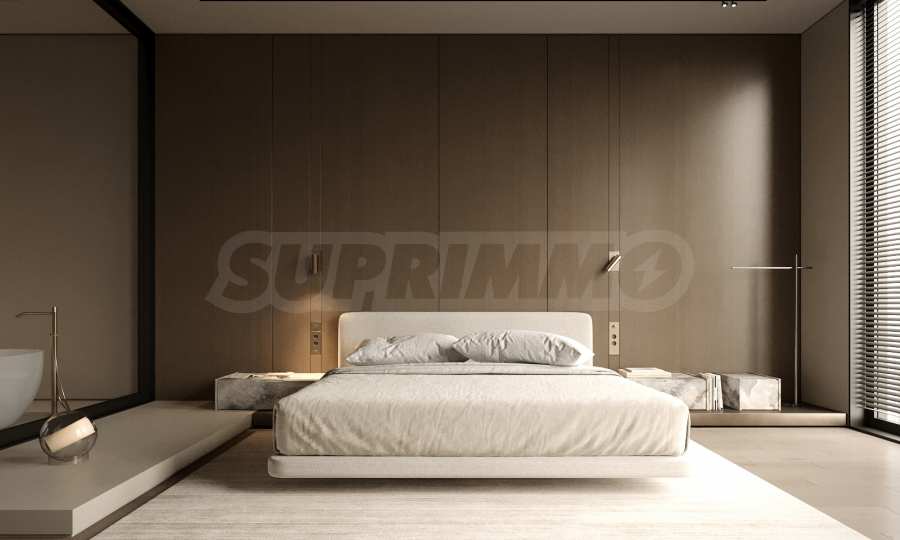 Haus 2 hat eine Gesamtfläche von 206,47 m² und verfügt über zwei gemütliche Schlafzimmer und drei modern gestaltete Badezimmer. Den Gästen steht eine Veranda mit einem privaten, 23,21 m² großen Garten zur Verfügung, der Privatsphäre und direkten Zugang zur Natur bietet, sowie eine Dachterrasse – ein fantastischer zusätzlicher Raum zum Entspannen und für Unterhaltung im Freien. Zur Wohnung gehören zwei Parkplätze und eine vorbereitete Infrastruktur für den Anschluss von Solarmodulen, die Energieunabhängigkeit und niedrigere Stromrechnungen gewährleistet.