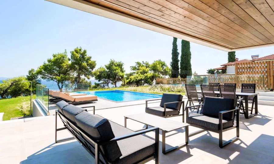 Diese atemberaubende Villa in Chalkidiki, Griechenland, ist ein neu erbautes Einfamilienhaus in einer Anlage mit luxuriöser Ausstattung. Genießen Sie den atemberaubenden Meerblick vom privaten Außenpool aus. Mit 4 Schlafzimmern, 3 Bädern, 1 WC und Parkplätzen für 4 Autos bietet dieses Anwesen die perfekte Kombination aus Komfort und Bequemlichkeit. Diese Strandvilla in der Gemeinde Kassandra ist ideal für alle, die einen ruhigen Rückzugsort am Meer suchen. Erleben Sie die Schönheit von Chalkidiki vom Komfort Ihrer eigenen Luxusvilla aus.